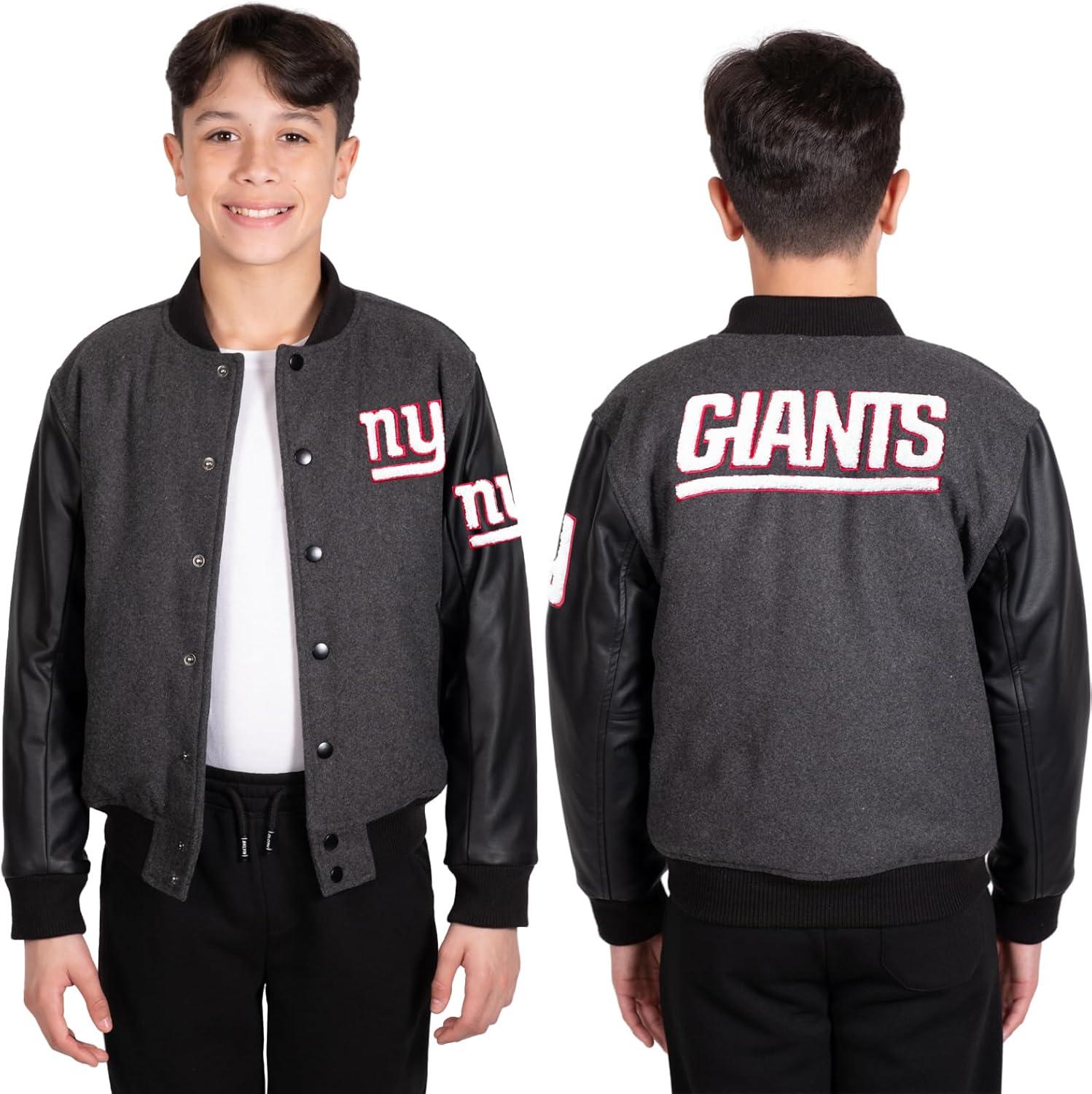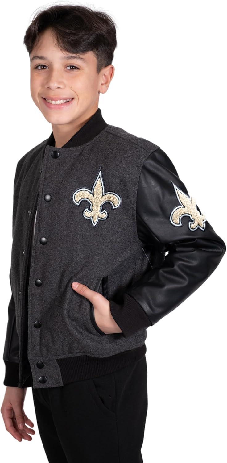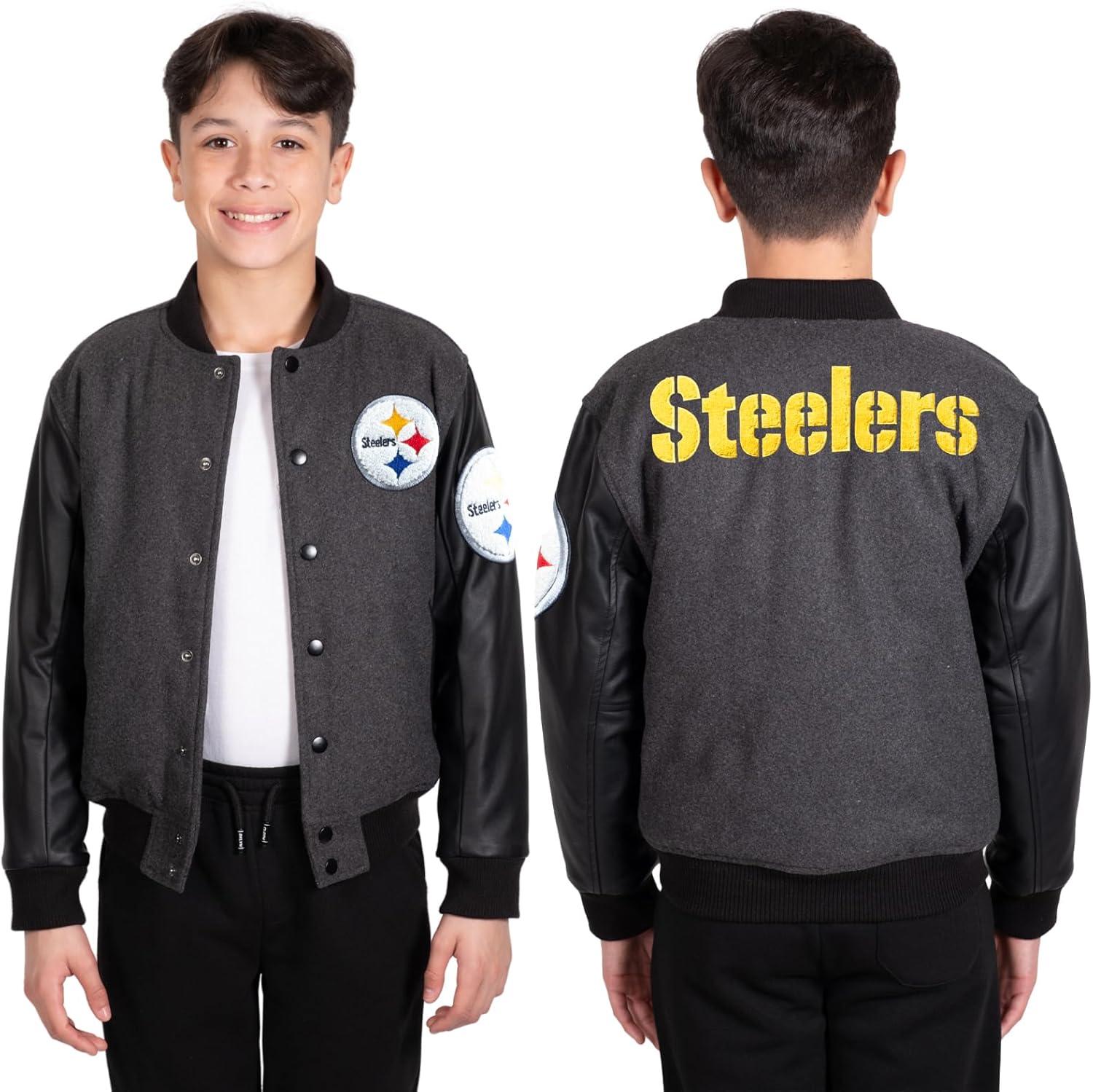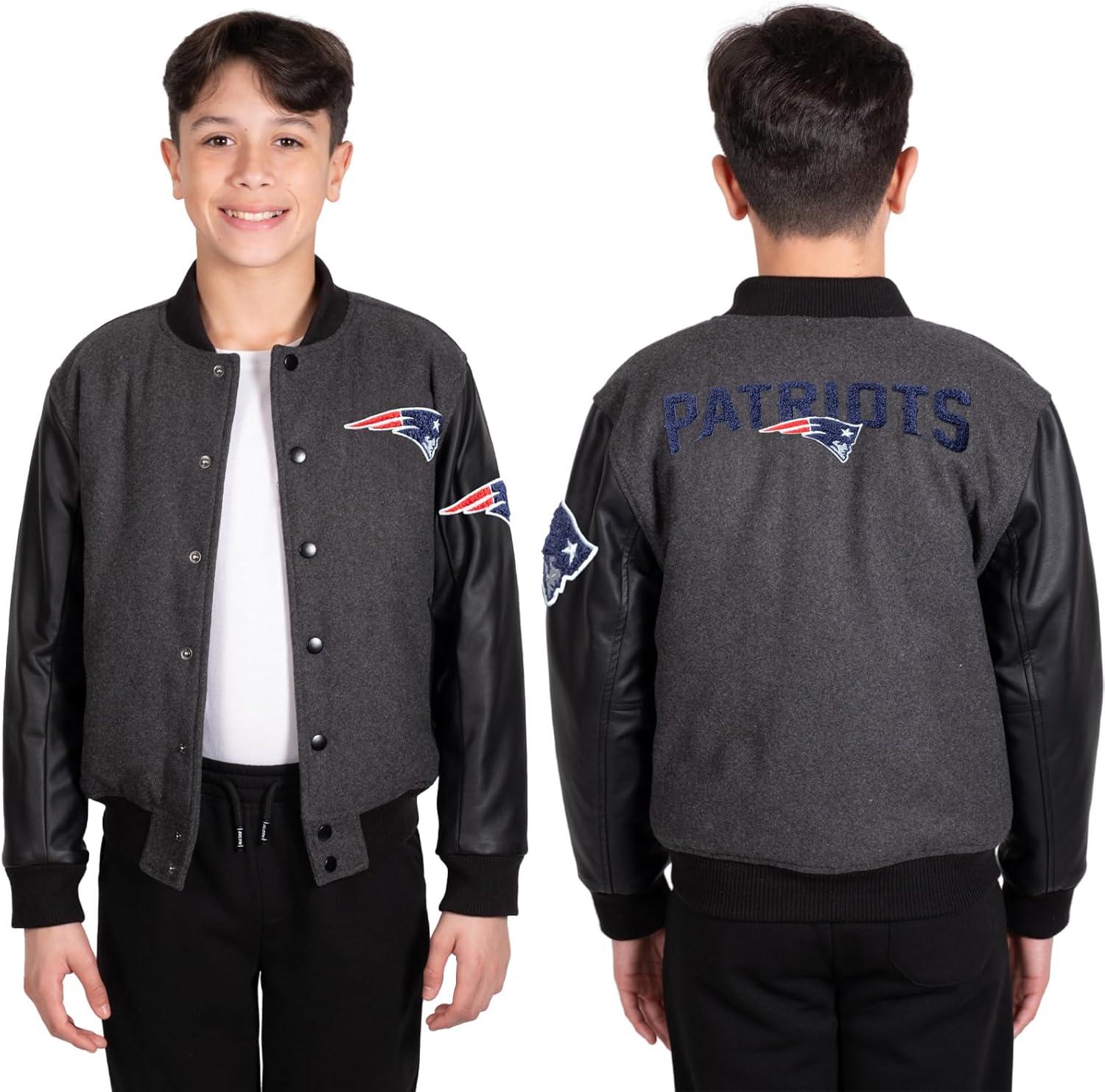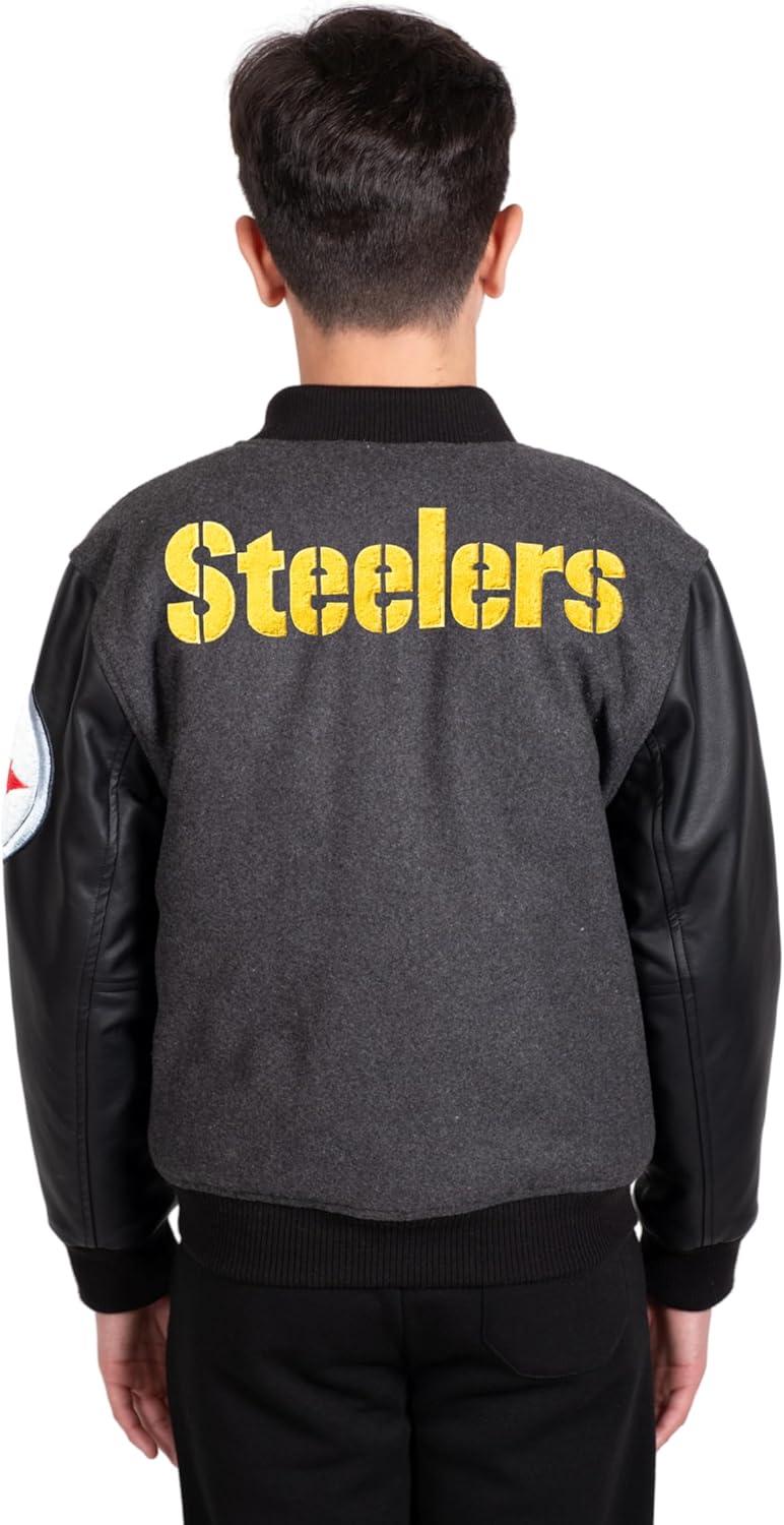 Ultra Game NFL Boys Classic Baseball Varsity Jacket(Charcoal)