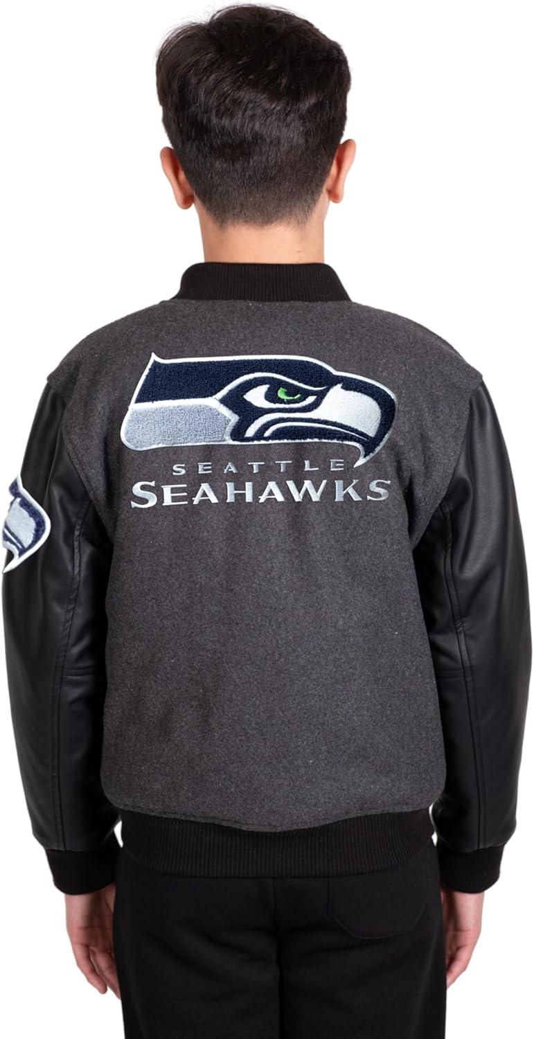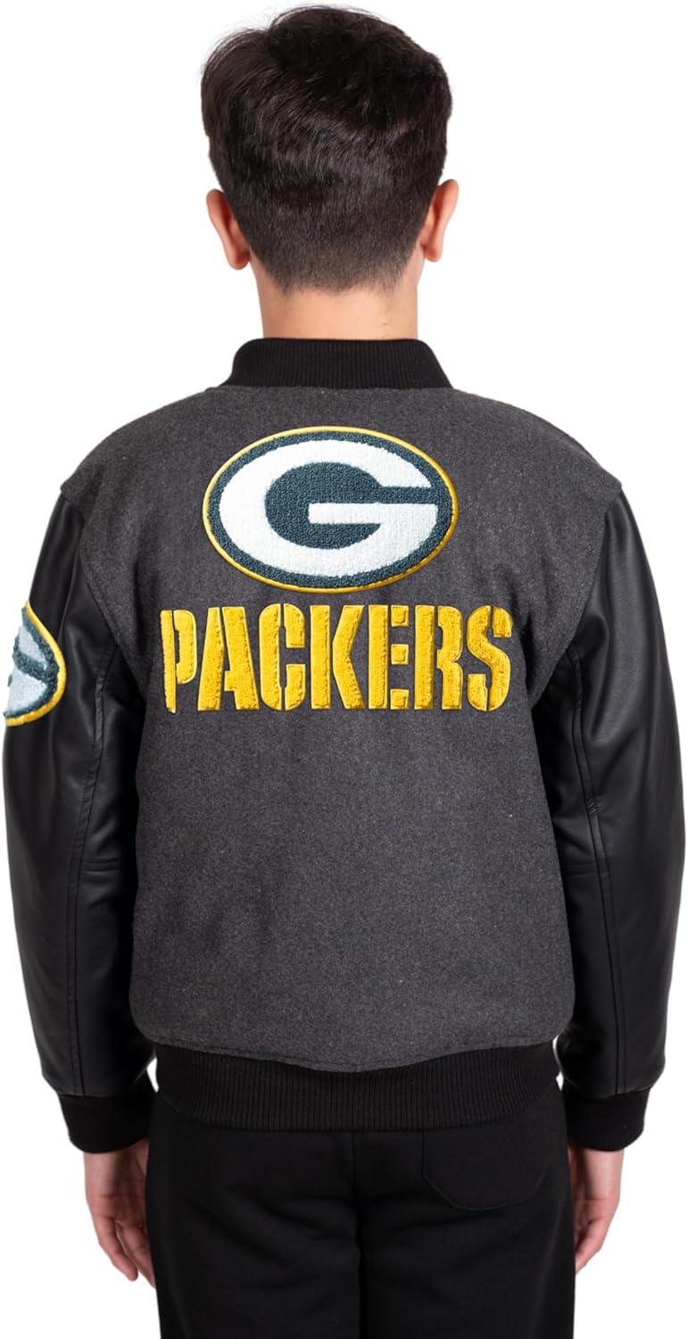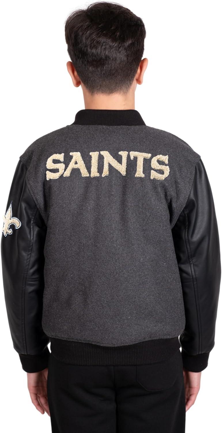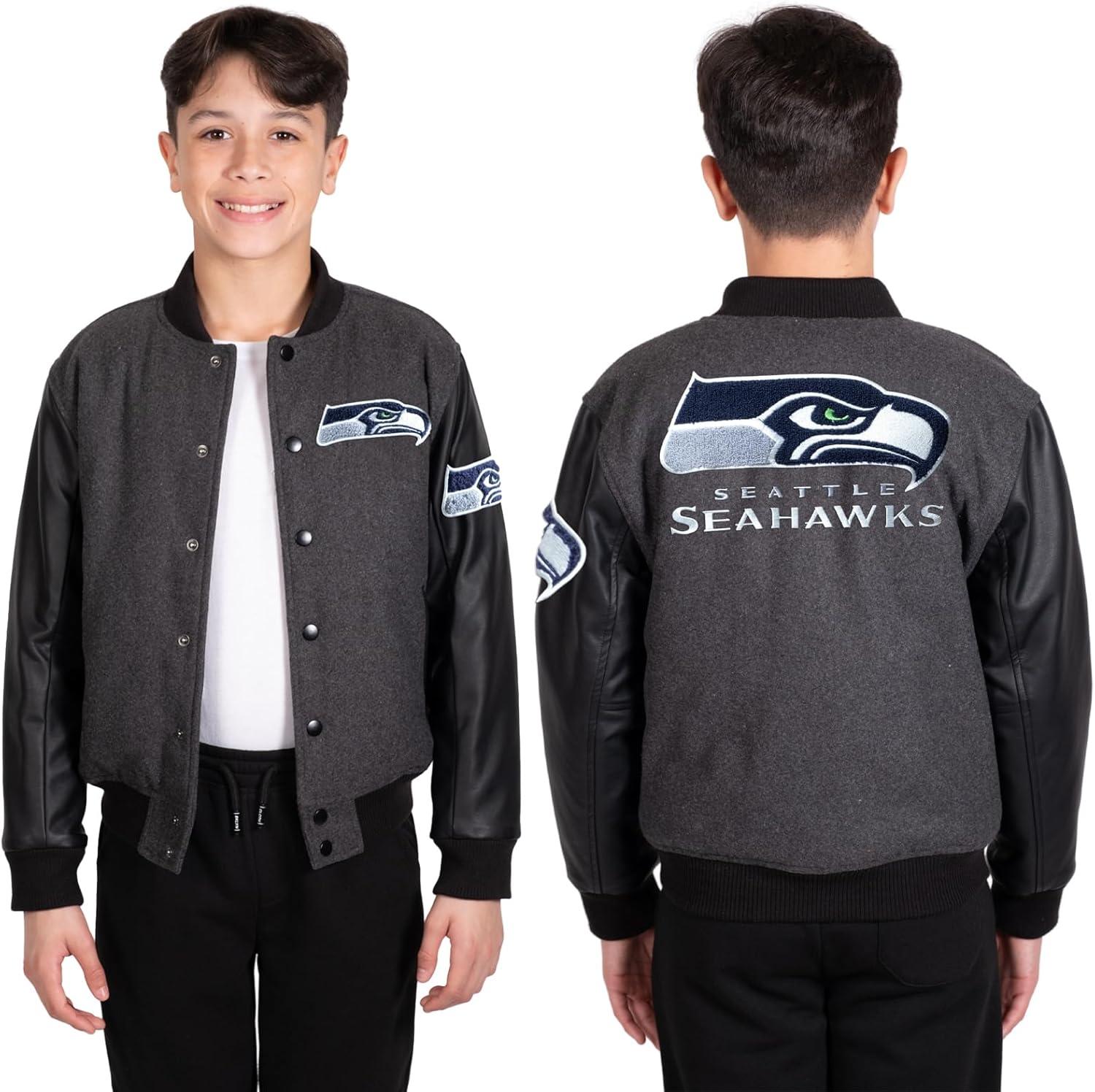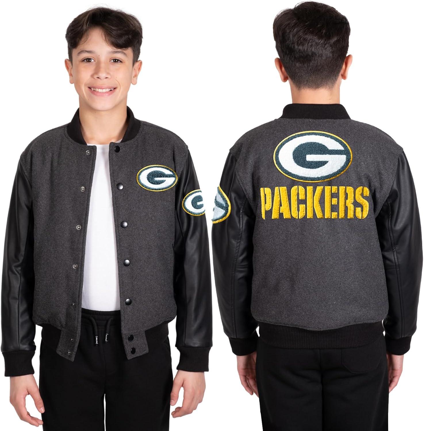 Ultra Game NFL Boys Classic Baseball Varsity Jacket(Charcoal)