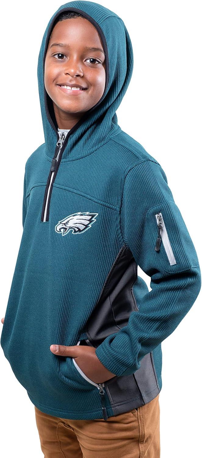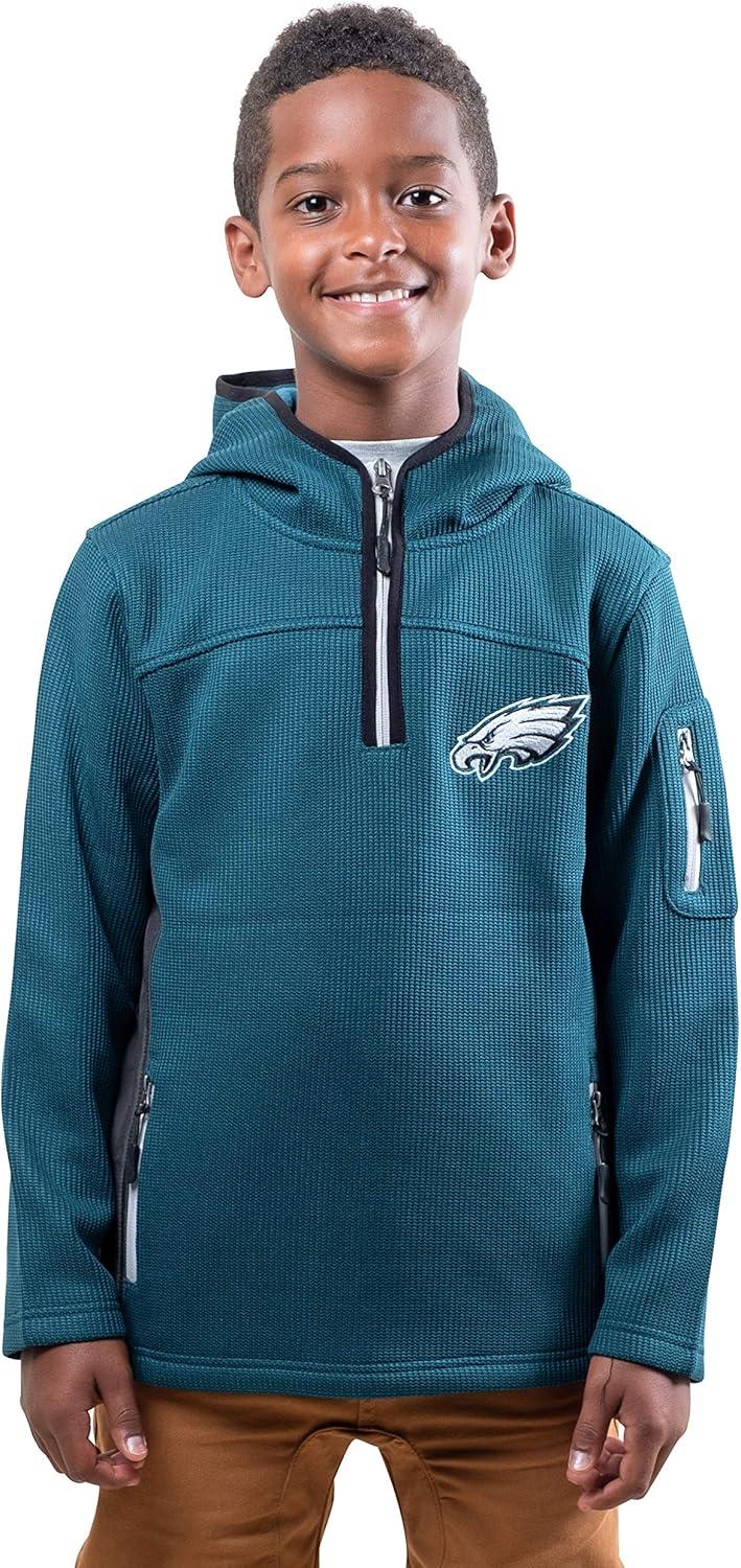 Ultra Game NFL Boys Super Soft Fleece Quarter-Zip Pullover Hoodie Sweatshirt(Green)