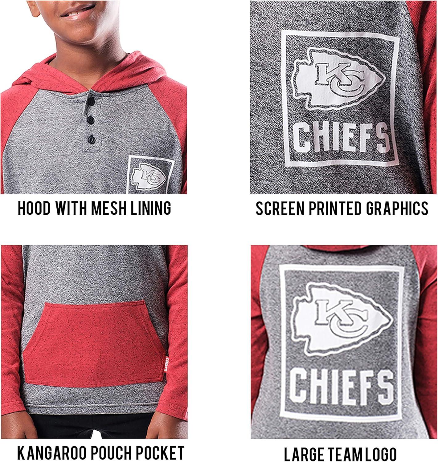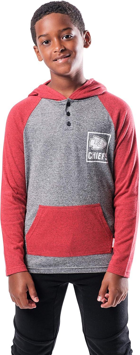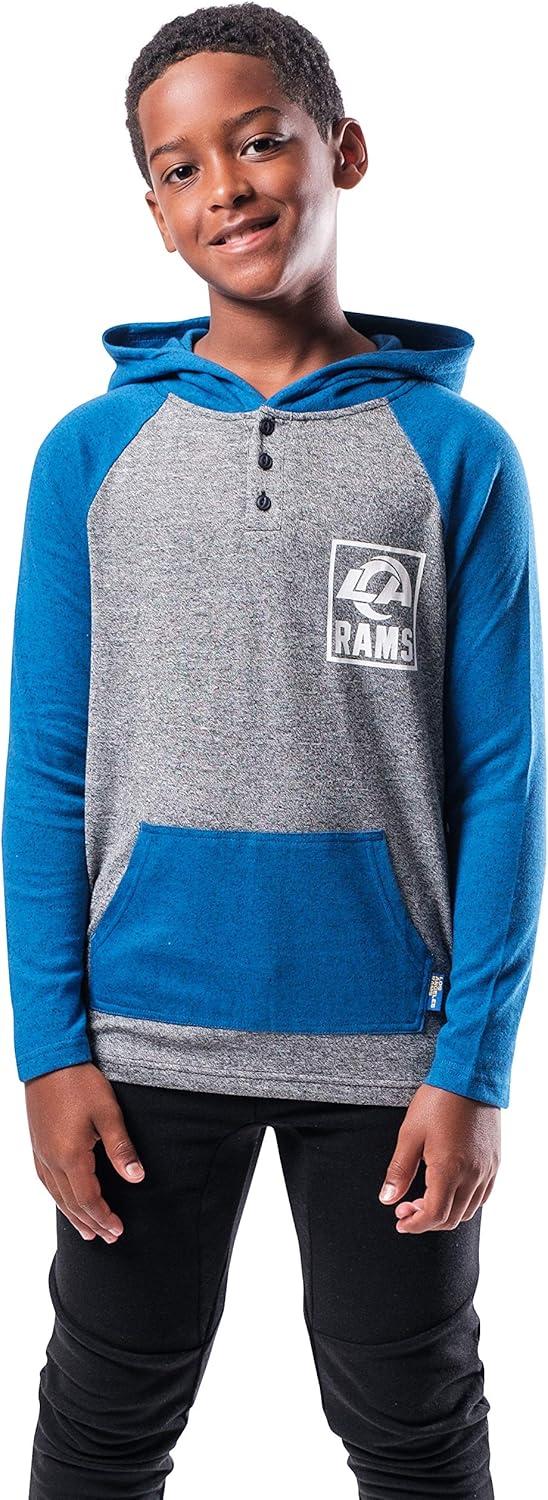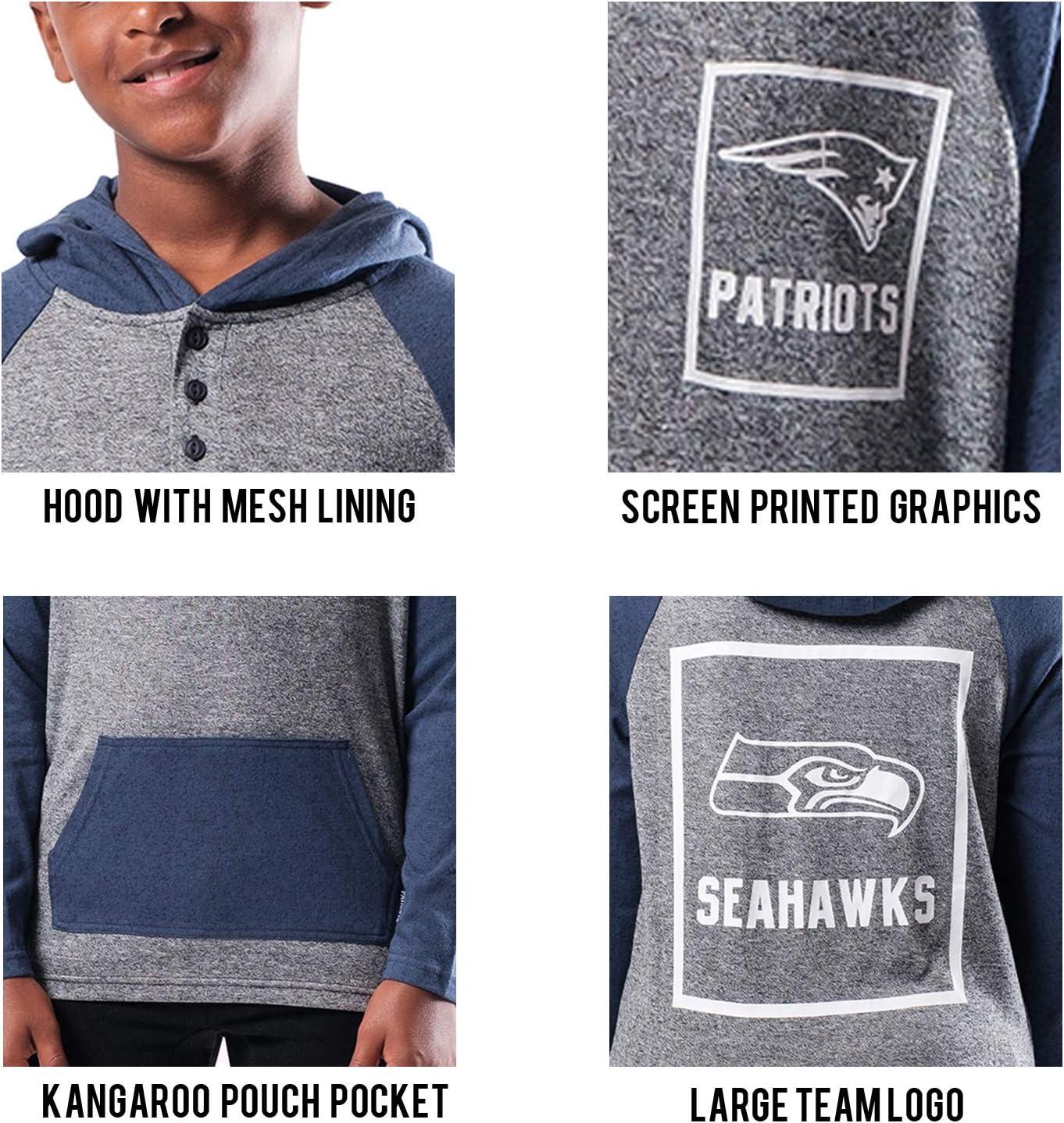 Ultra Game NFL Boys Super-Soft Hoodie Pullover Henley Sweatshirt(Team Color)