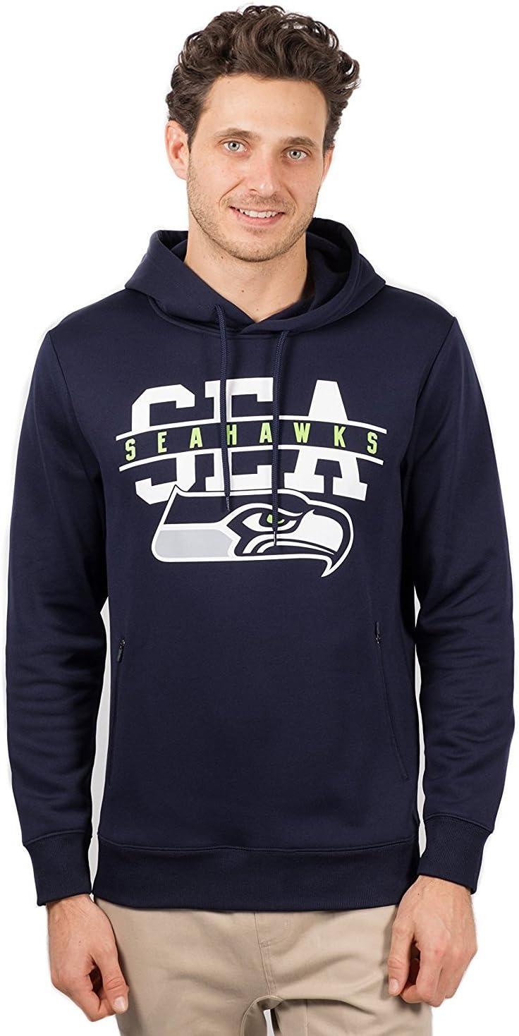 NFL COLLECTION – Officially Licensed By The NFL (National Football League), NFL by Icer Brands is a re-introduction to the classic NFL fan gear. Boasting innovative design and fabric updates in fresh fits for today's stadium-goers that appeal to everyone. Soft/midweight inner fleece lining, ribbed cuffs and adjustable drawcord provide added comfort. Not too loose or tight, the perfect fit. Sizing is designed for an athletic fit. Model is 6 ft 1 in with a slim build wearing a size medium. Moisture wicking performance fabric, team logo design, drawcord hoody and front zipper kangaroo pouch. Perfect shirt to wear on game day or any day of week. Designed to sync up effortlessly with your everyday style. For fans, by fans. Vibrant screen print graphics of your NFL team with contrast zipper pockets in a charcoal gray or navy color body. Perfect for running, jogging, sports, exercise, lounging, or casual wear. Use size chart for measurements to choose fit. Midweight, breathable, stay-dry fabric keeps moisture away to keep you feeling dry, fresh, comfortable. Made from 100% Polyester. We stand by the quality of our apparel and includes no hassle money back guarantee if not satisfied.