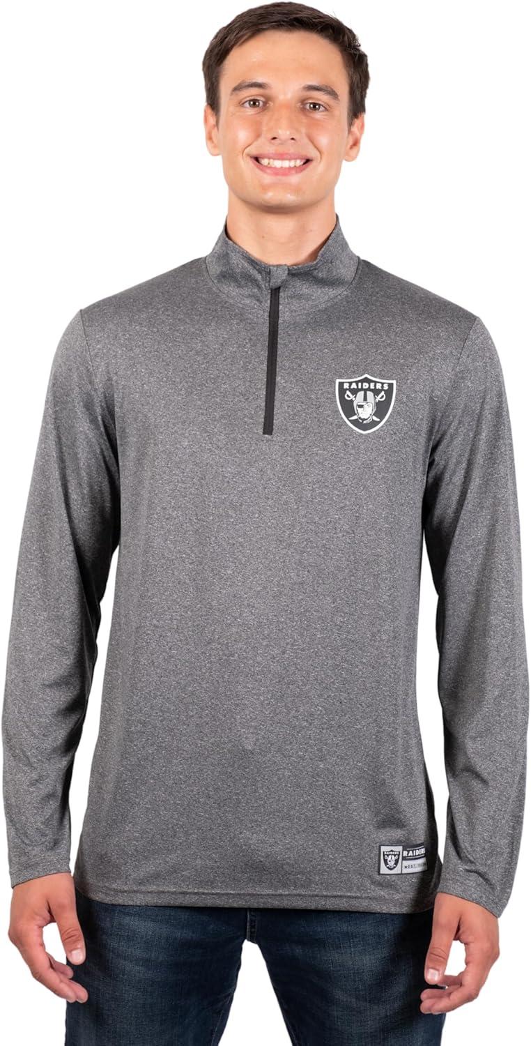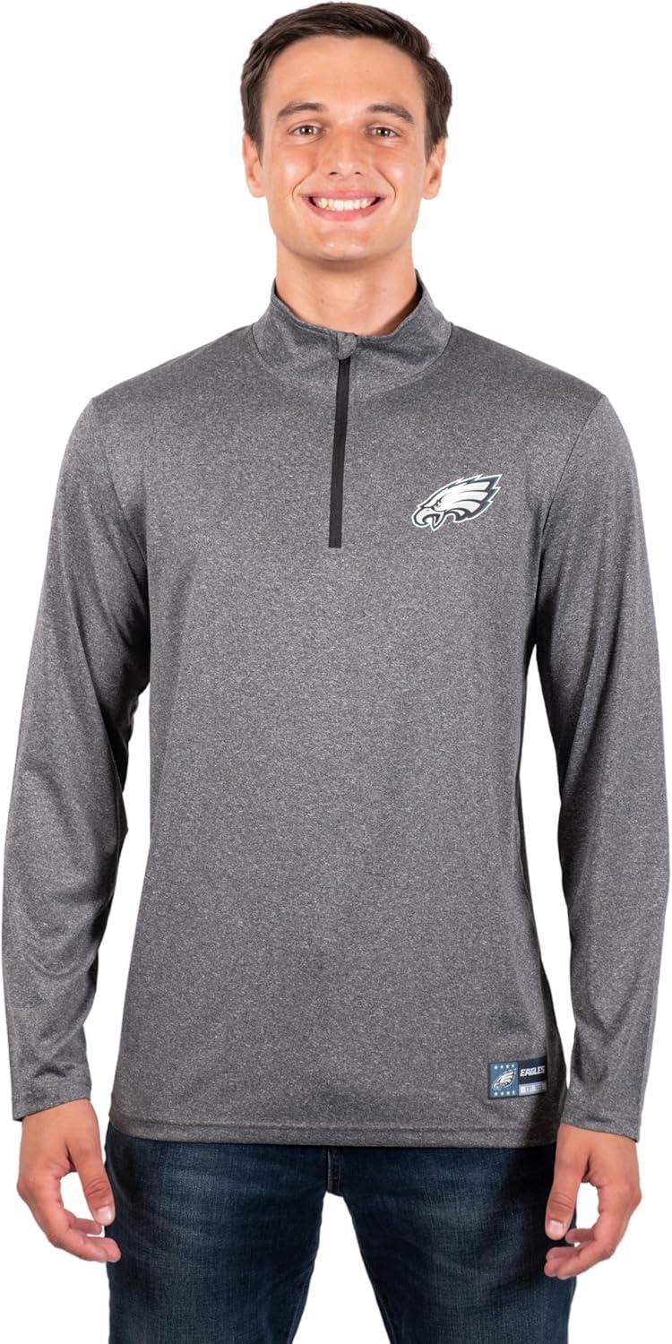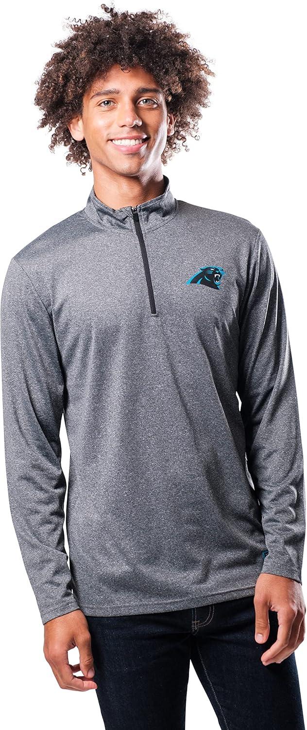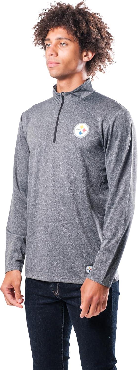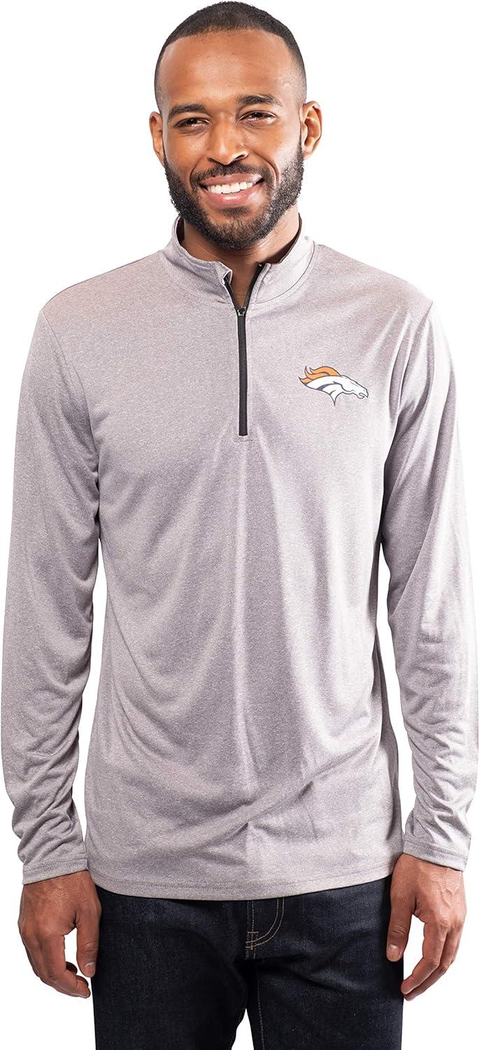 Ultra Game NFL Official Adults Super Soft Quarter Zip Long Sleeve T-Shirt(Heather Charcoal)