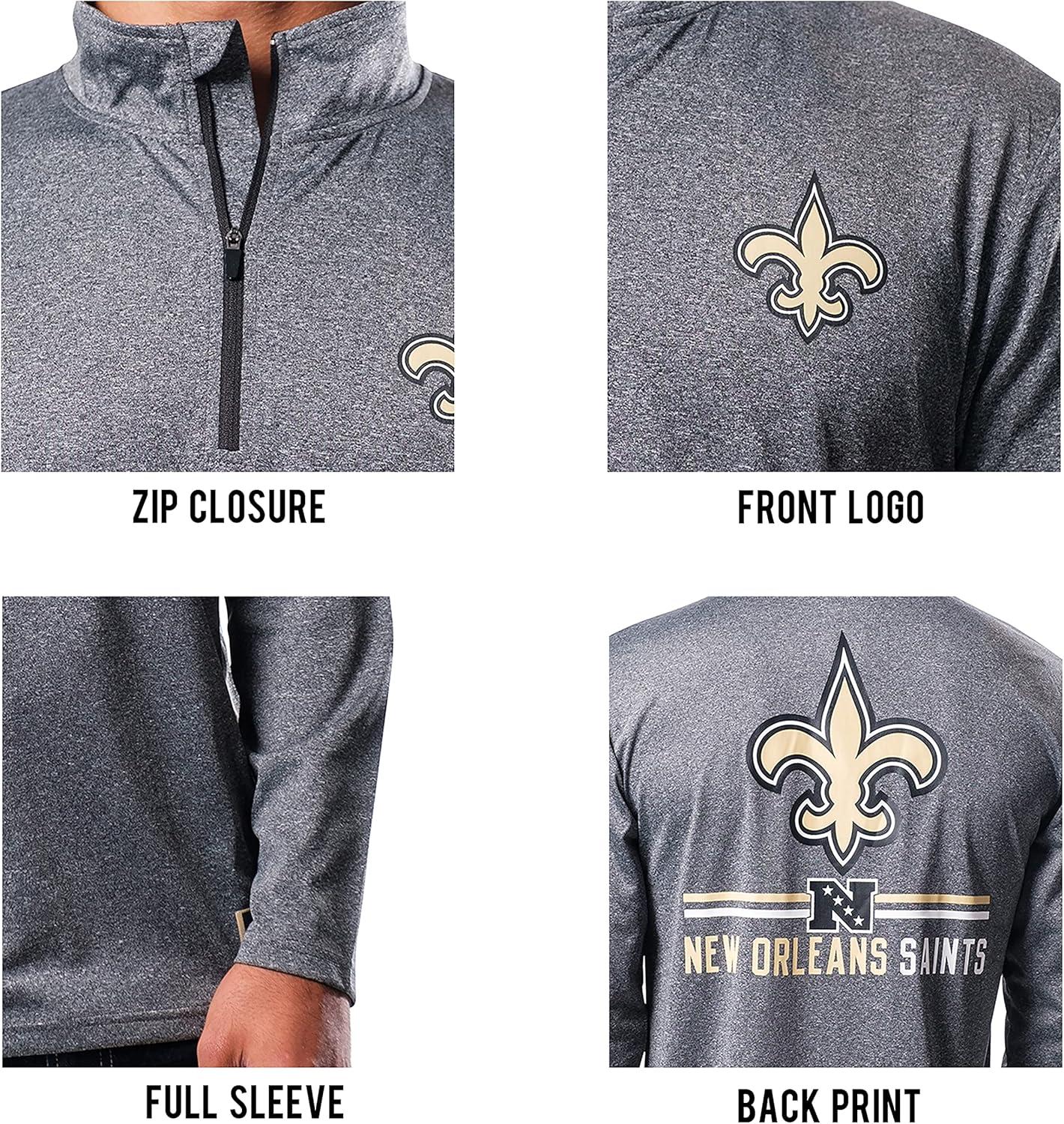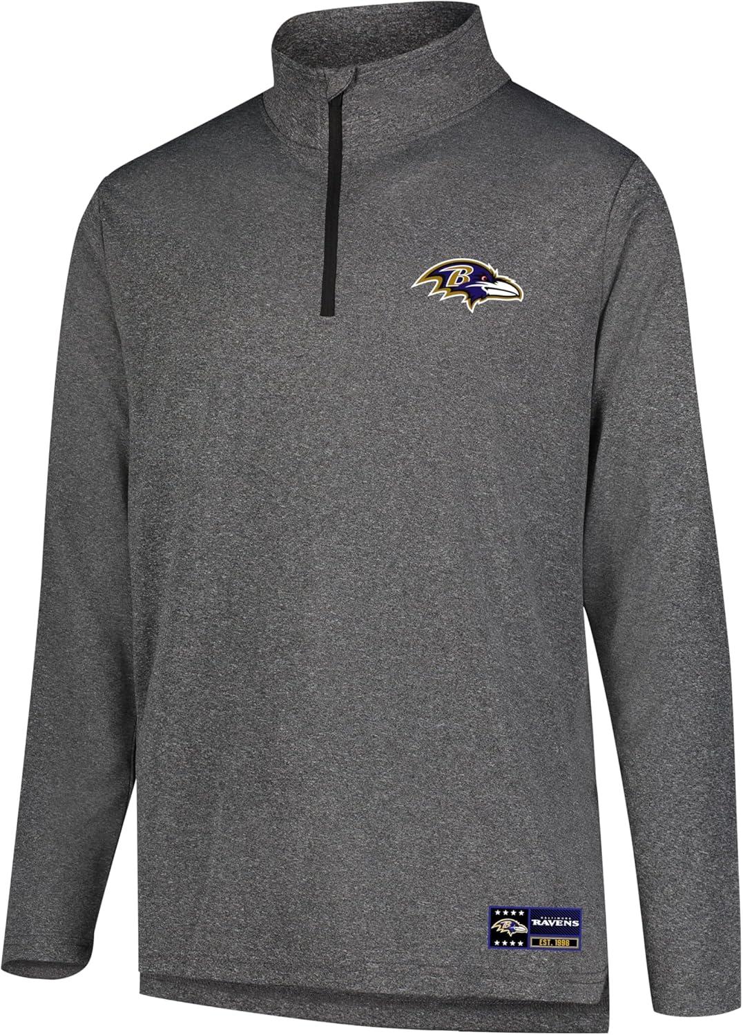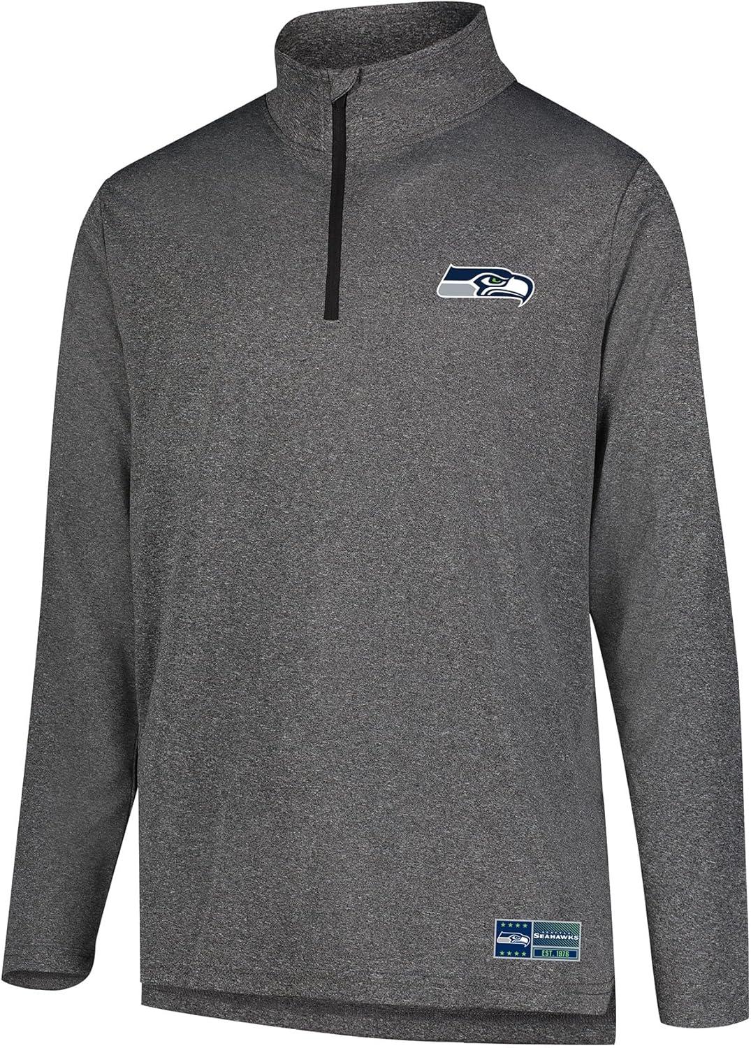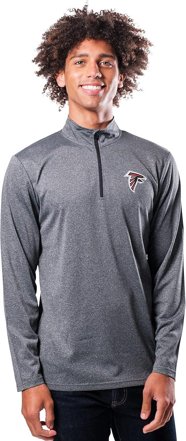 Ultra Game NFL Official Adults Super Soft Quarter Zip Long Sleeve T-Shirt(Heather Charcoal)