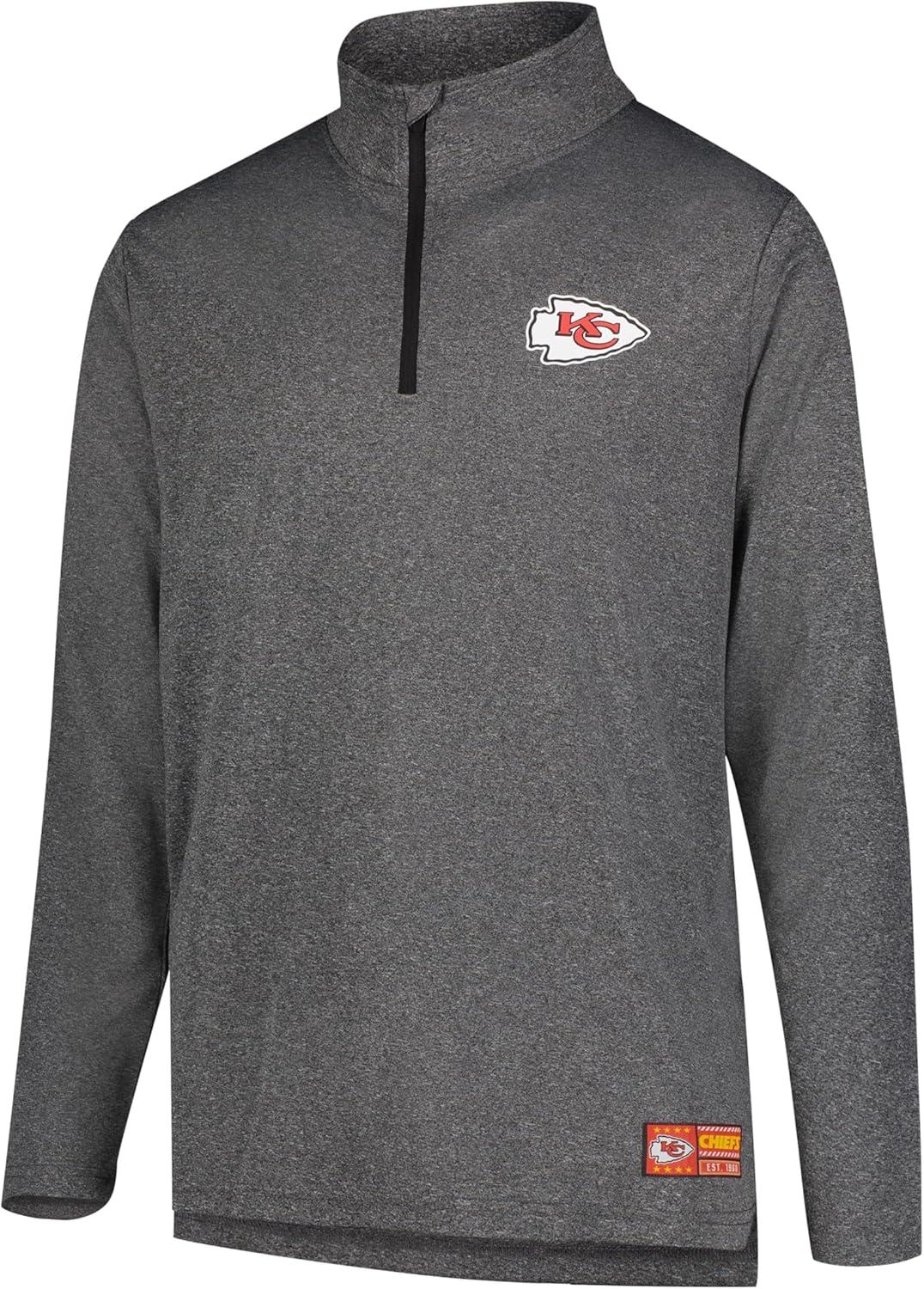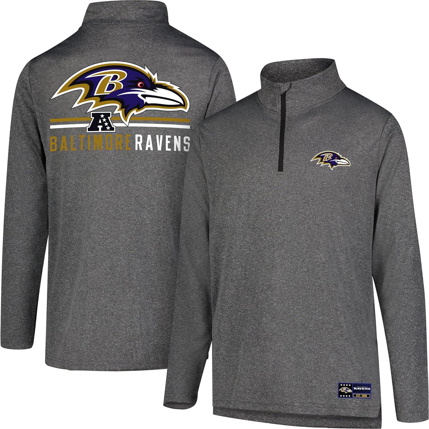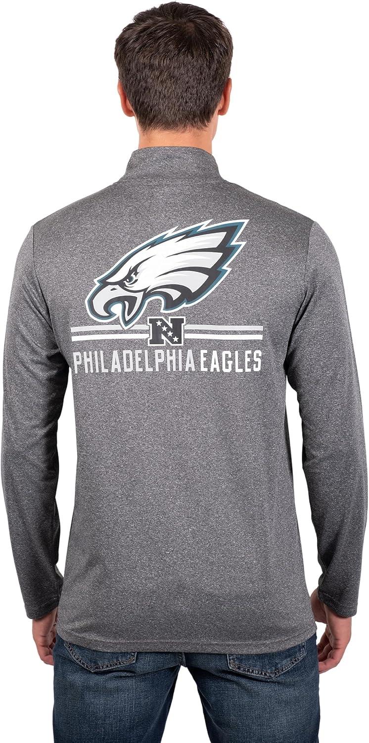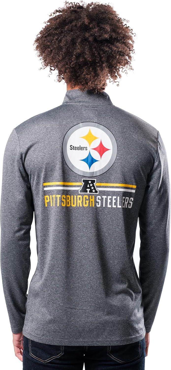 Ultra Game NFL Official Adults Super Soft Quarter Zip Long Sleeve T-Shirt(Heather Charcoal)