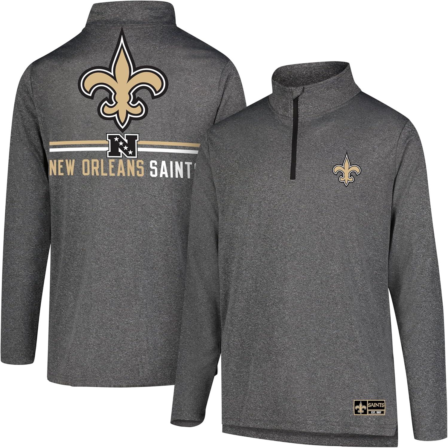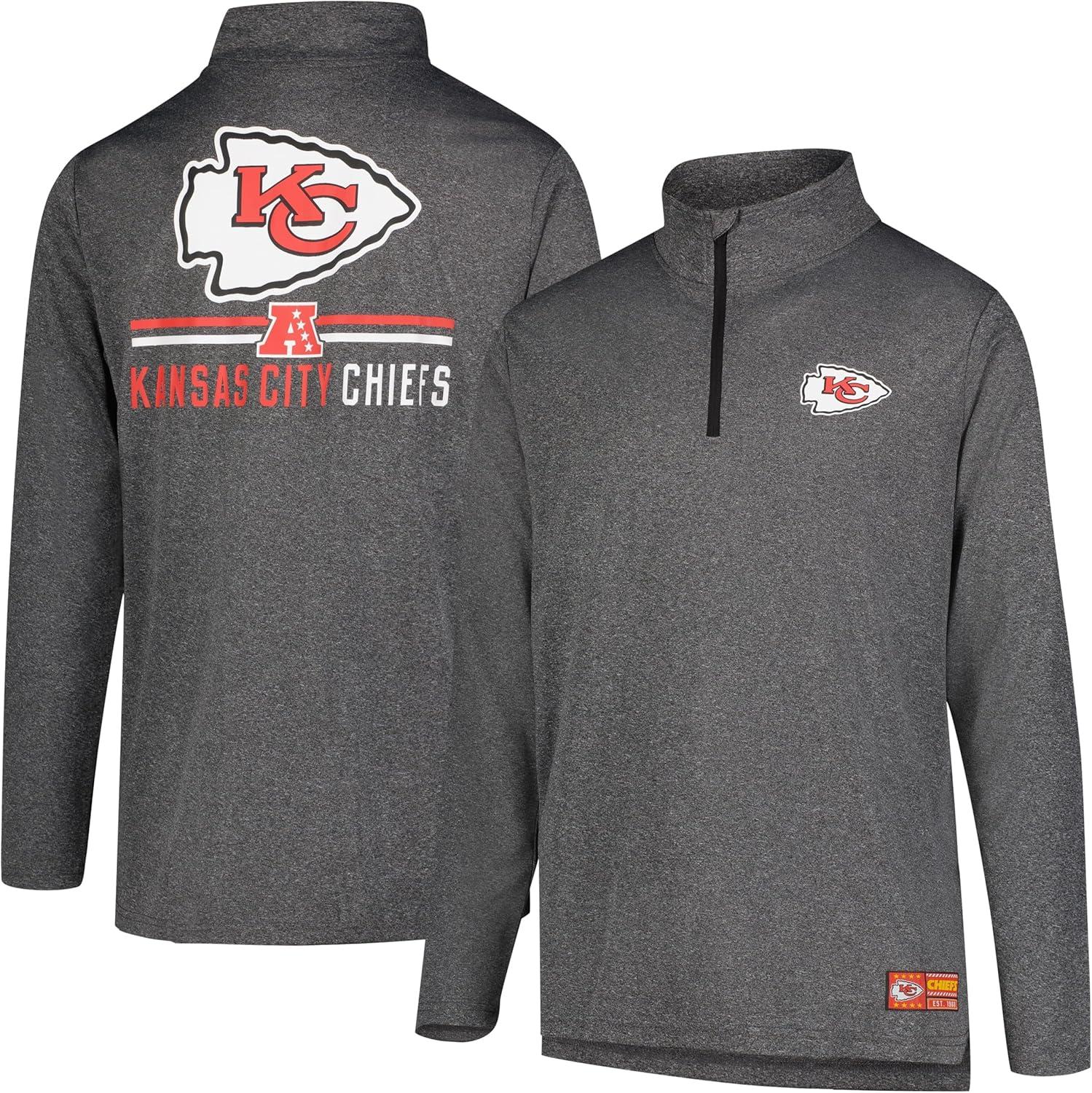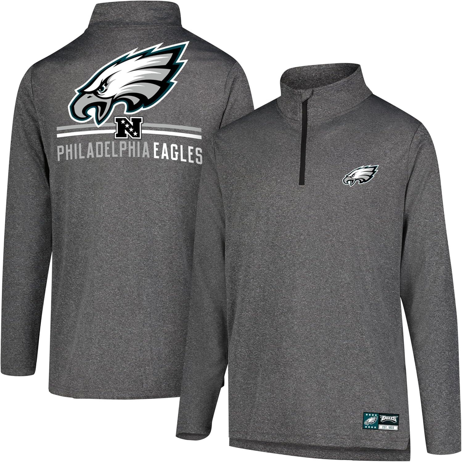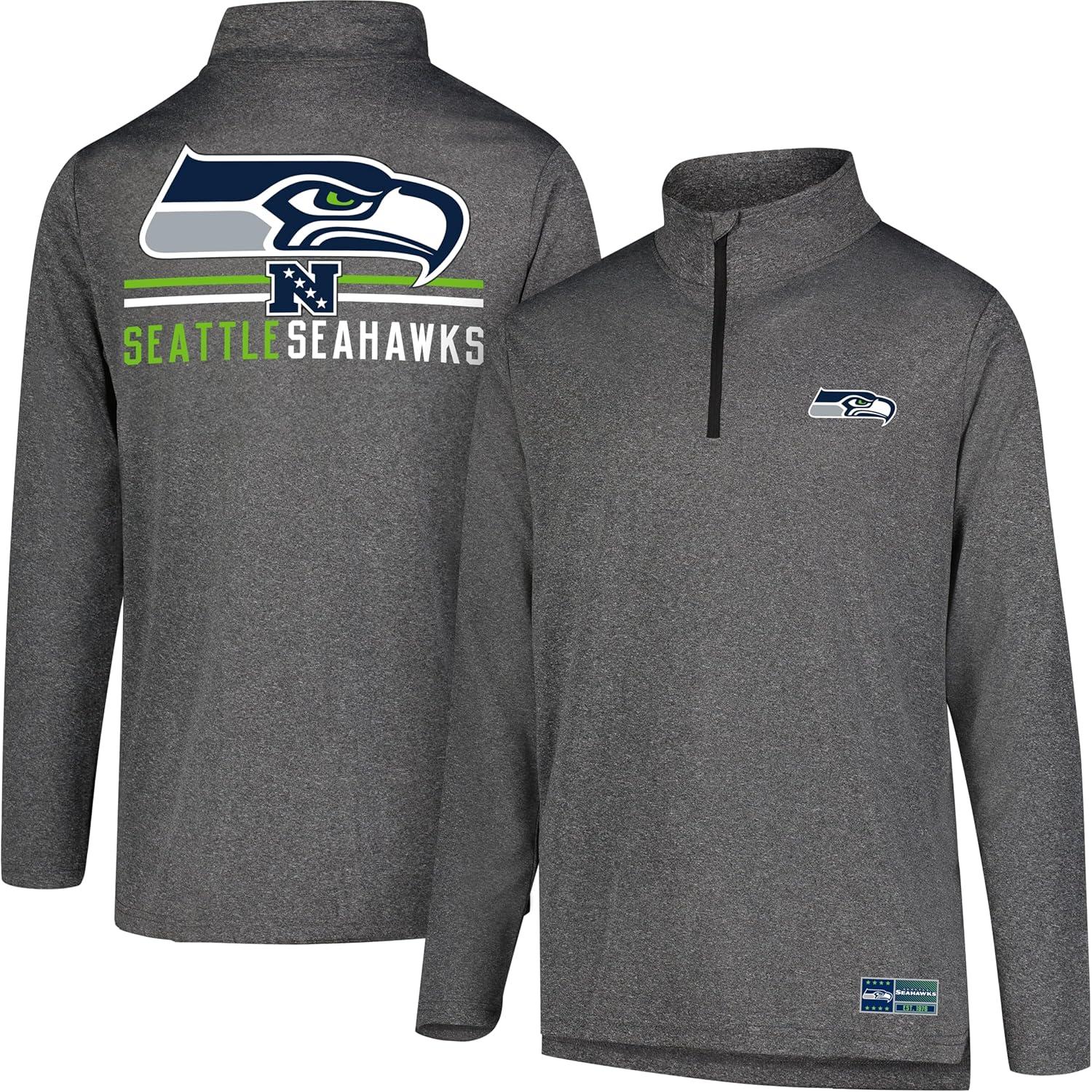 Ultra Game NFL Official Adults Super Soft Quarter Zip Long Sleeve T-Shirt(Heather Charcoal)