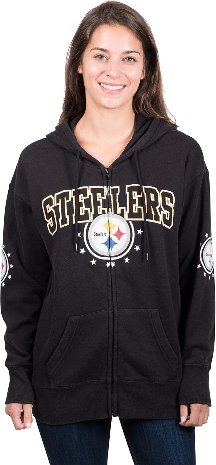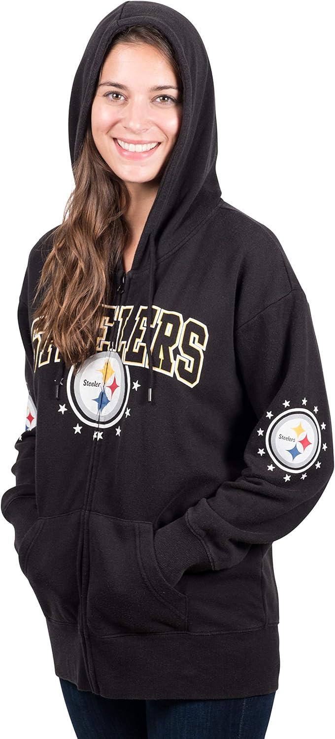 Ultra Game NFL Womens Full Zip Fleece Hoodie Sweatshirt Jacket(Black)