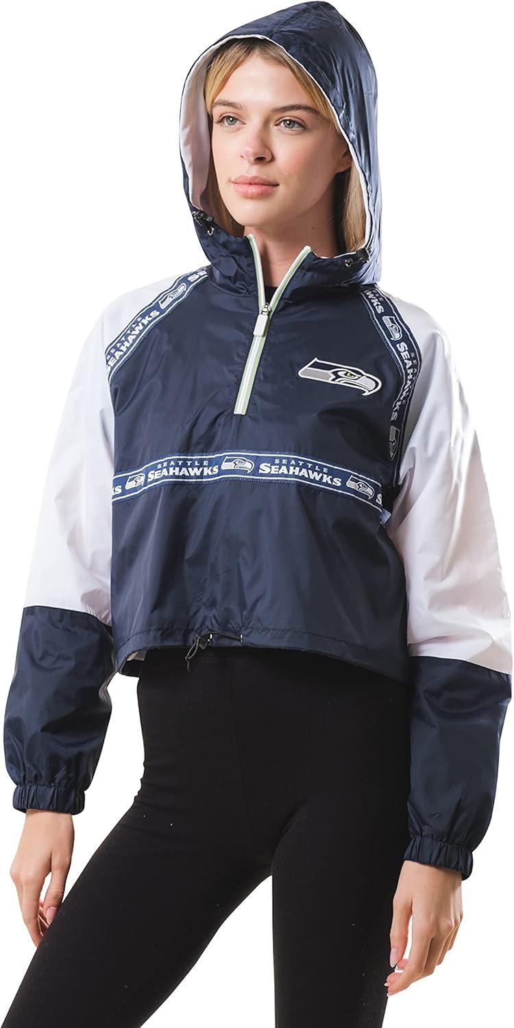 Ultra Game NFL womens Quarter Zip Hoodie Windbreaker Play Action Jacket(Small)