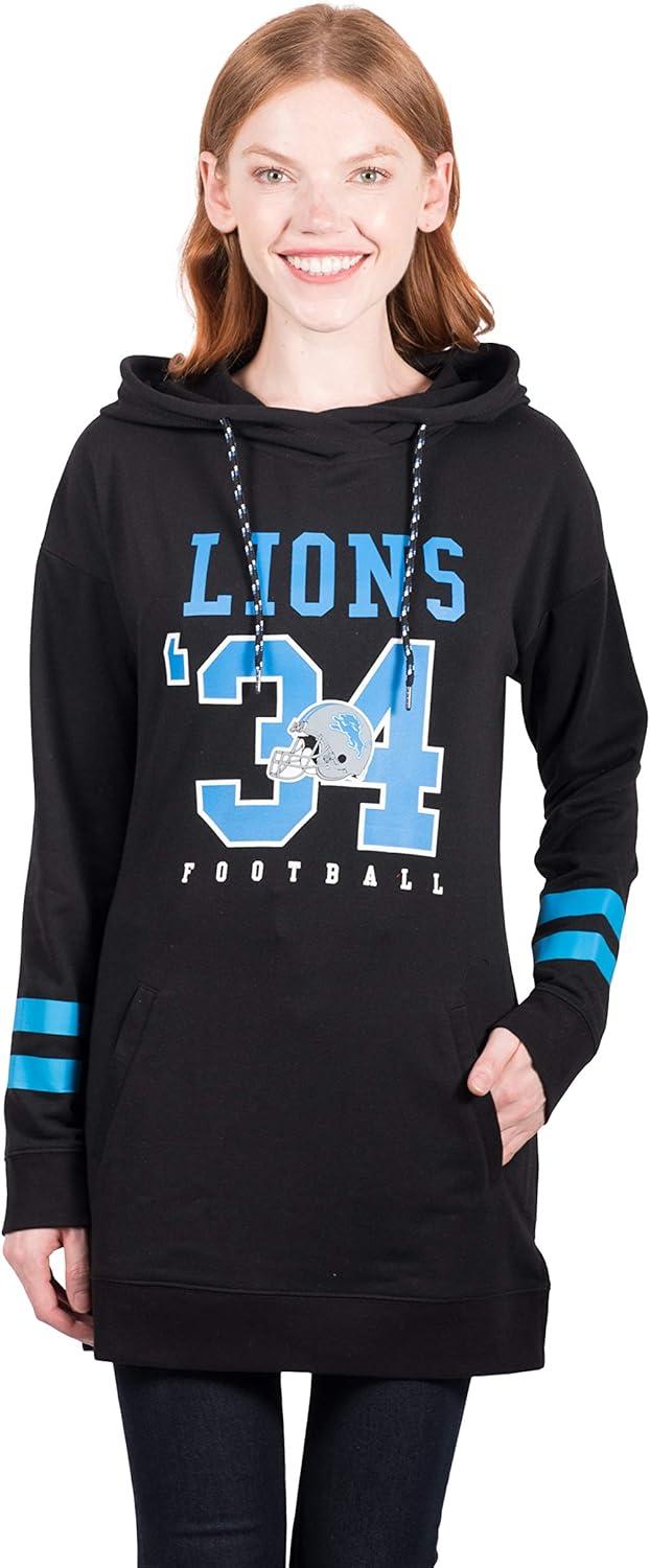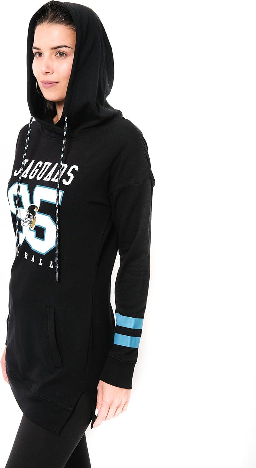 Ultra Game NFL womens Tunic Hoodie Pullover Sweatshirt Terry(Black)