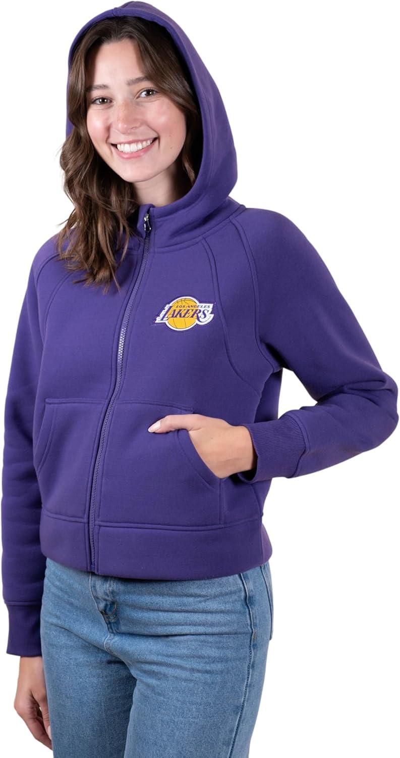 Ultra Game Women’s NBA Official Super Soft Crop Top Full Zip Jacket Hoodie(Team Color)