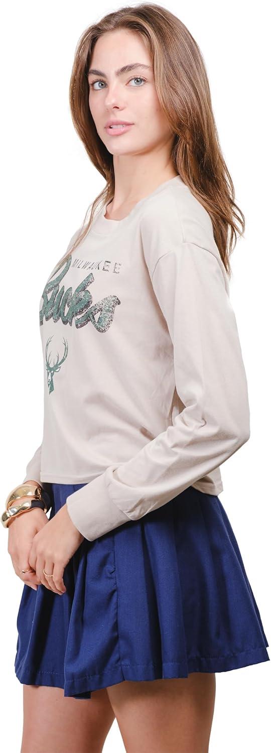 Ultra Game Women’s NBA Official Super Soft Crop Top Shirt(Sand)