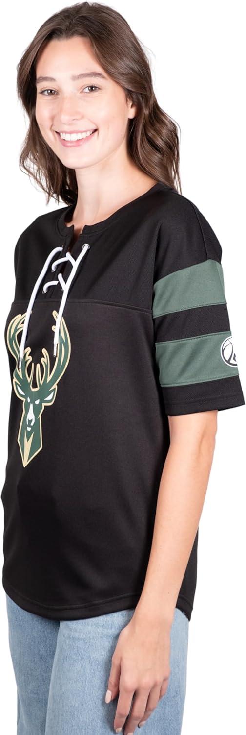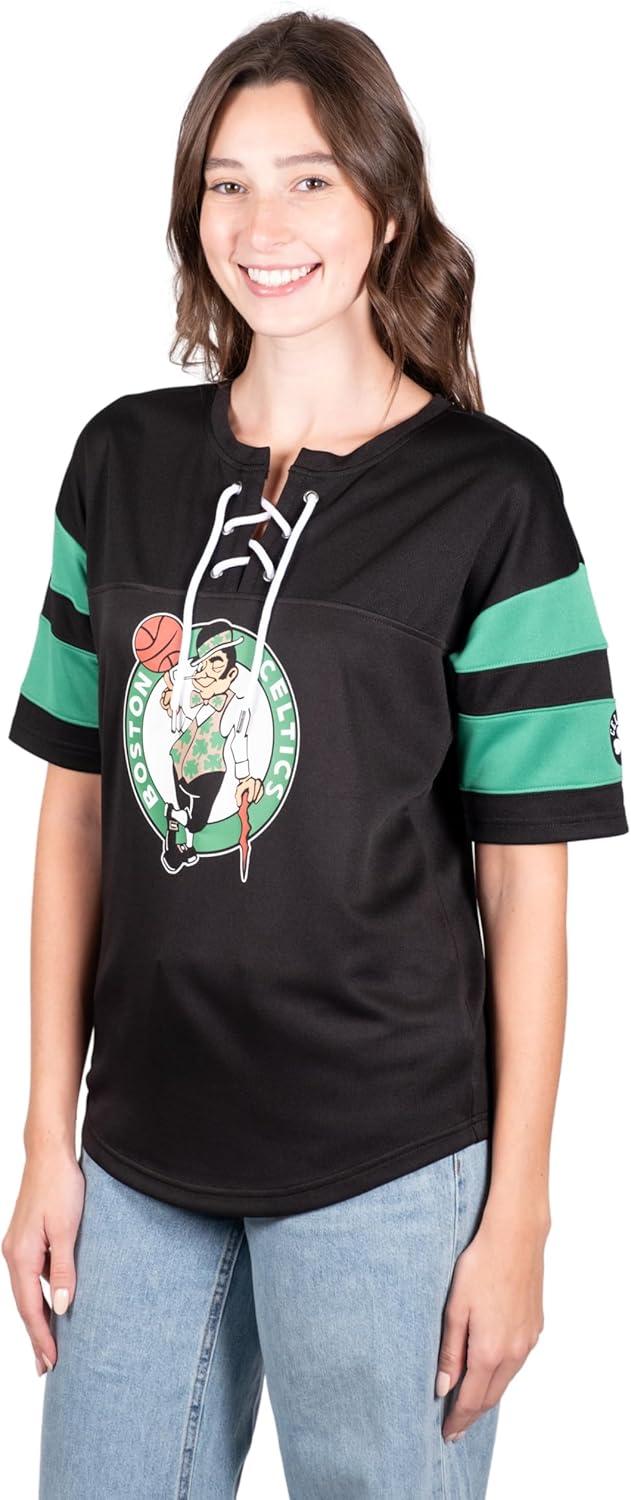 Ultra Game Women’s NBA Official Super Soft Mesh Lace-up Jersey Shirt(Black)