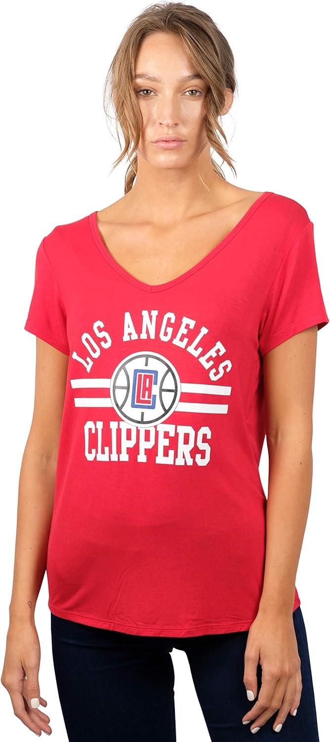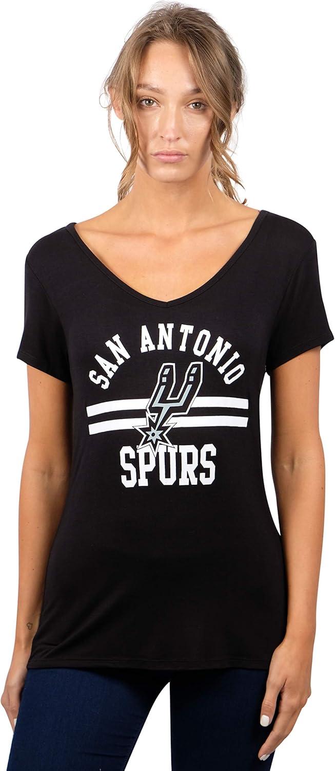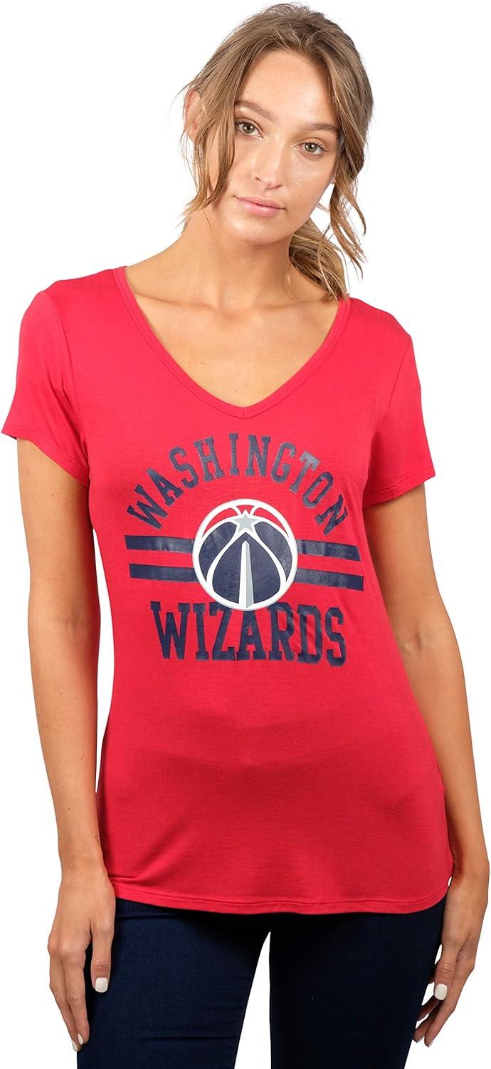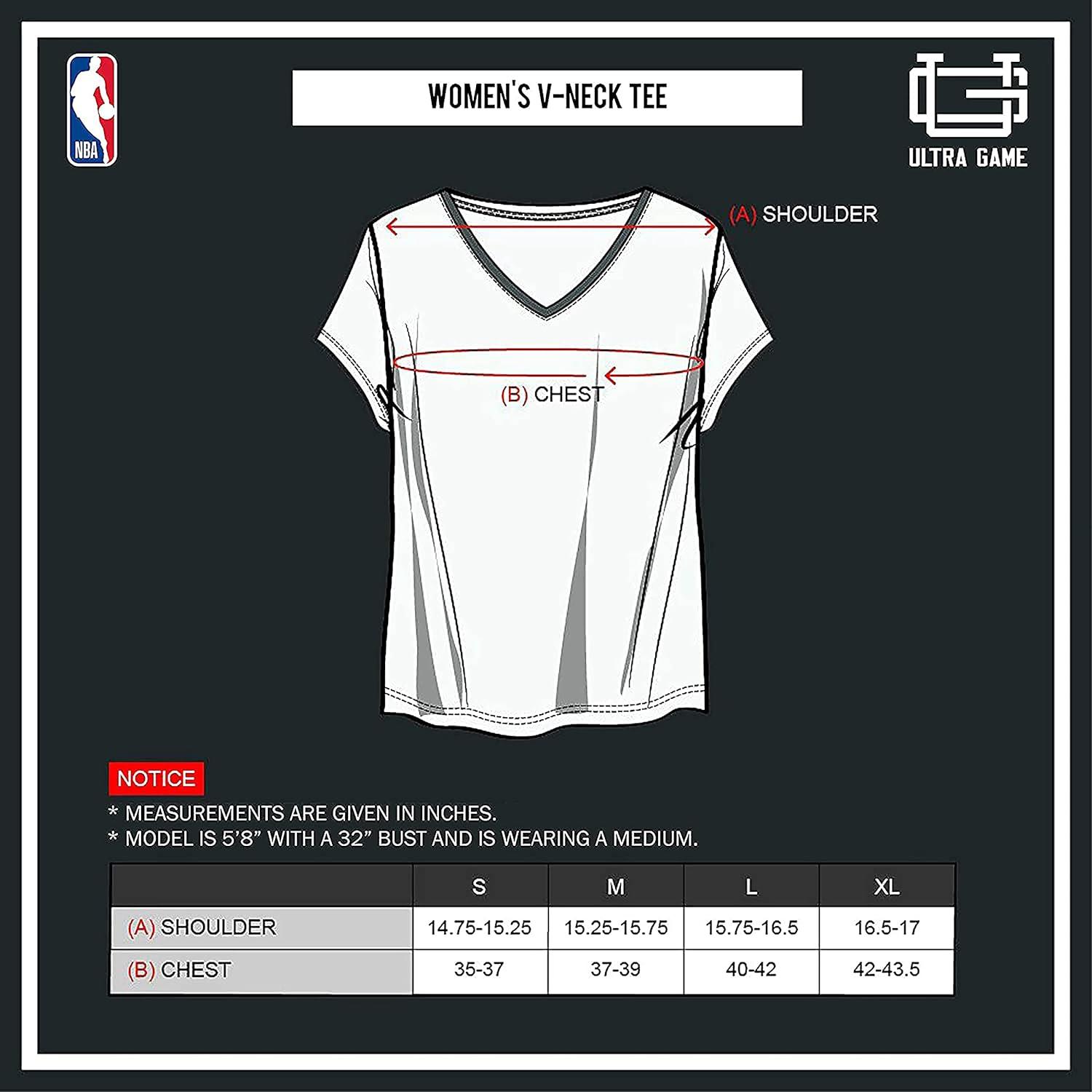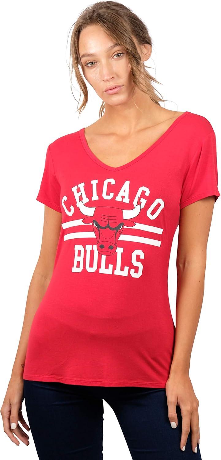 Ultra Game Women’s NBA Official V-Neck Rhinestone Short Sleeve Tee Shirt(Team Color)