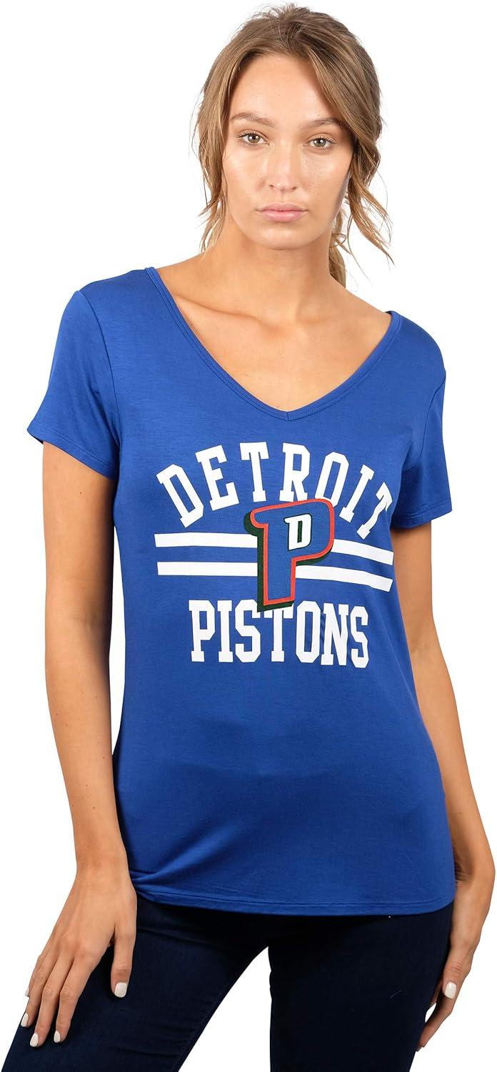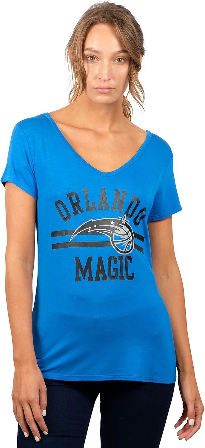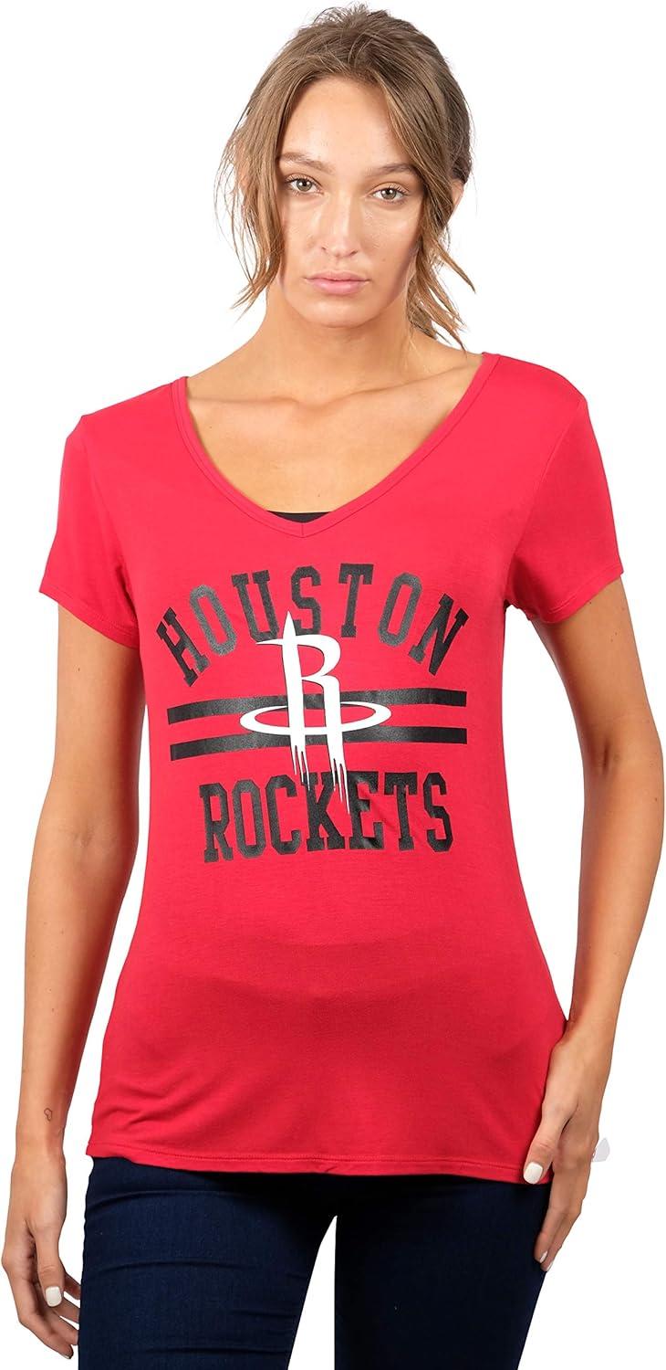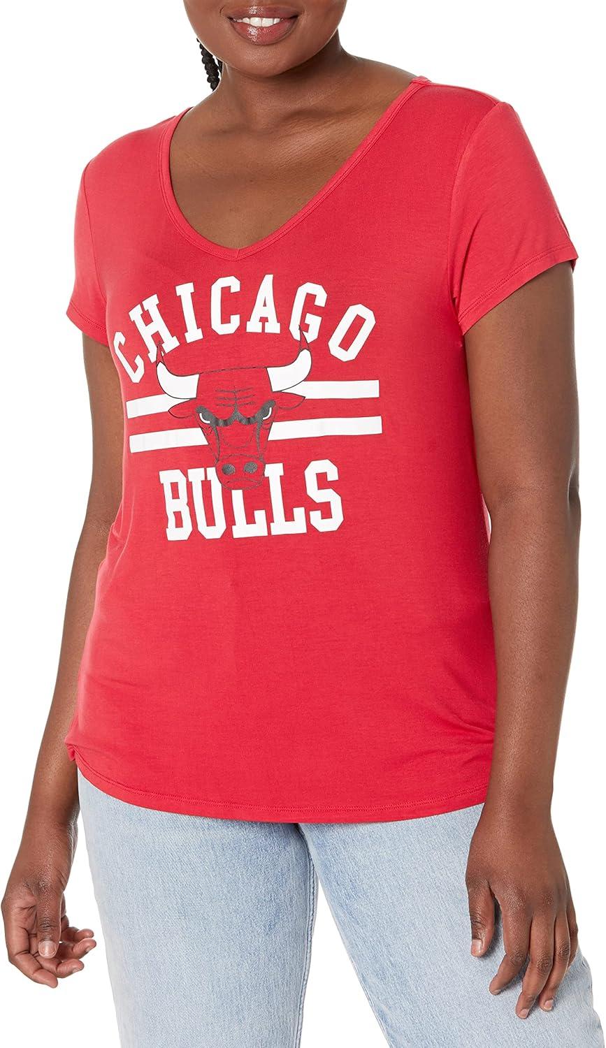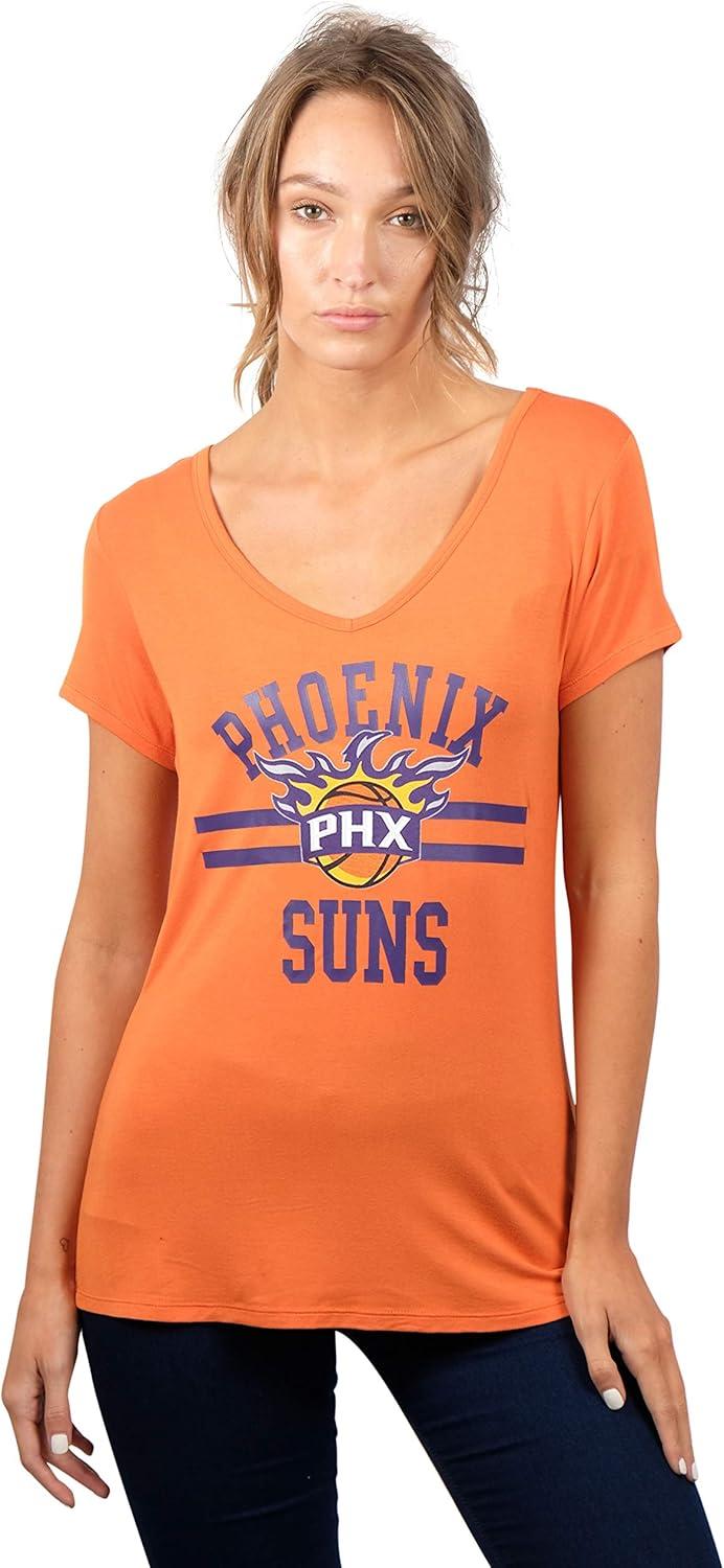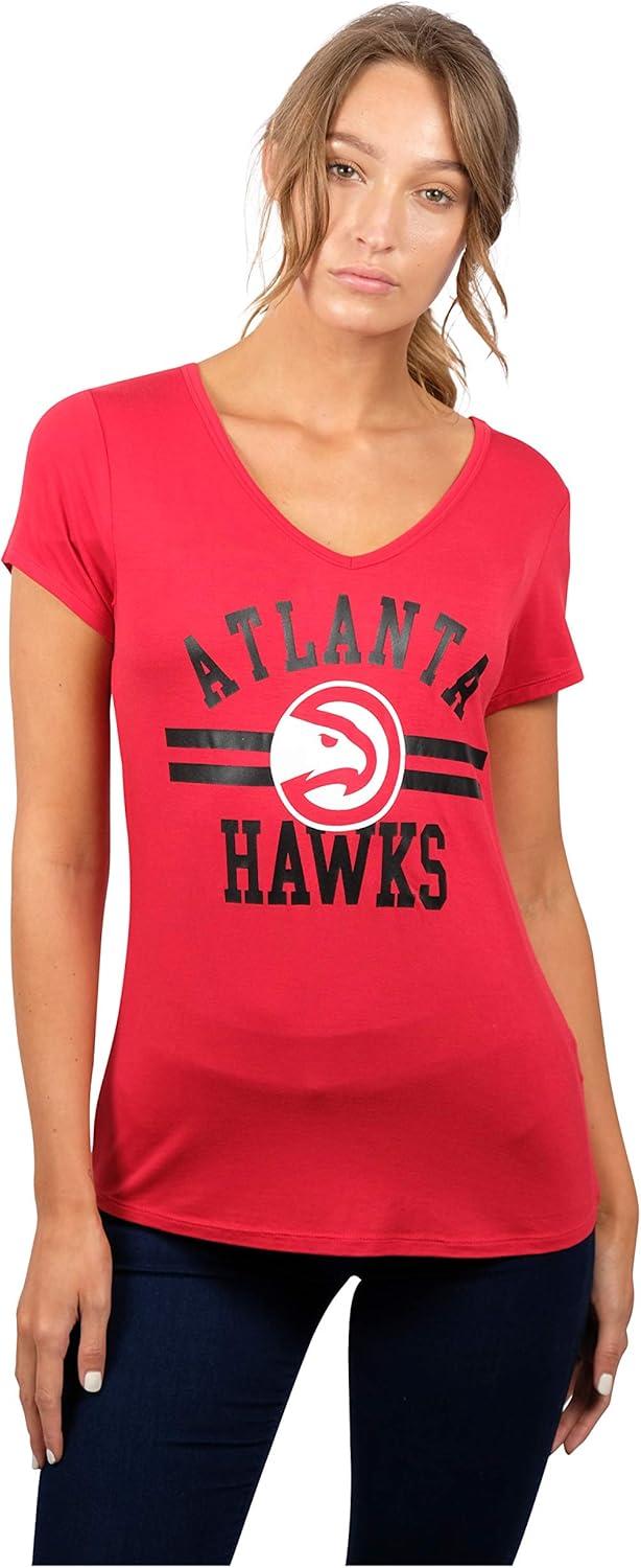 Ultra Game Women’s NBA Official V-Neck Rhinestone Short Sleeve Tee Shirt(Team Color)