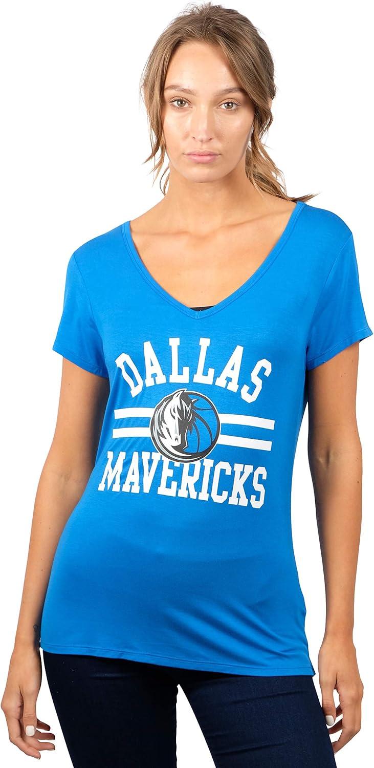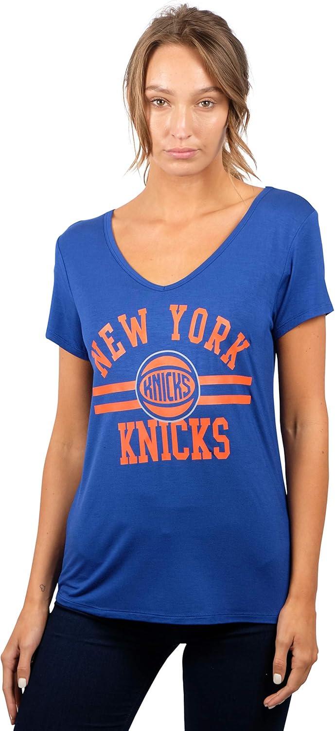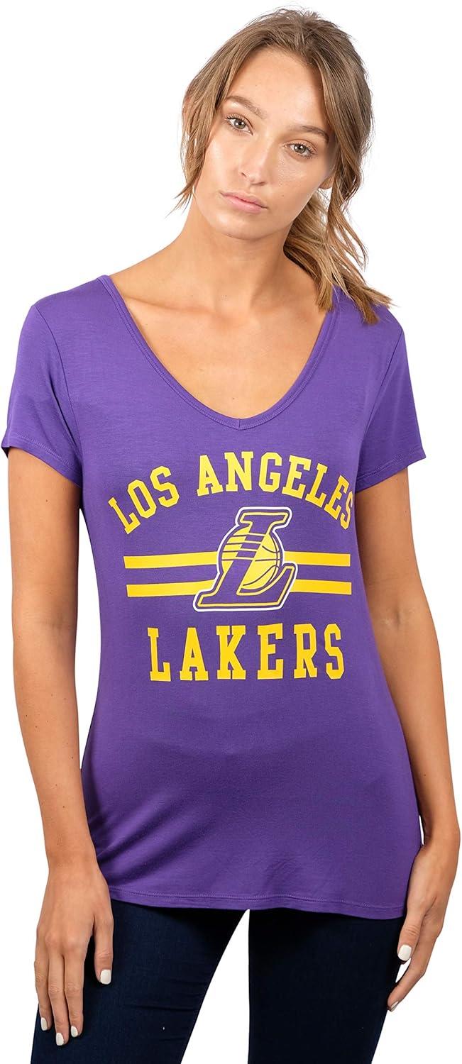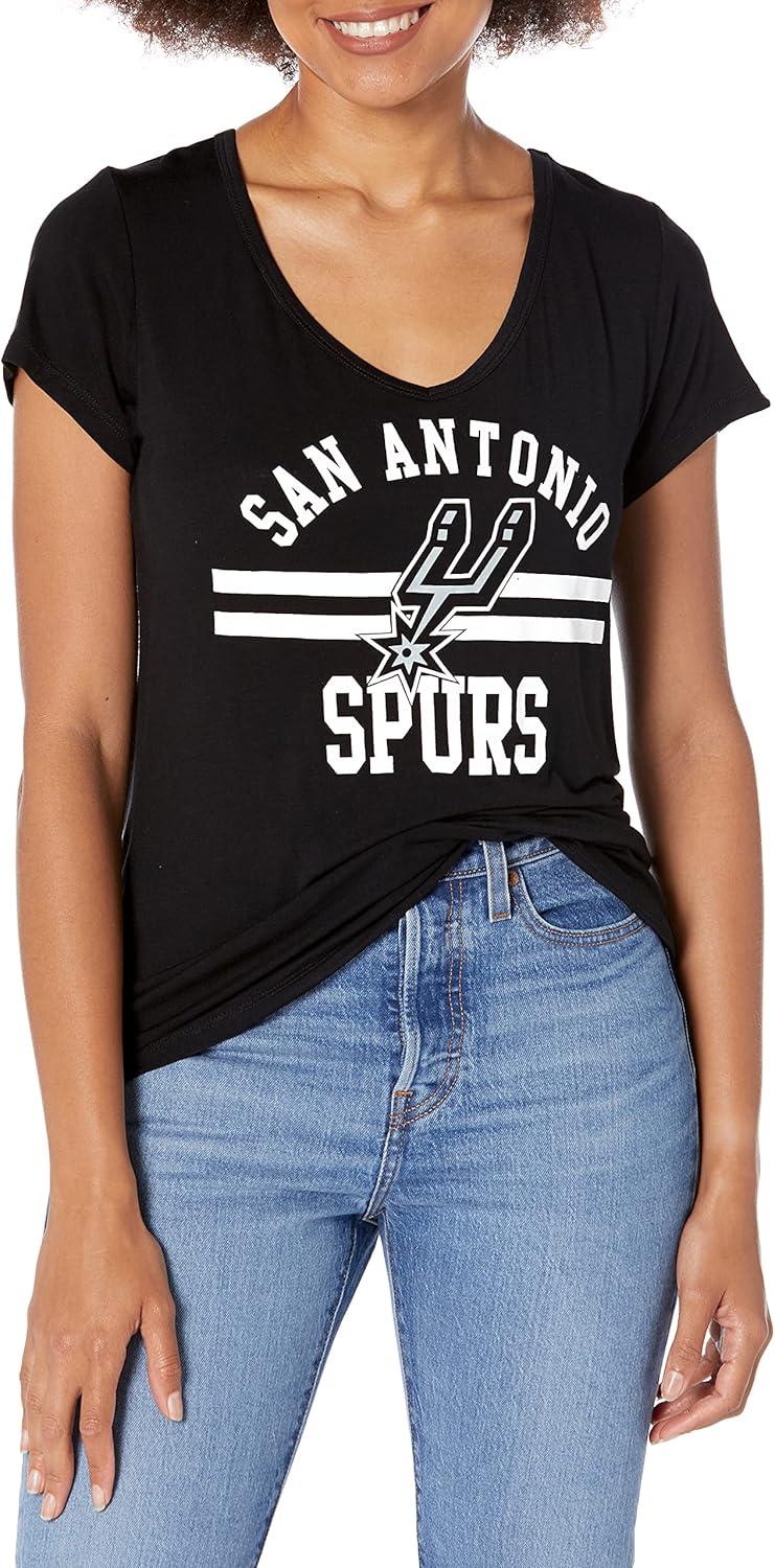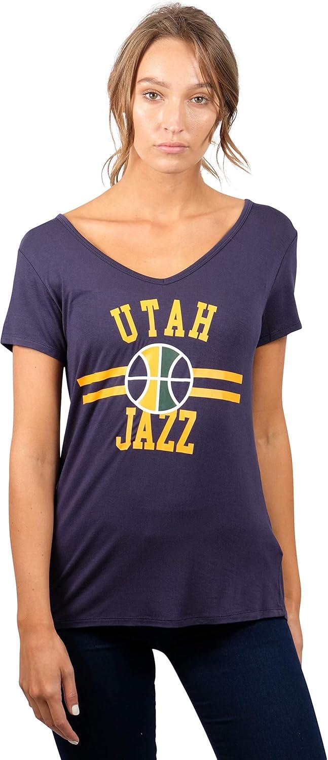 Ultra Game Women’s NBA Official V-Neck Rhinestone Short Sleeve Tee Shirt(Team Color)