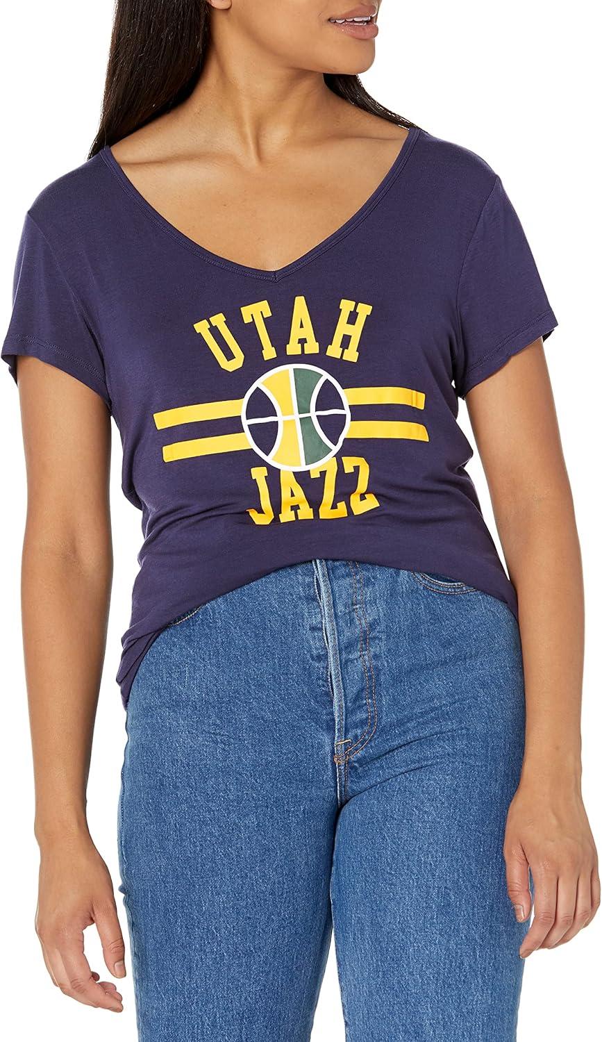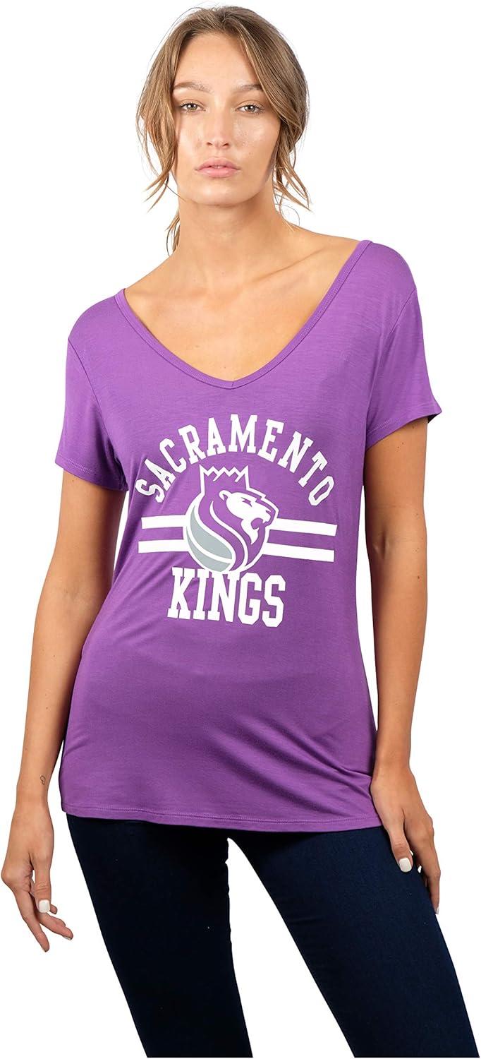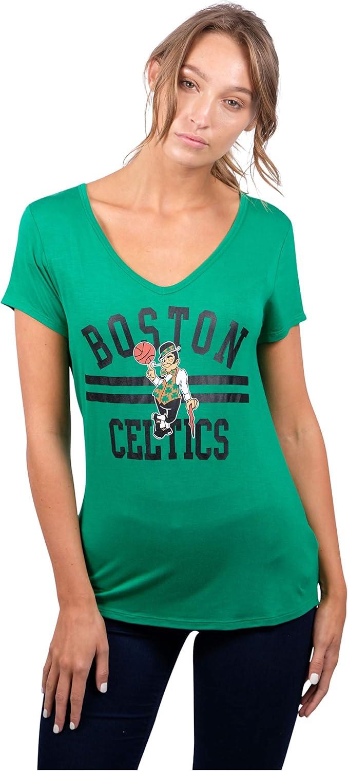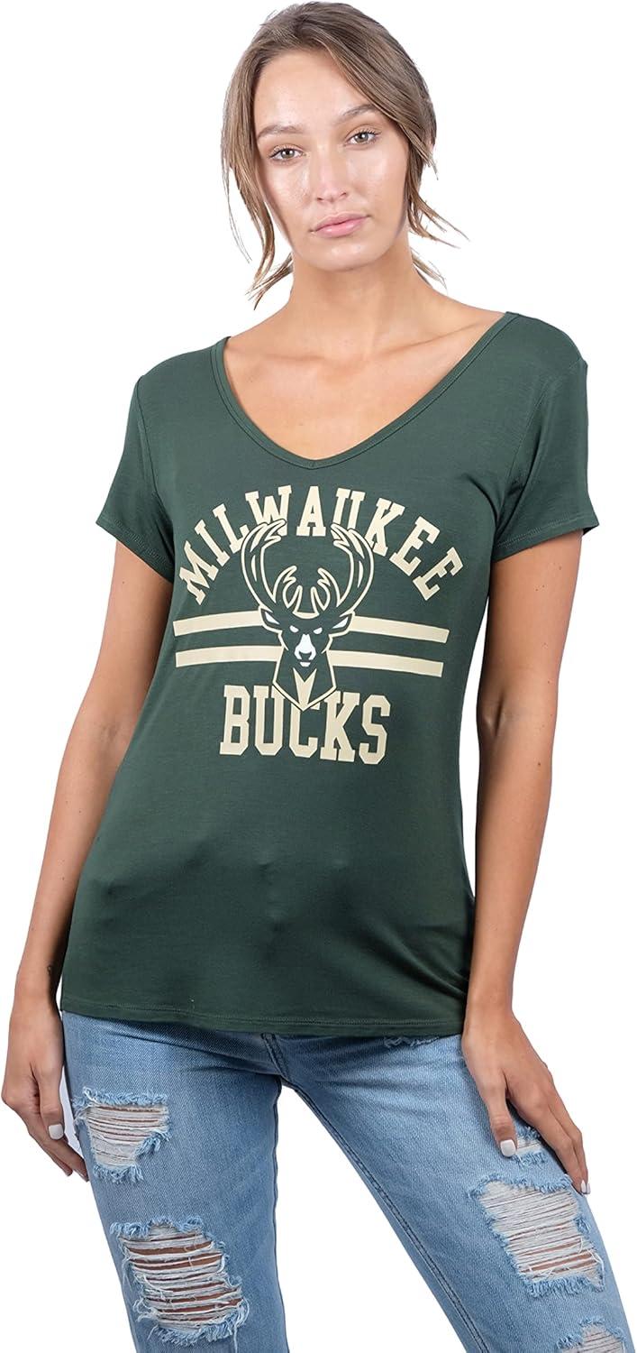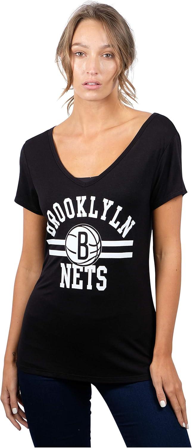 Ultra Game Women’s NBA Official V-Neck Rhinestone Short Sleeve Tee Shirt(Team Color)