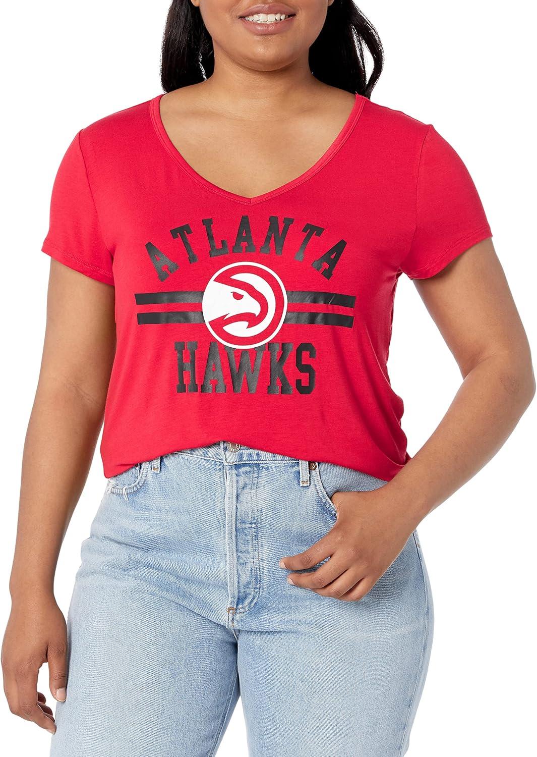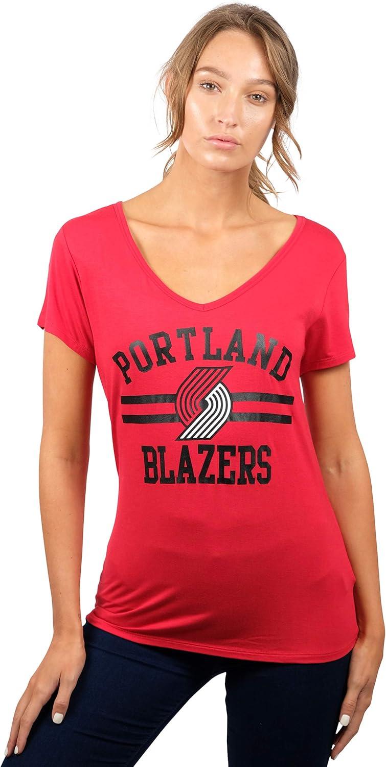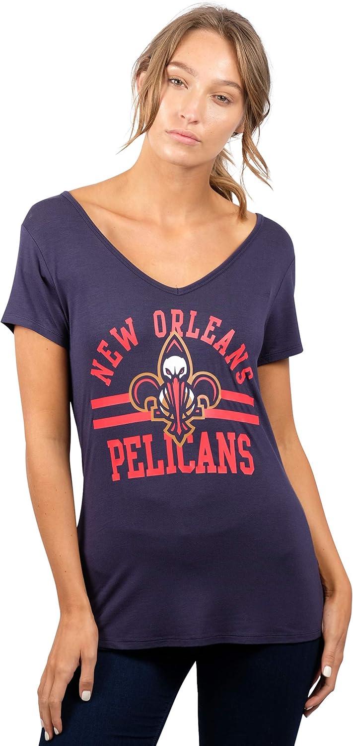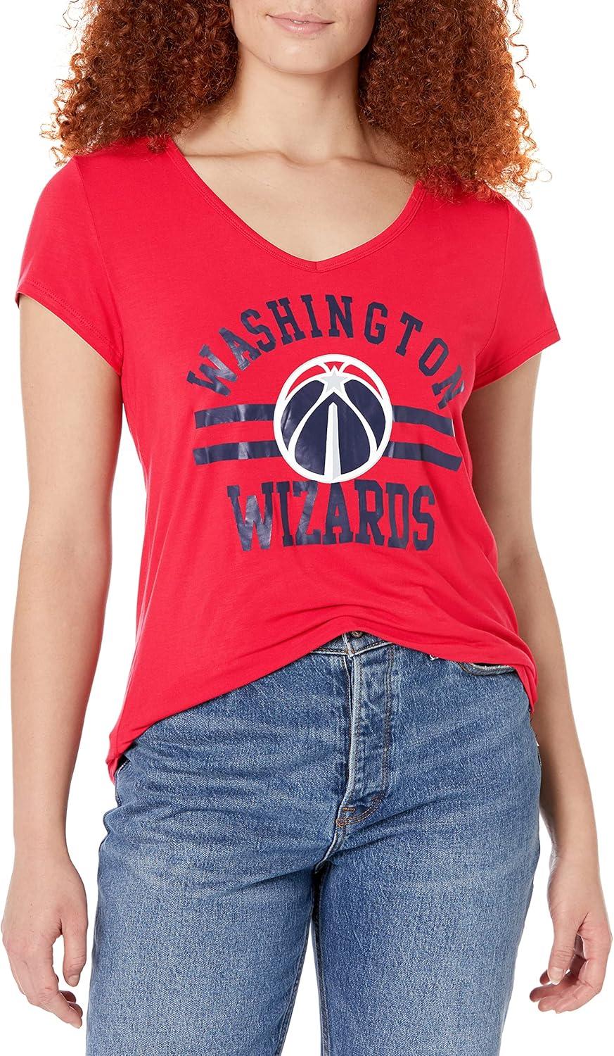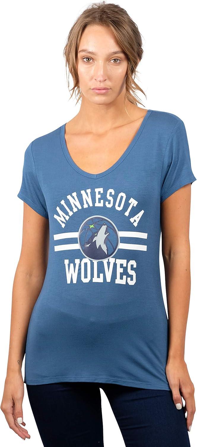 Ultra Game Women’s NBA Official V-Neck Rhinestone Short Sleeve Tee Shirt(Team Color)