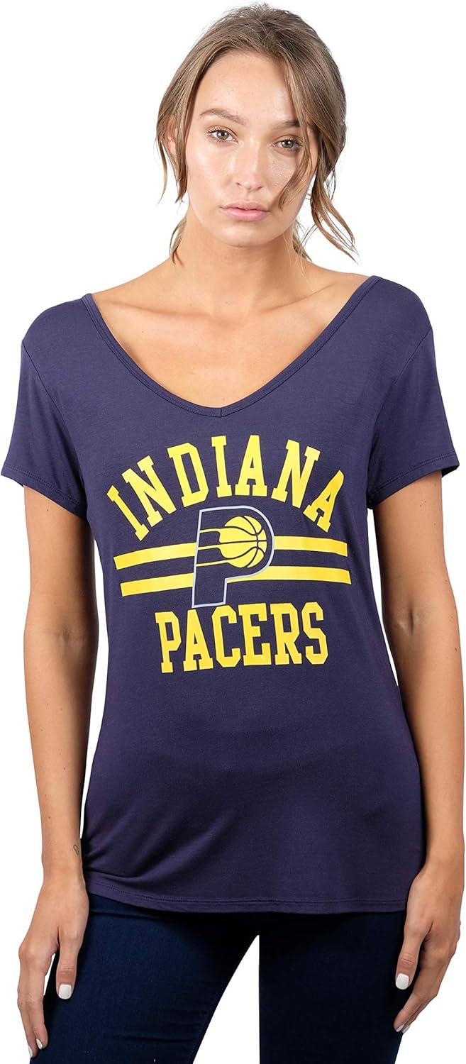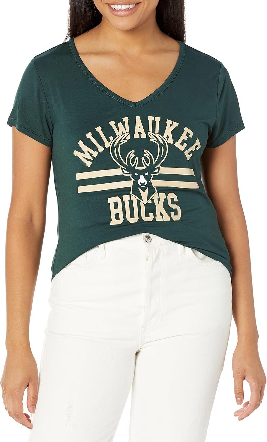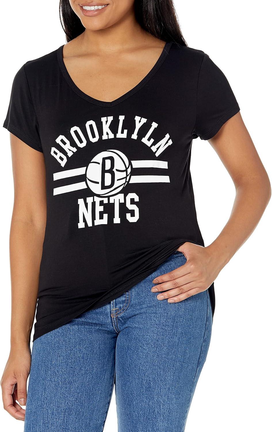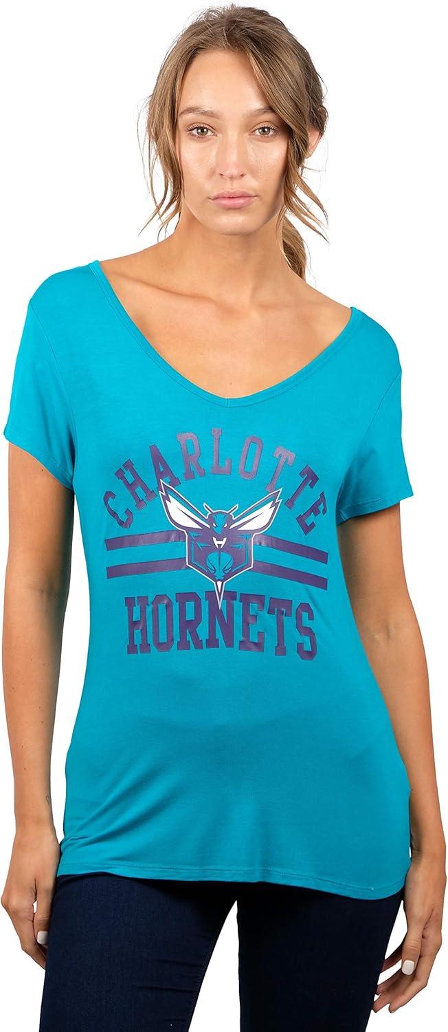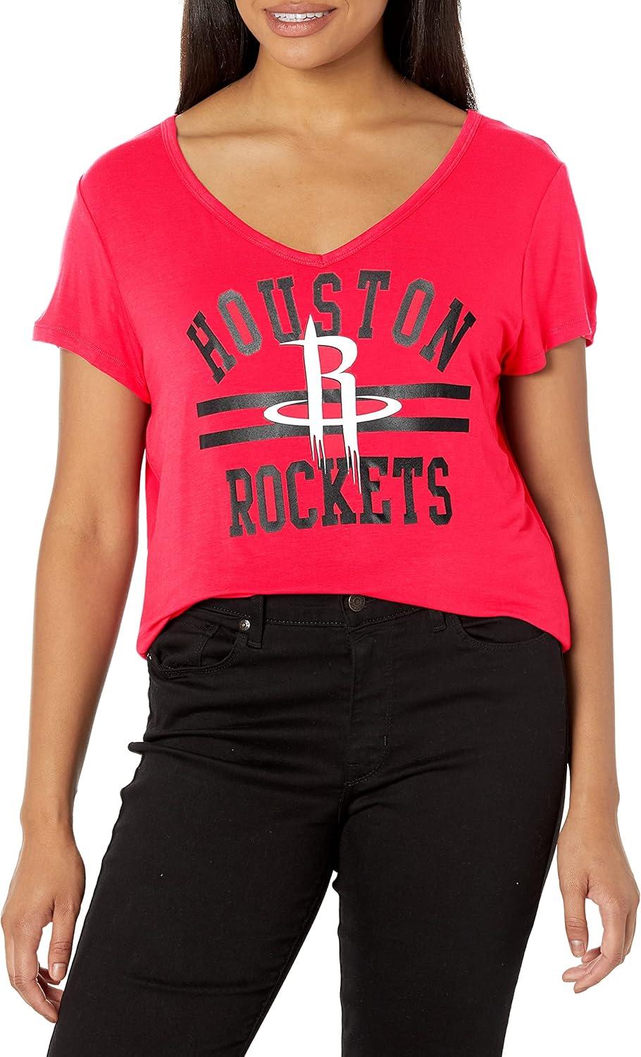Ultra Game Women’s NBA Official V-Neck Rhinestone Short Sleeve Tee Shirt(Team Color)