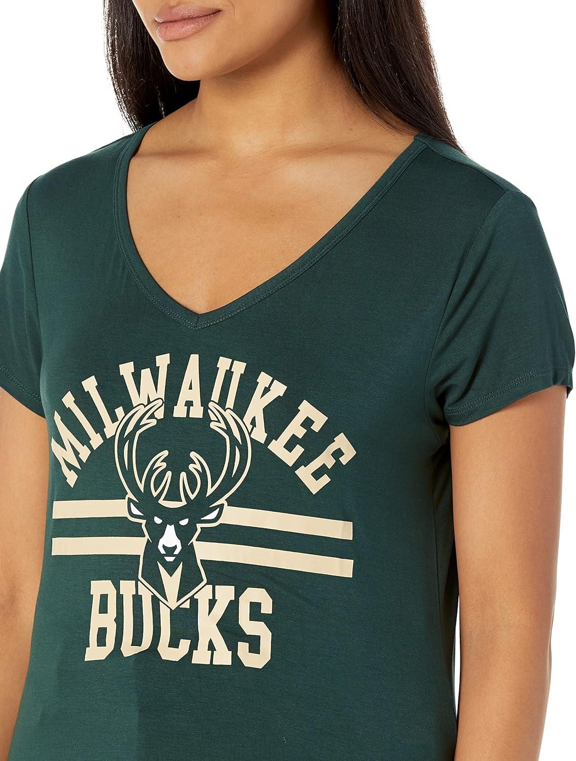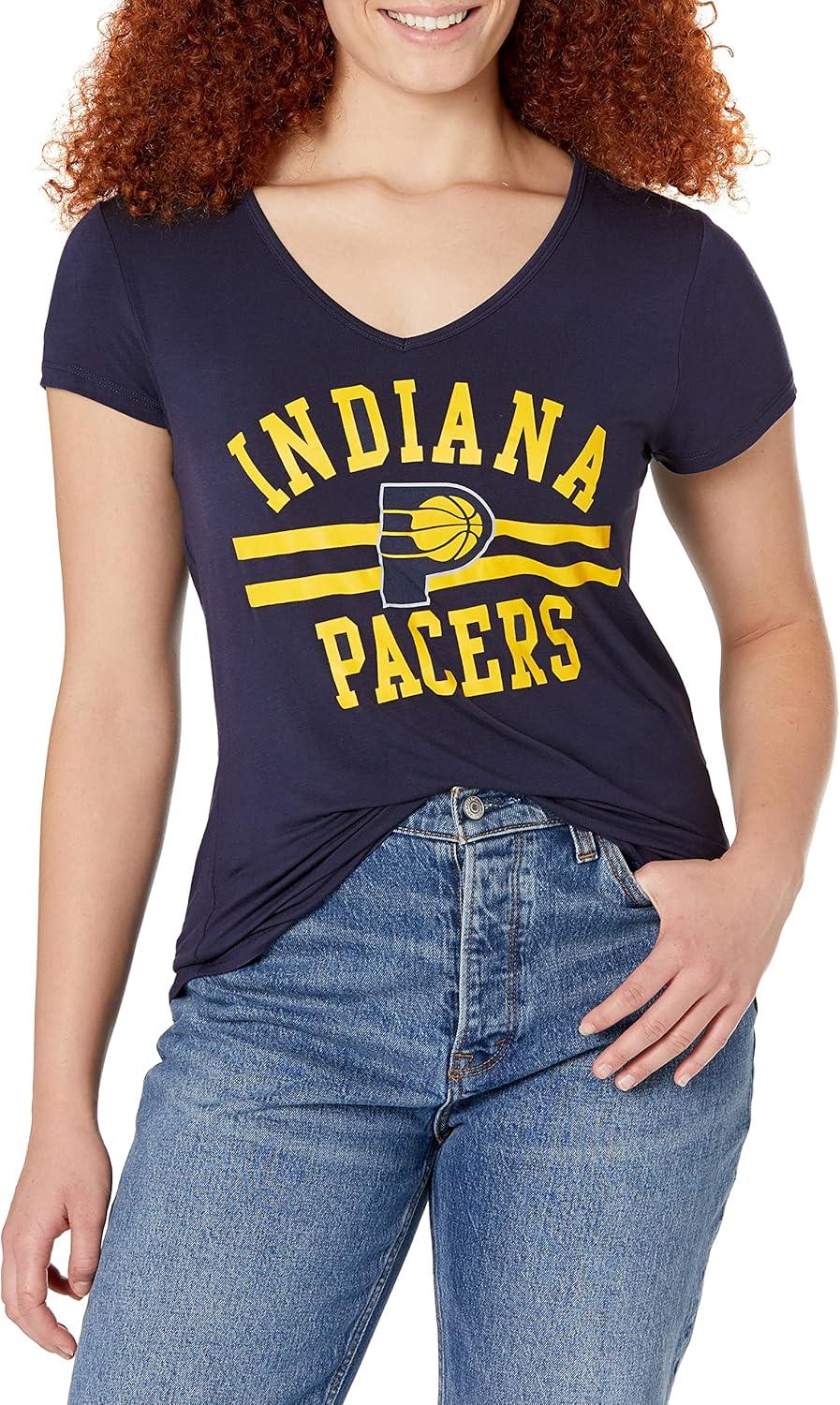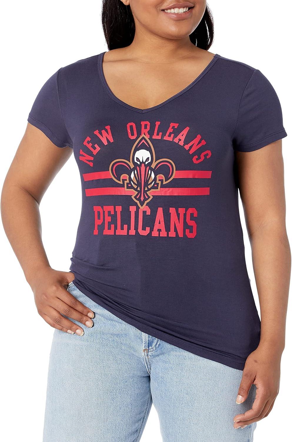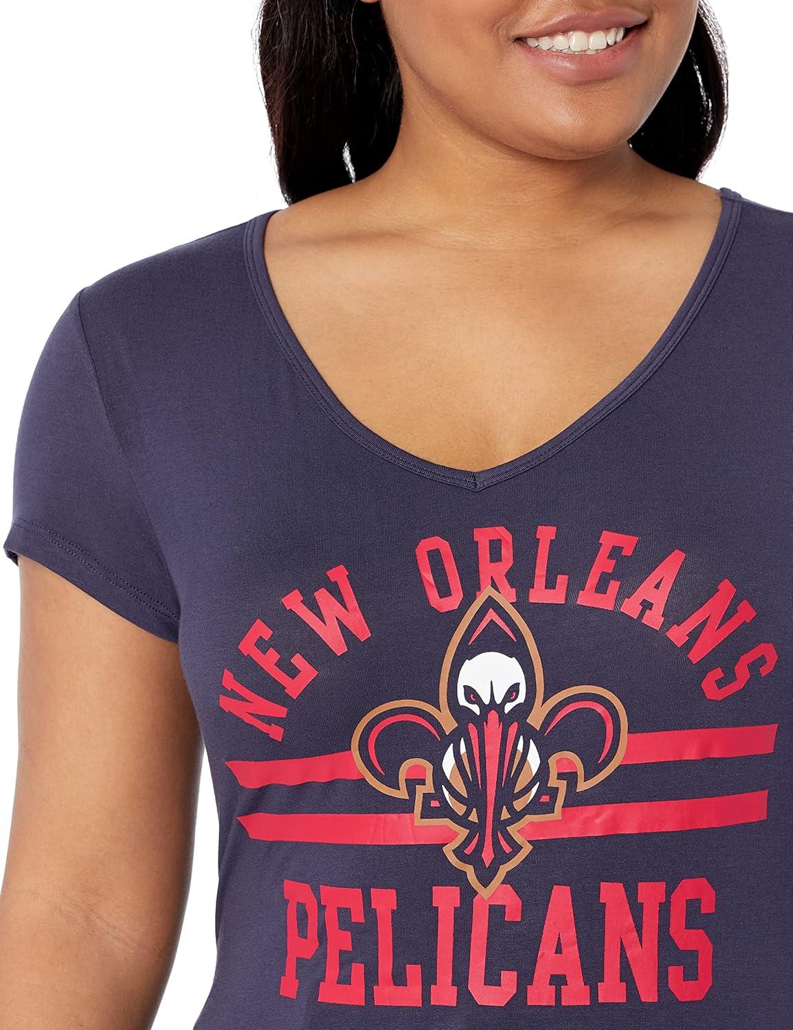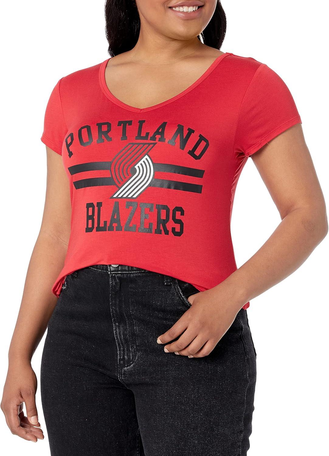 Ultra Game Women’s NBA Official V-Neck Rhinestone Short Sleeve Tee Shirt(Team Color)