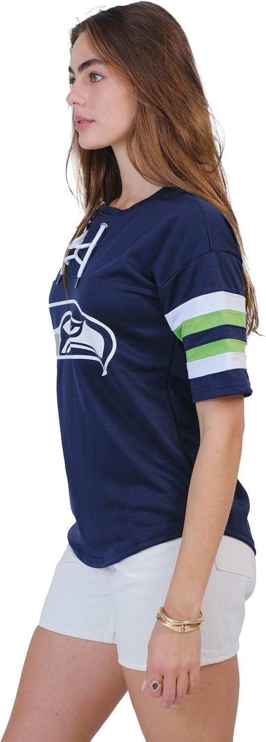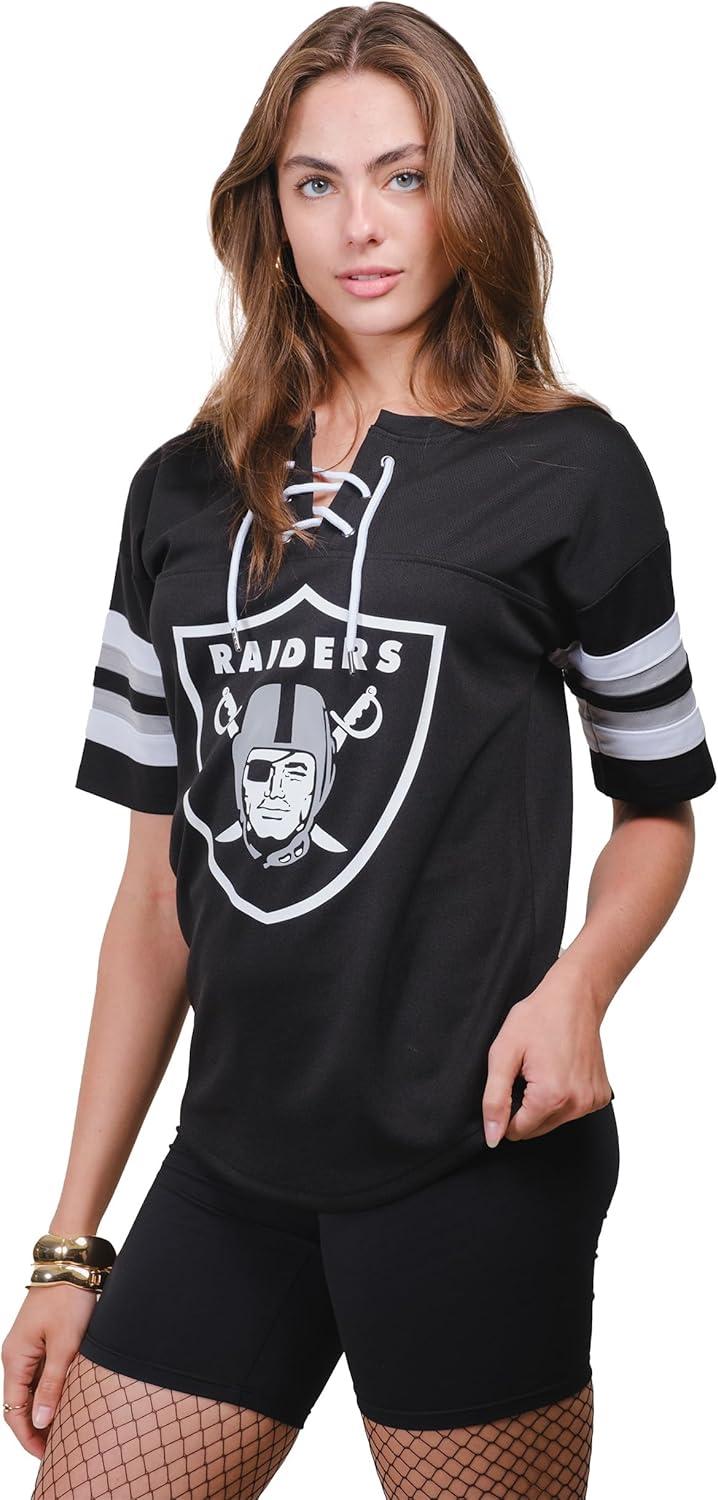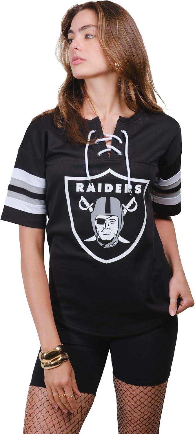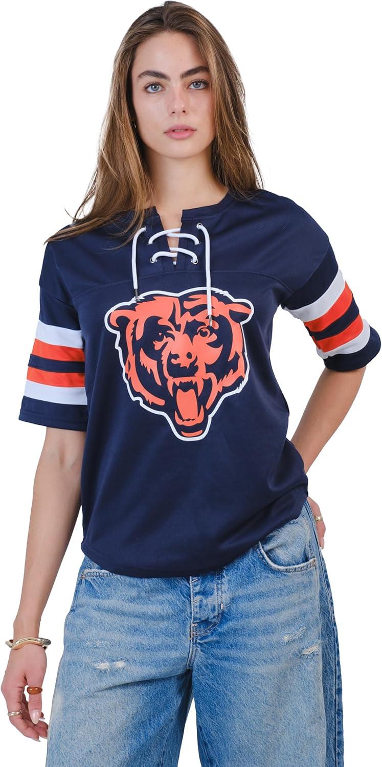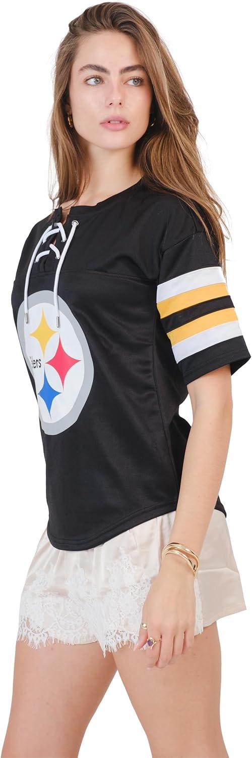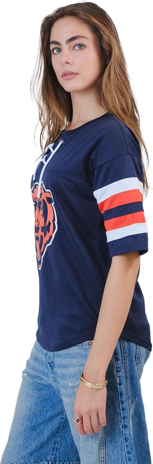 Ultra Game Women’s NFL Official Lace Up Tee Shirt Penalty Box(Team Color Updated)