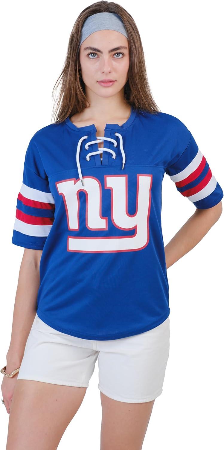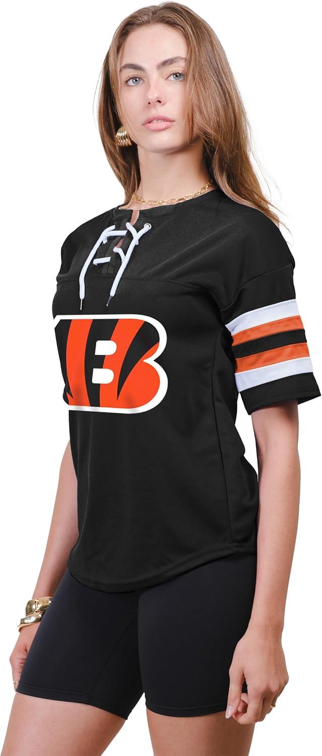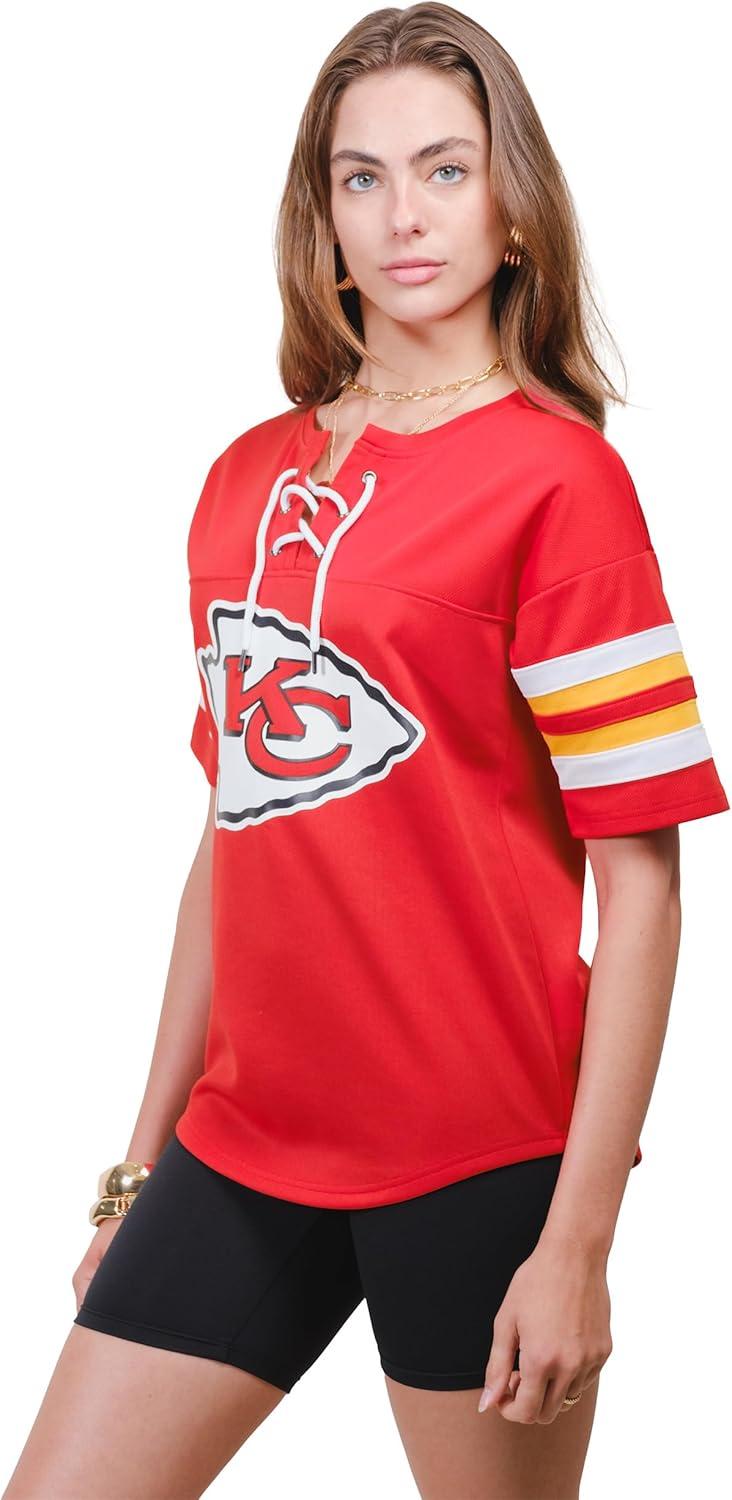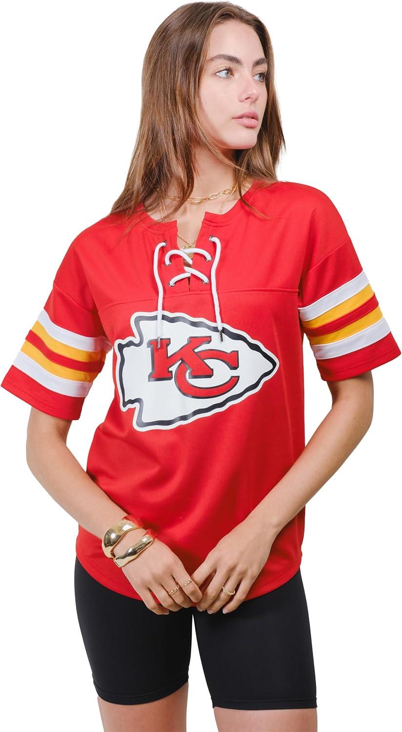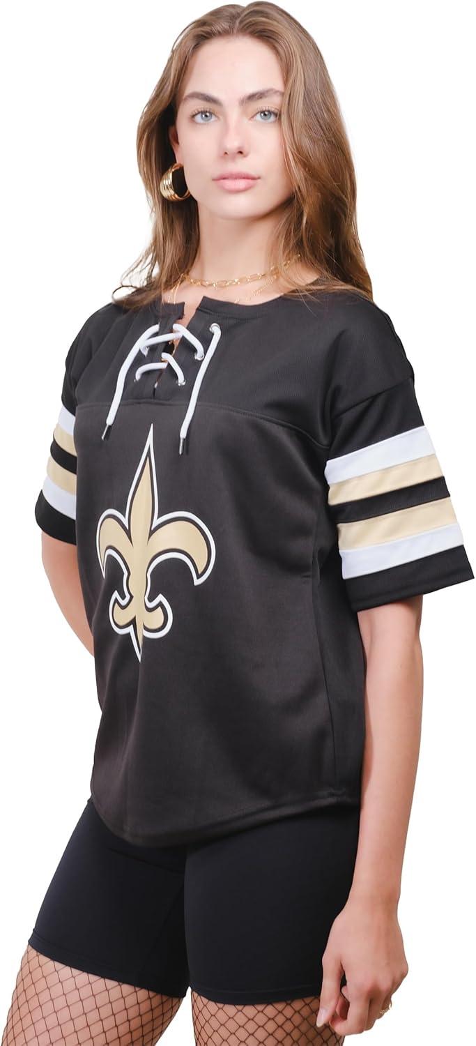 Ultra Game Women’s NFL Official Lace Up Tee Shirt Penalty Box(Team Color Updated)