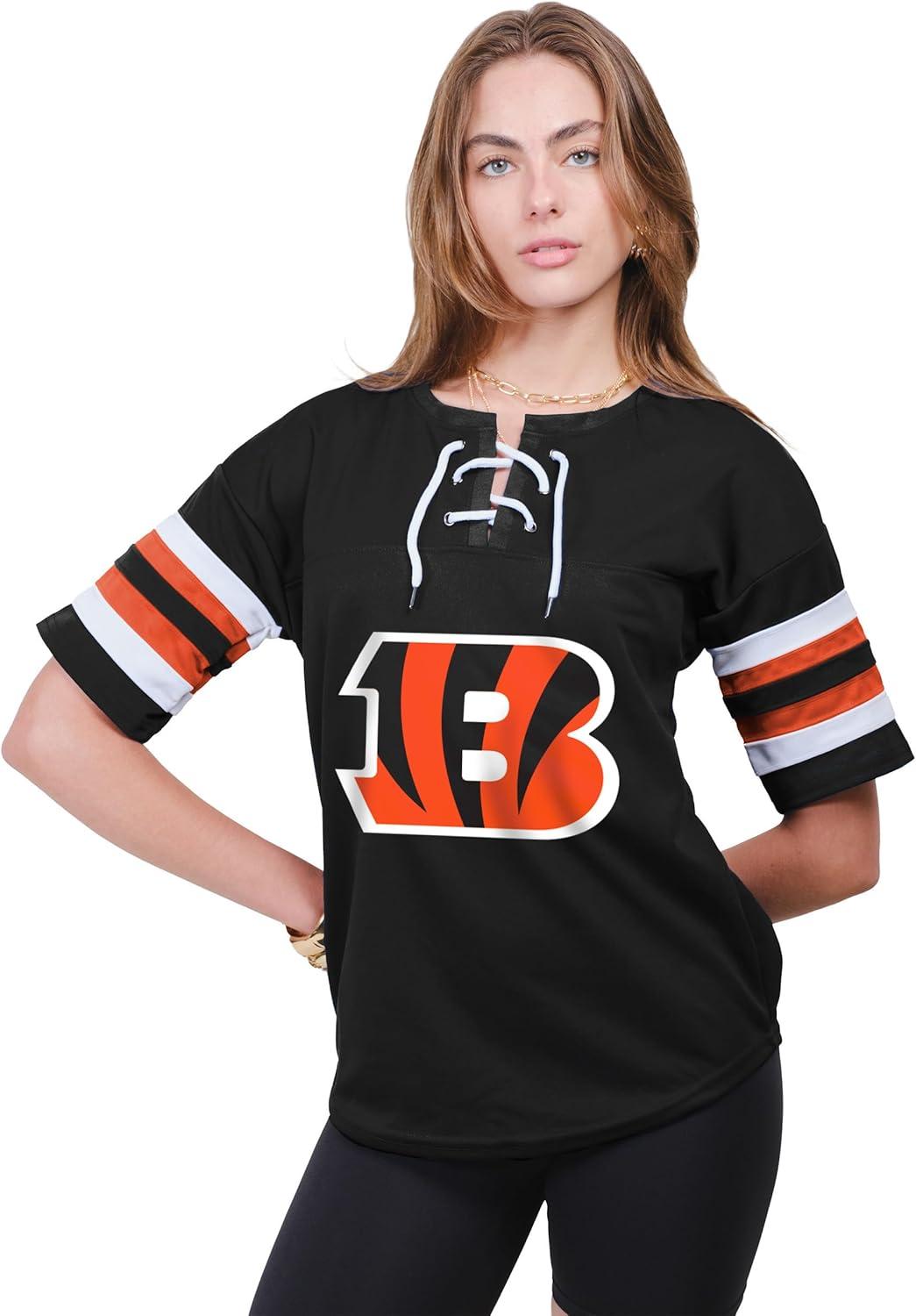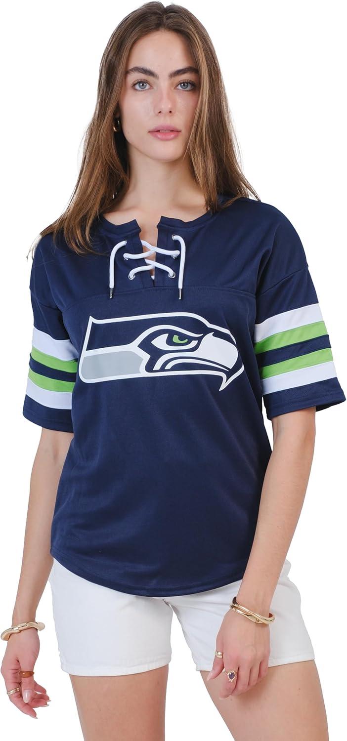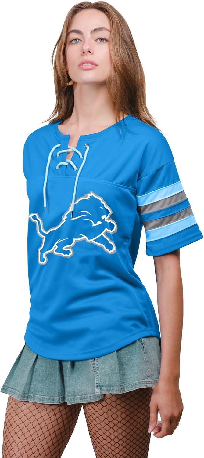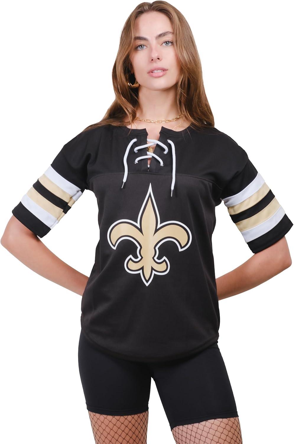 Ultra Game Women’s NFL Official Lace Up Tee Shirt Penalty Box(Team Color Updated)