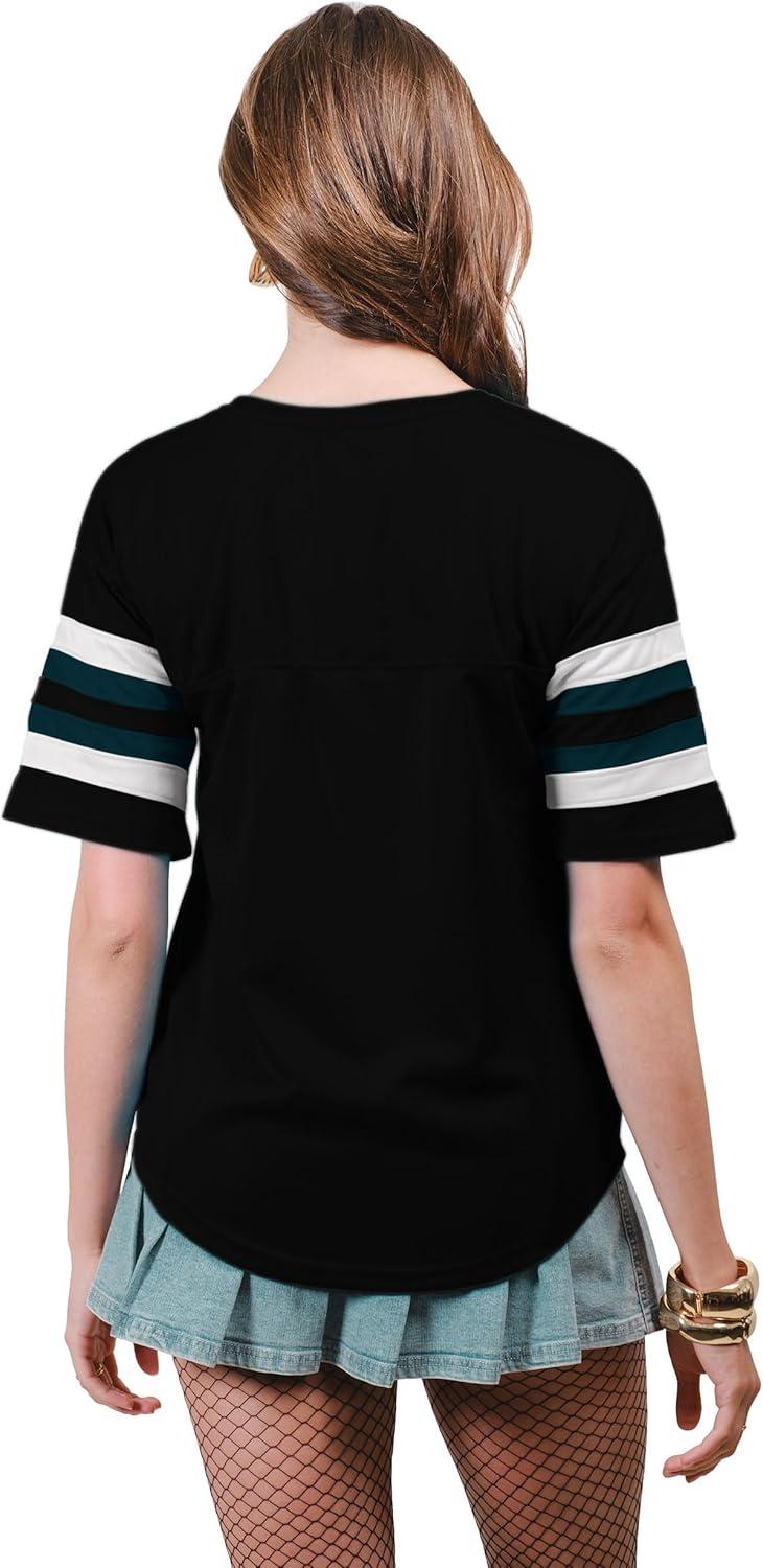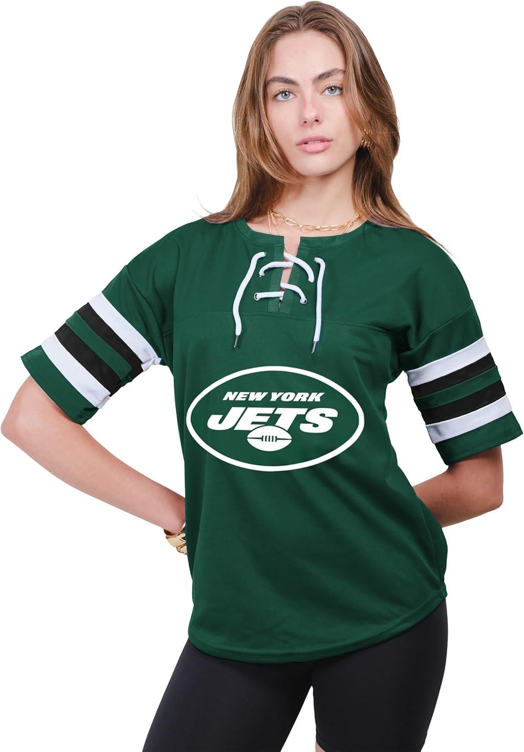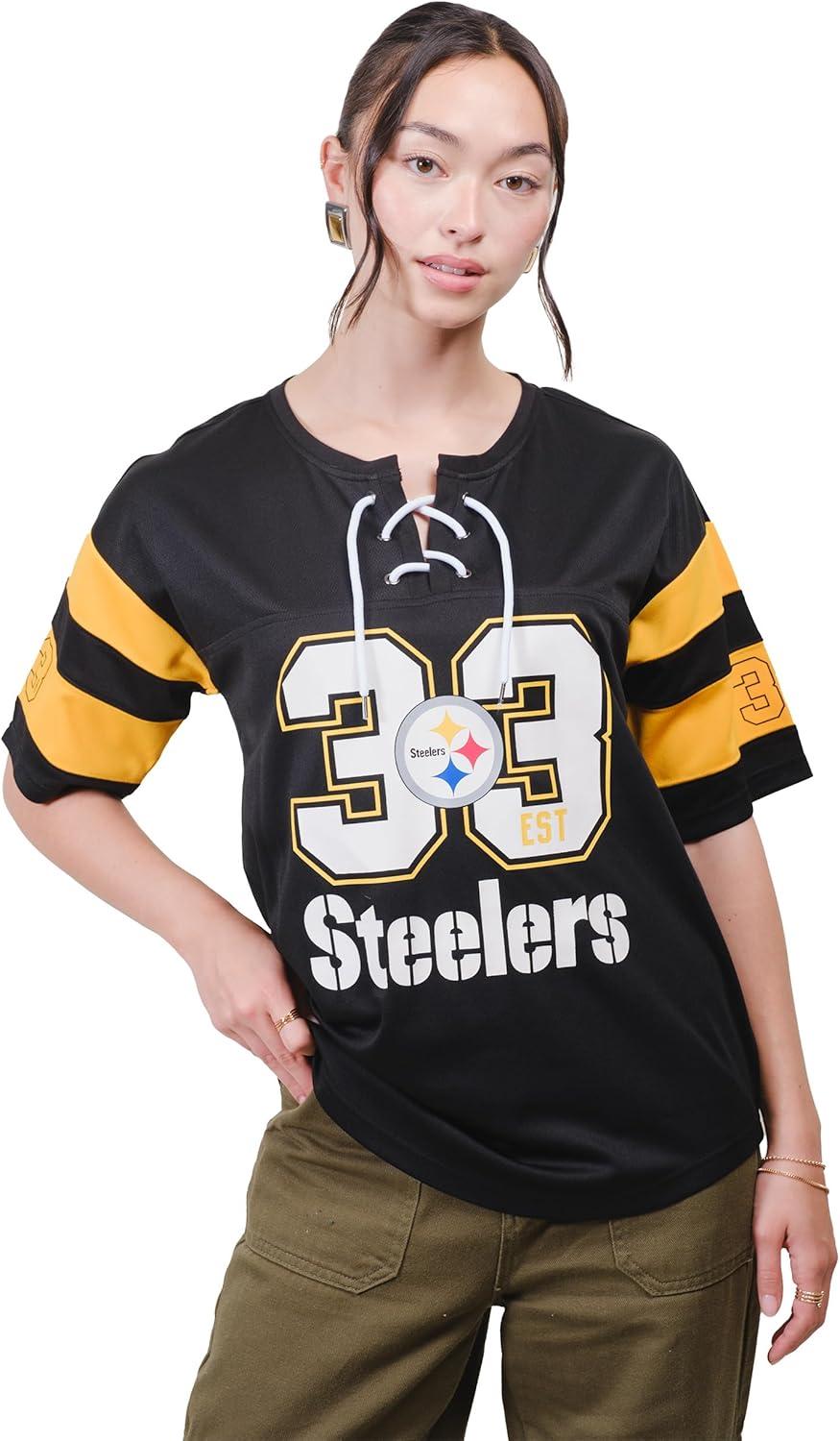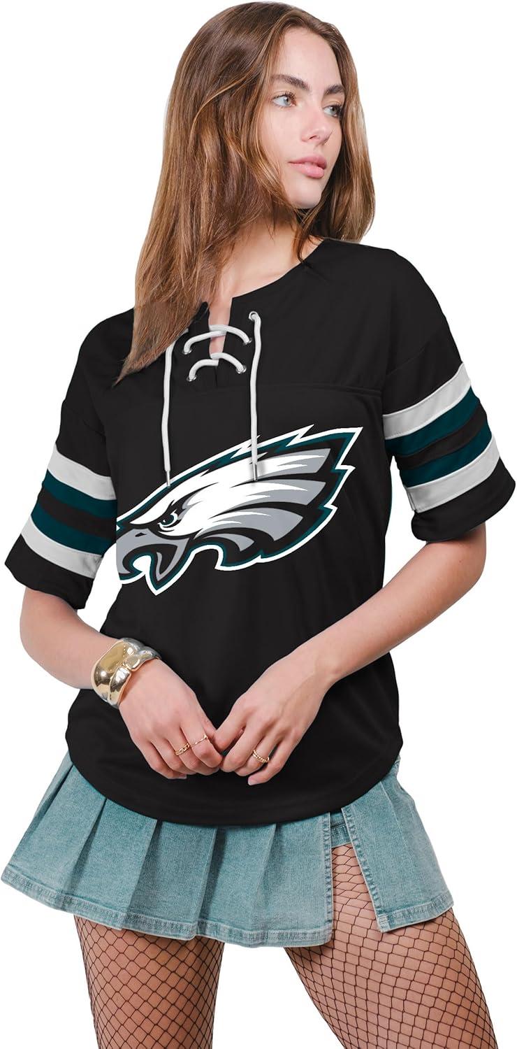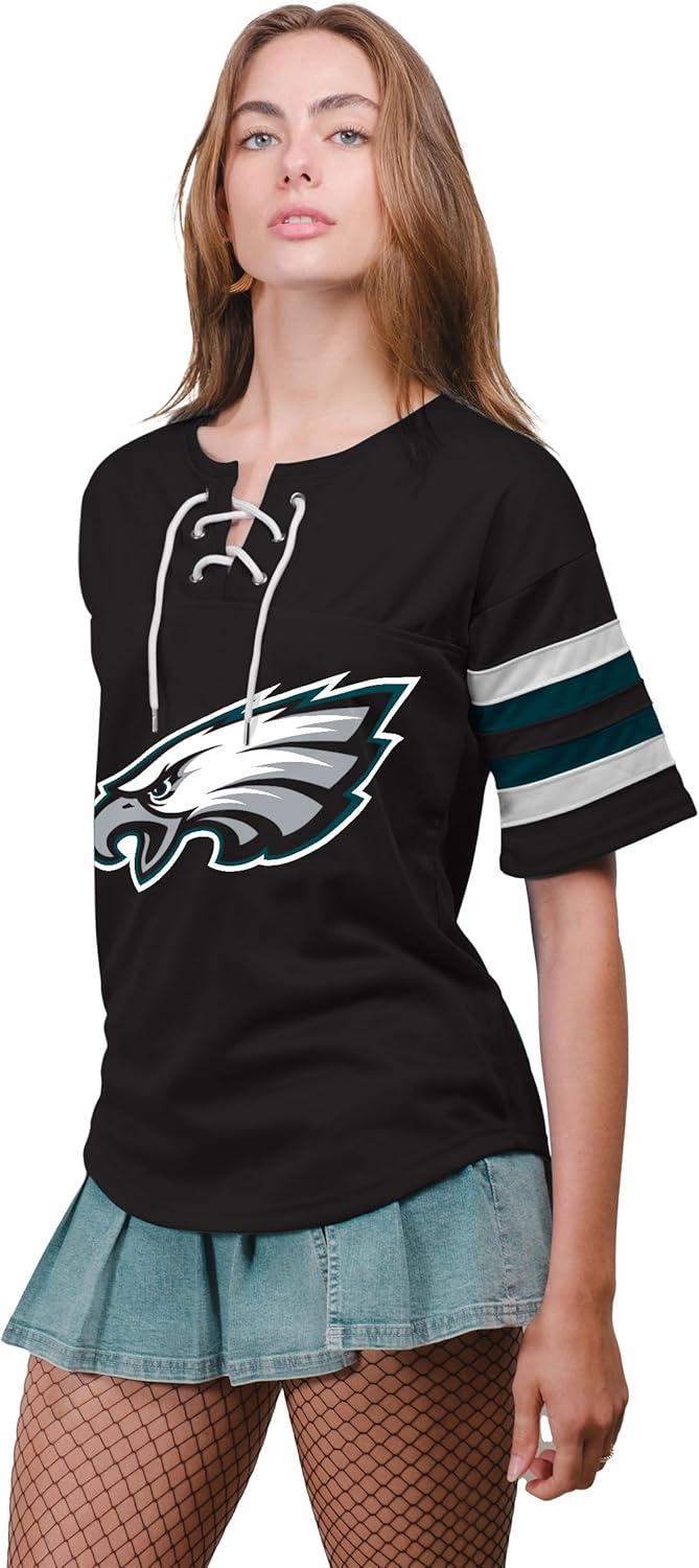 Ultra Game Women’s NFL Official Lace Up Tee Shirt Penalty Box(Team Color Updated)
