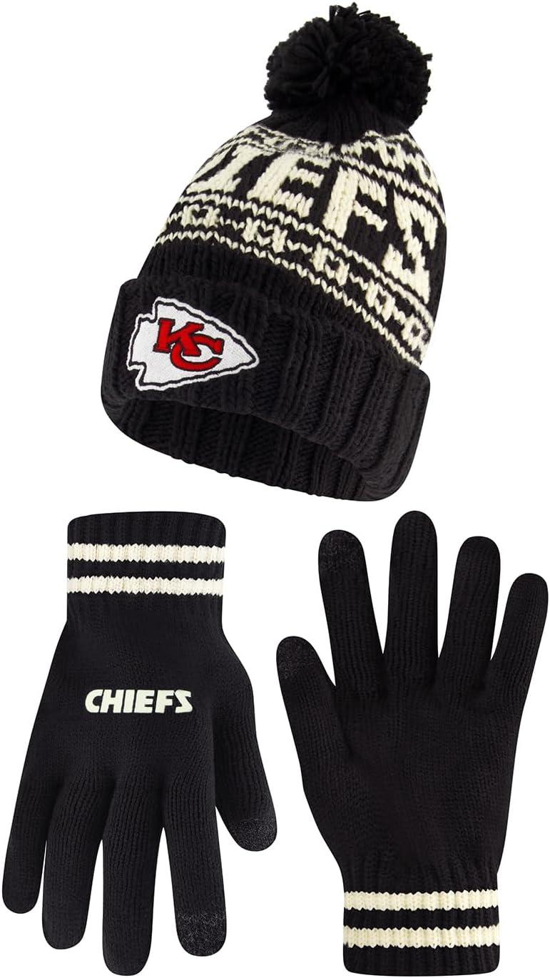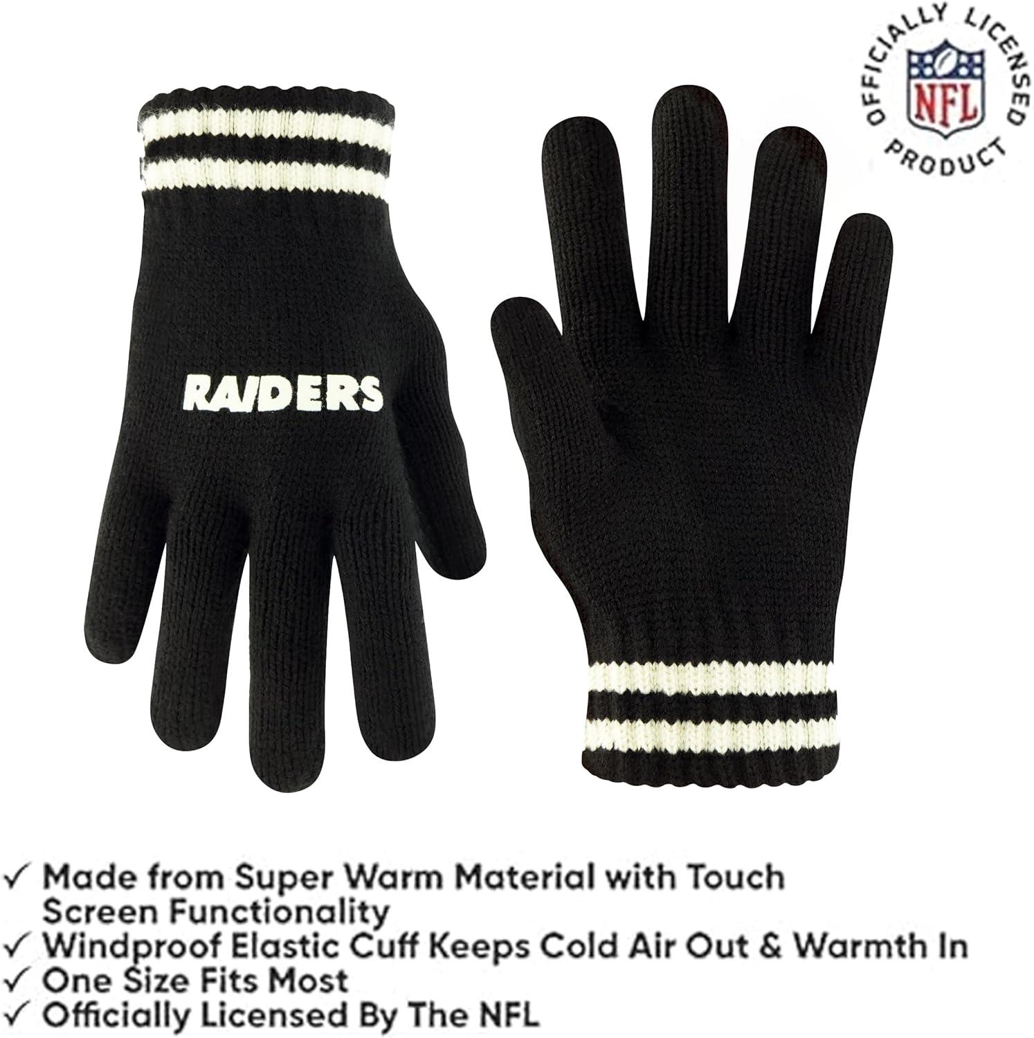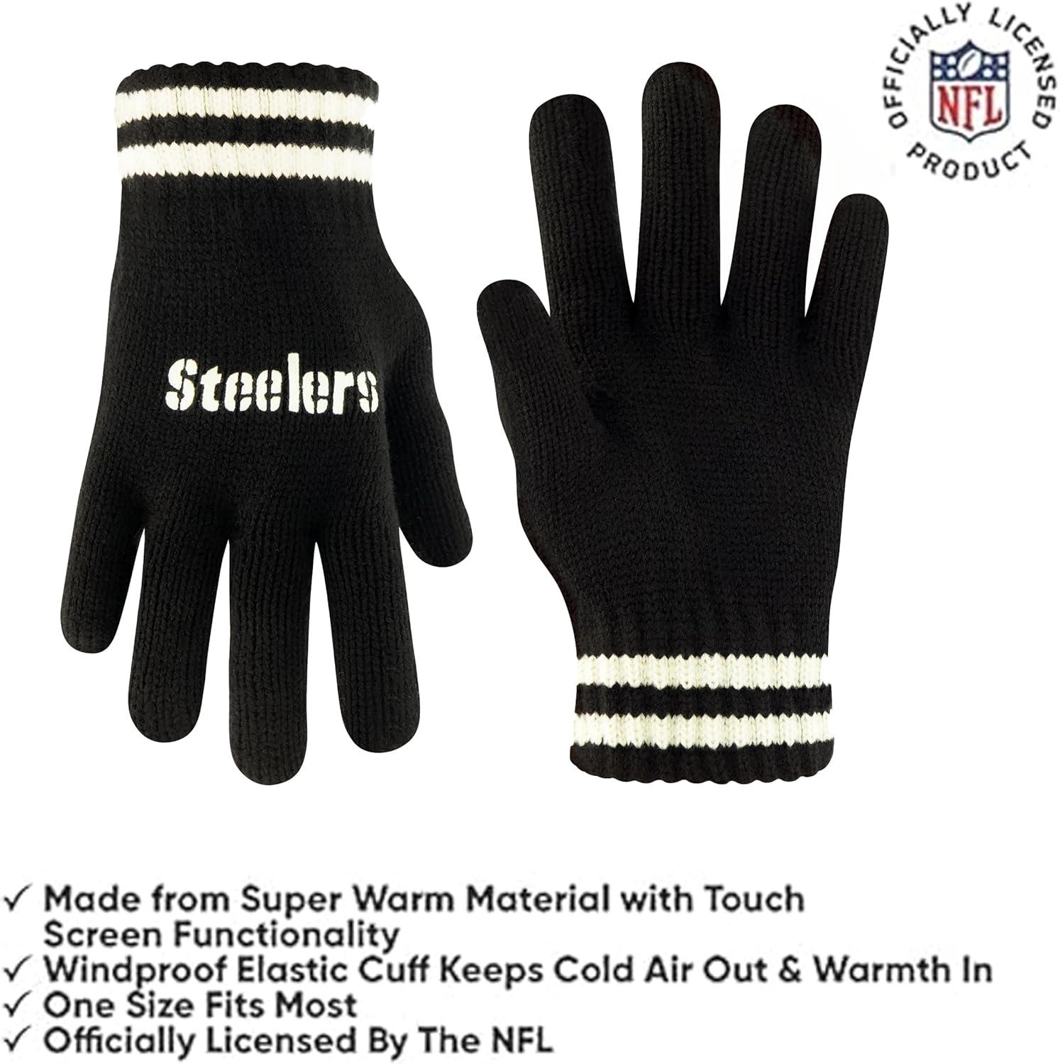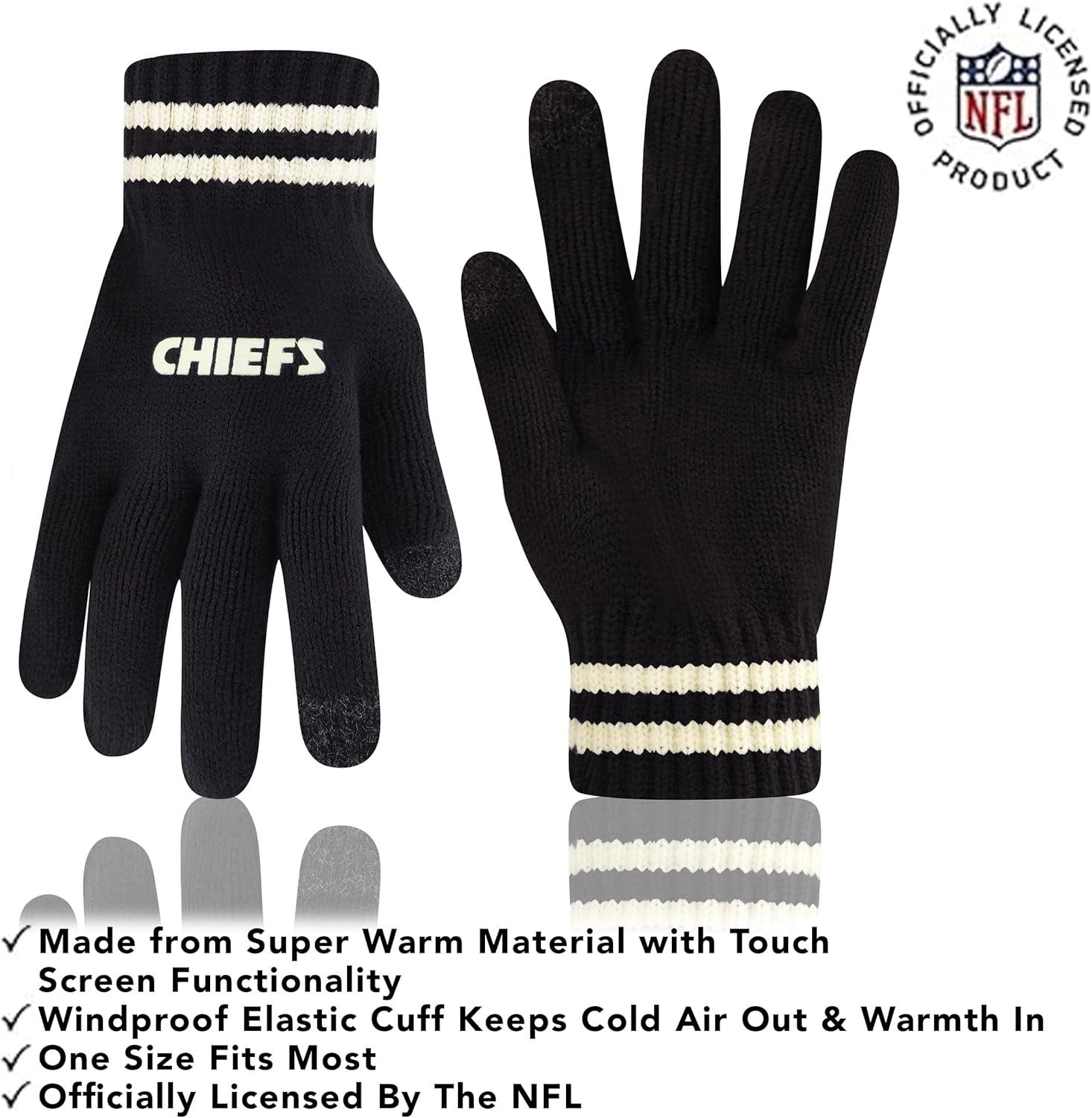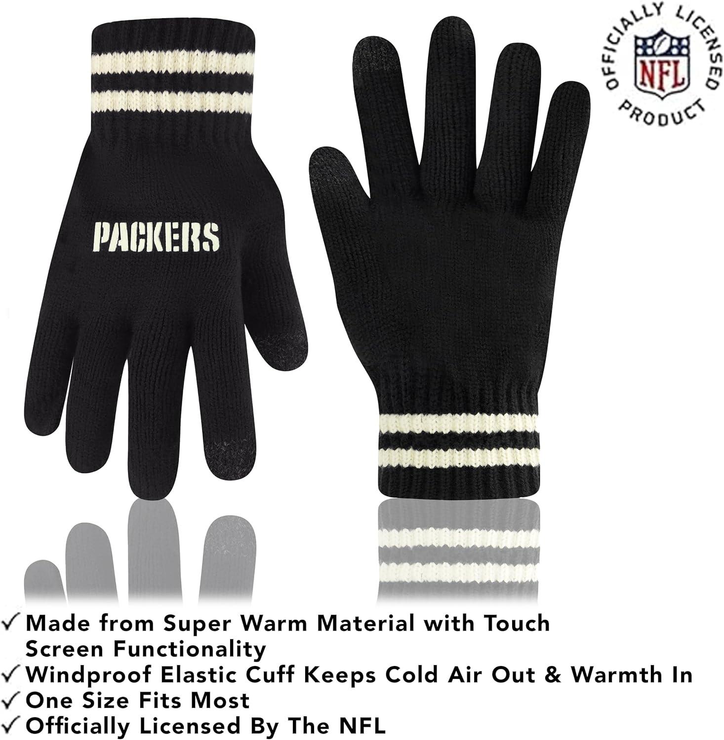 Ultra Game Youth NFL Official Super Soft Cable Knit Winter Beanie Knit Hat with Extra Warm Touch Screen Gloves(Black)