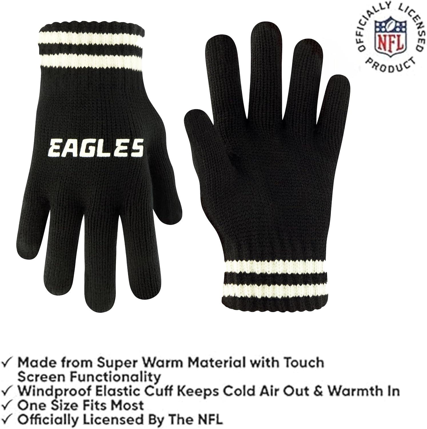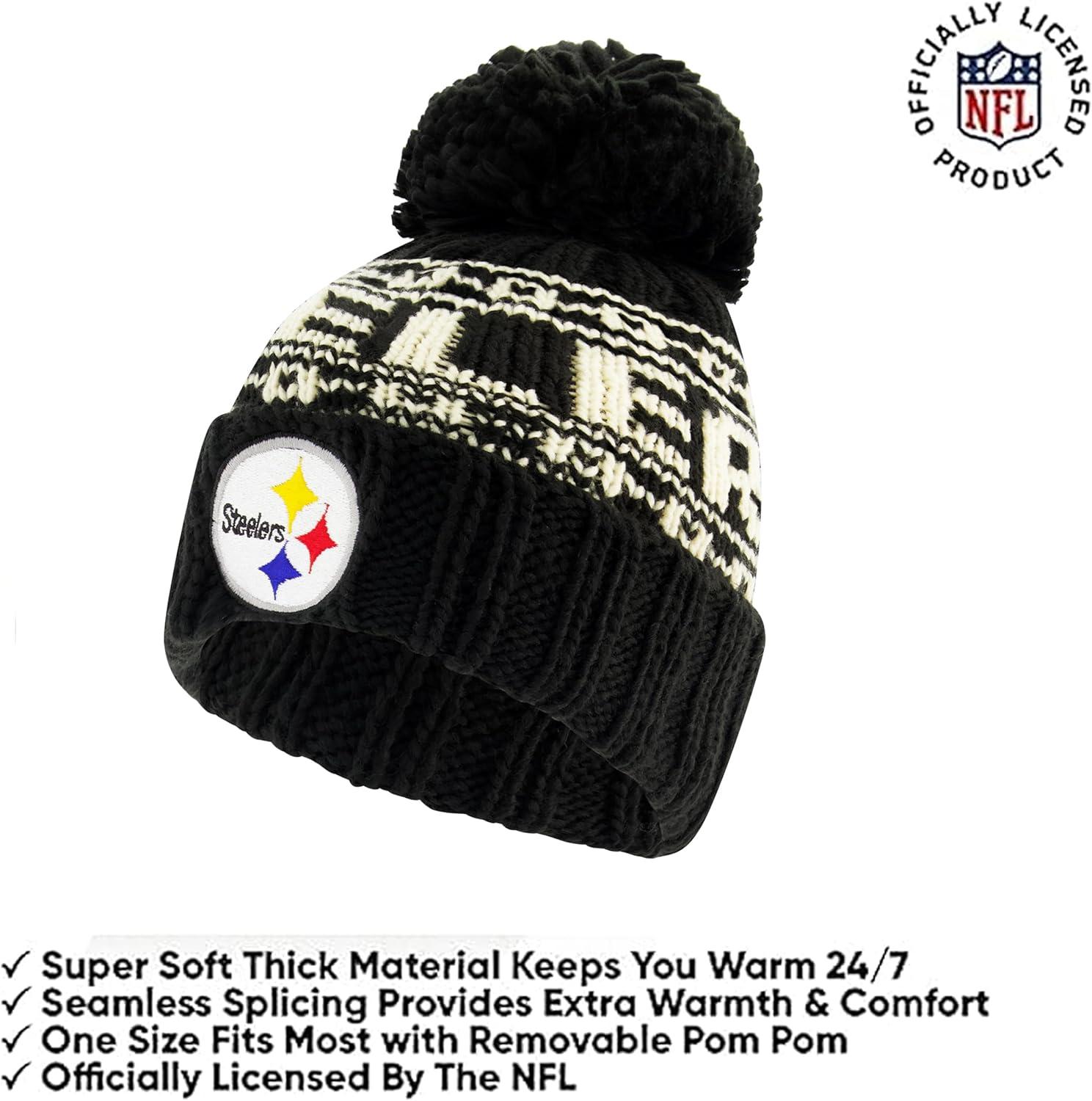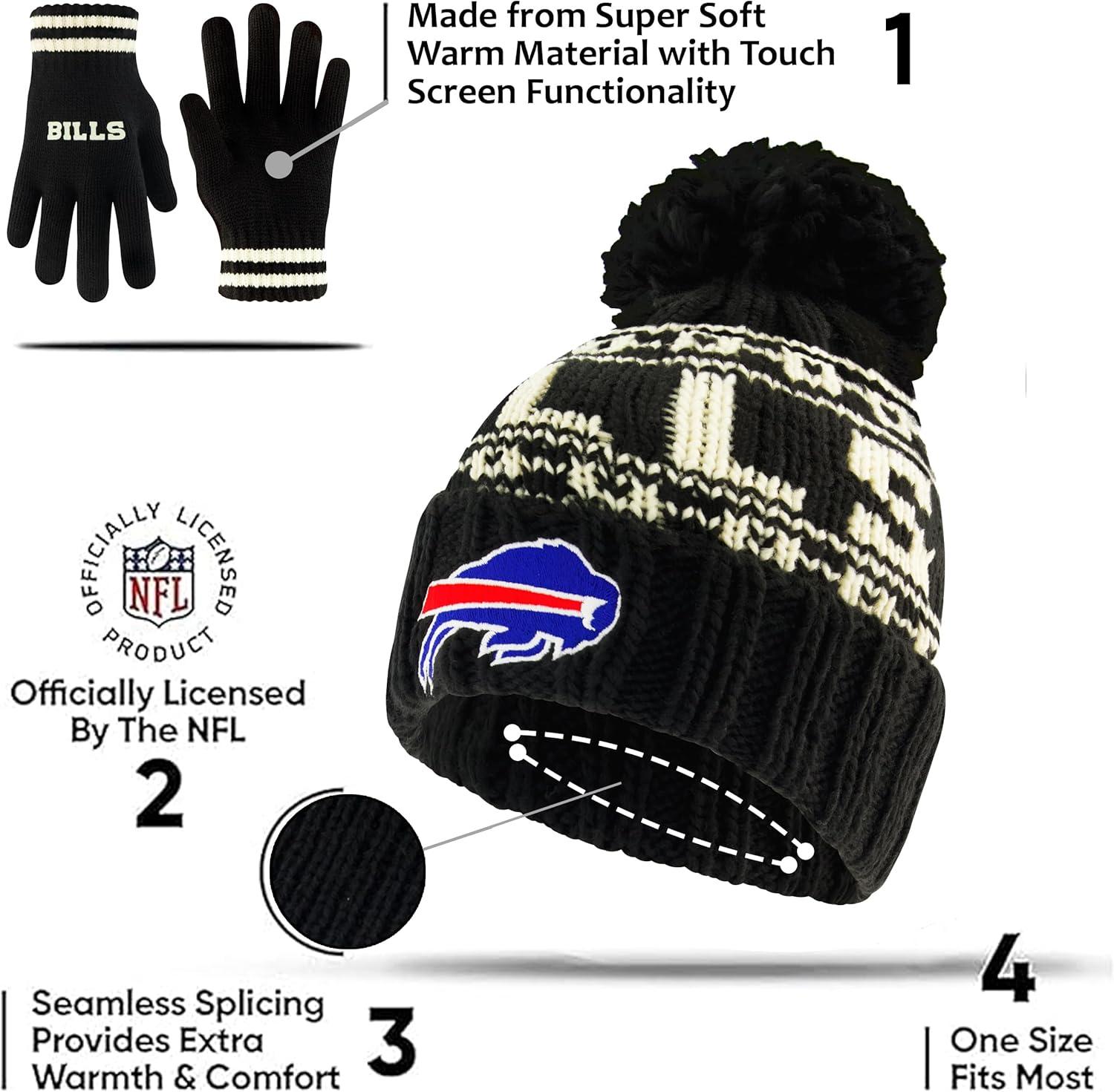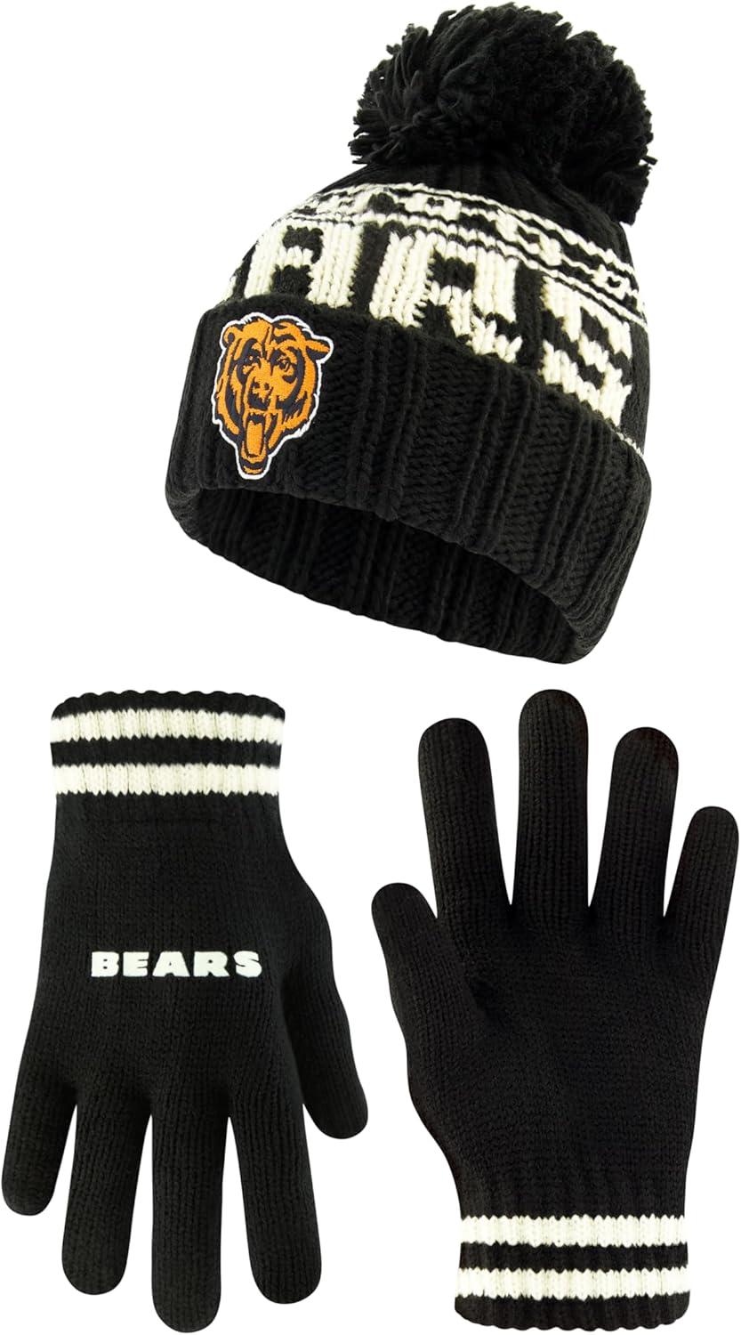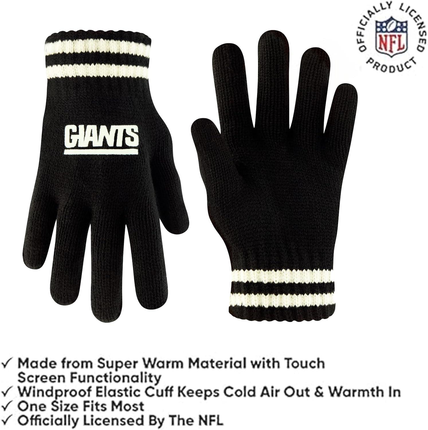 Ultra Game Youth NFL Official Super Soft Cable Knit Winter Beanie Knit Hat with Extra Warm Touch Screen Gloves(Black)