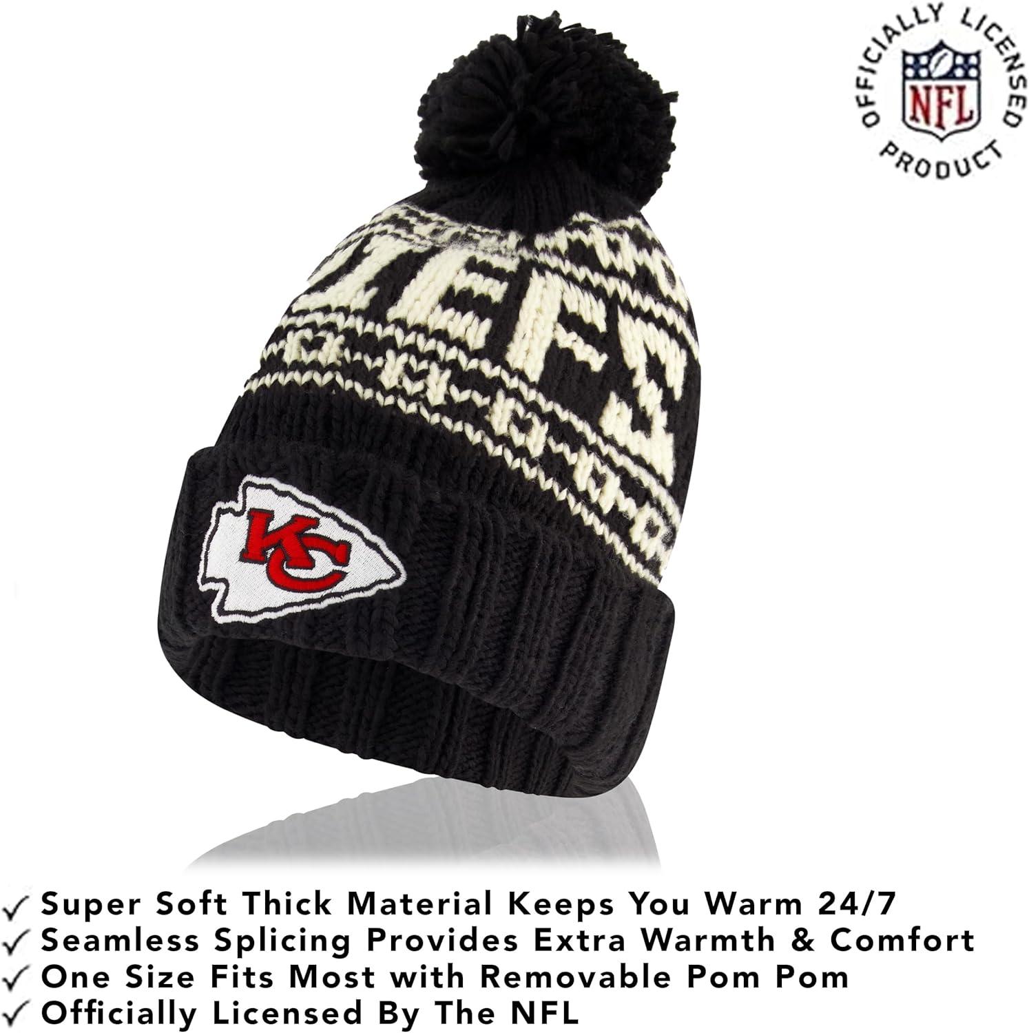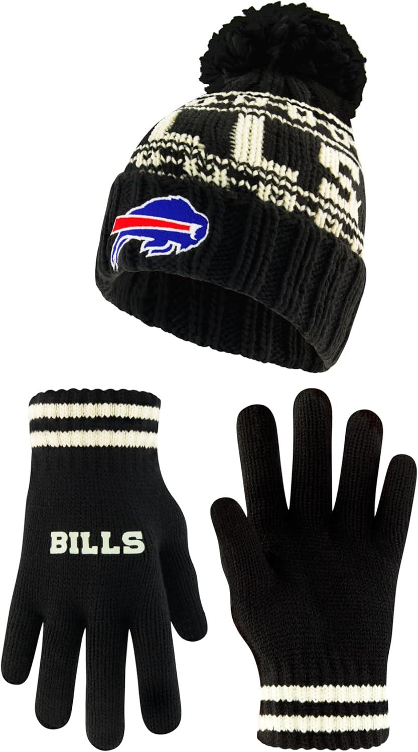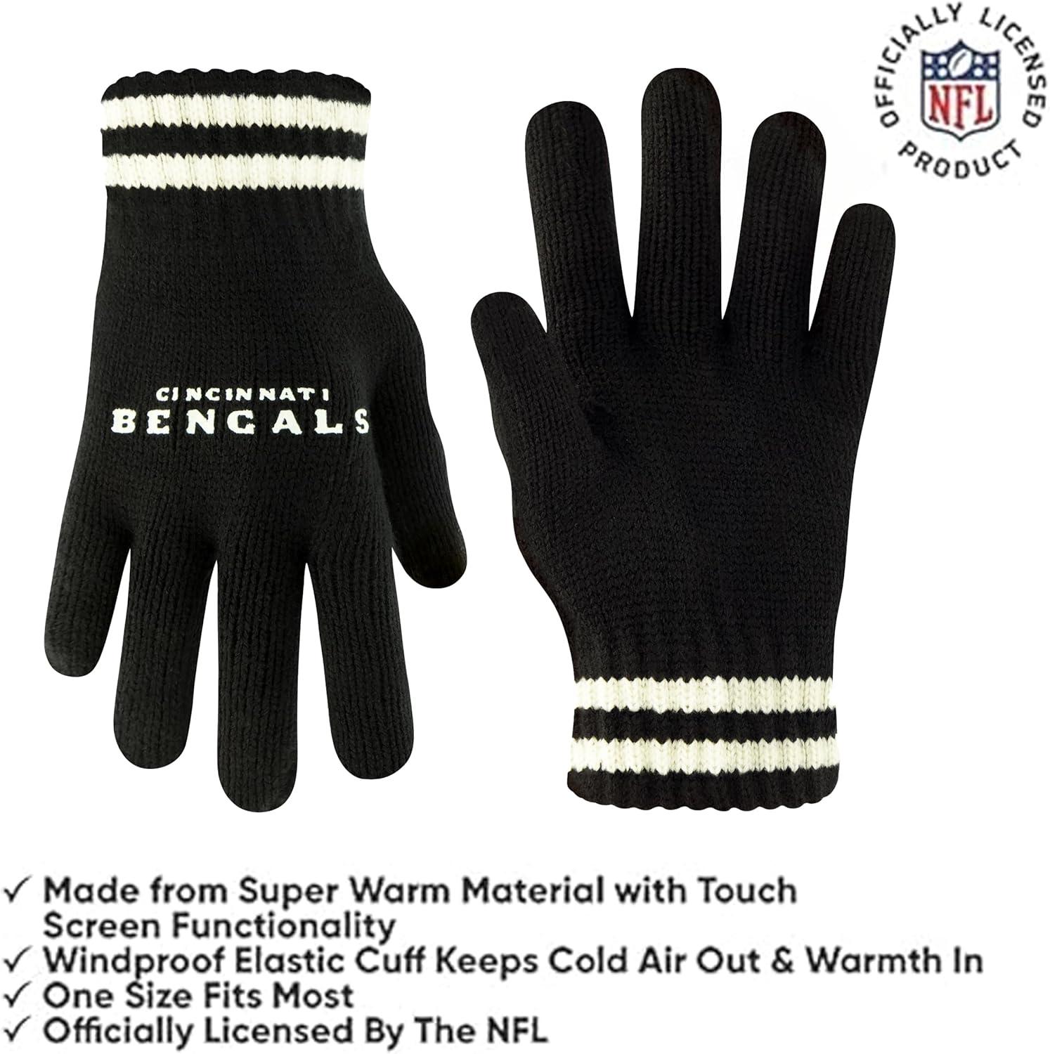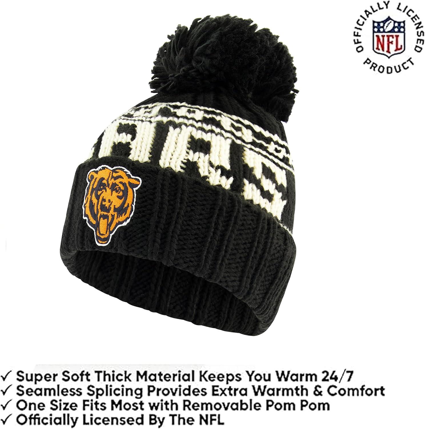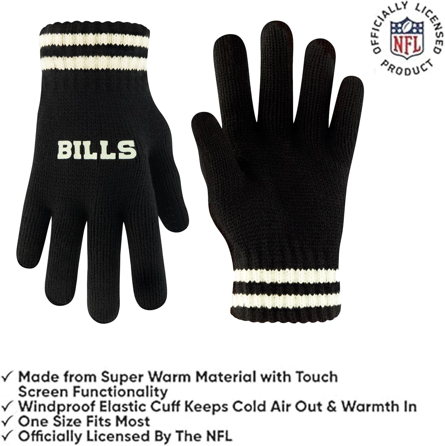 Ultra Game Youth NFL Official Super Soft Cable Knit Winter Beanie Knit Hat with Extra Warm Touch Screen Gloves(Black)
