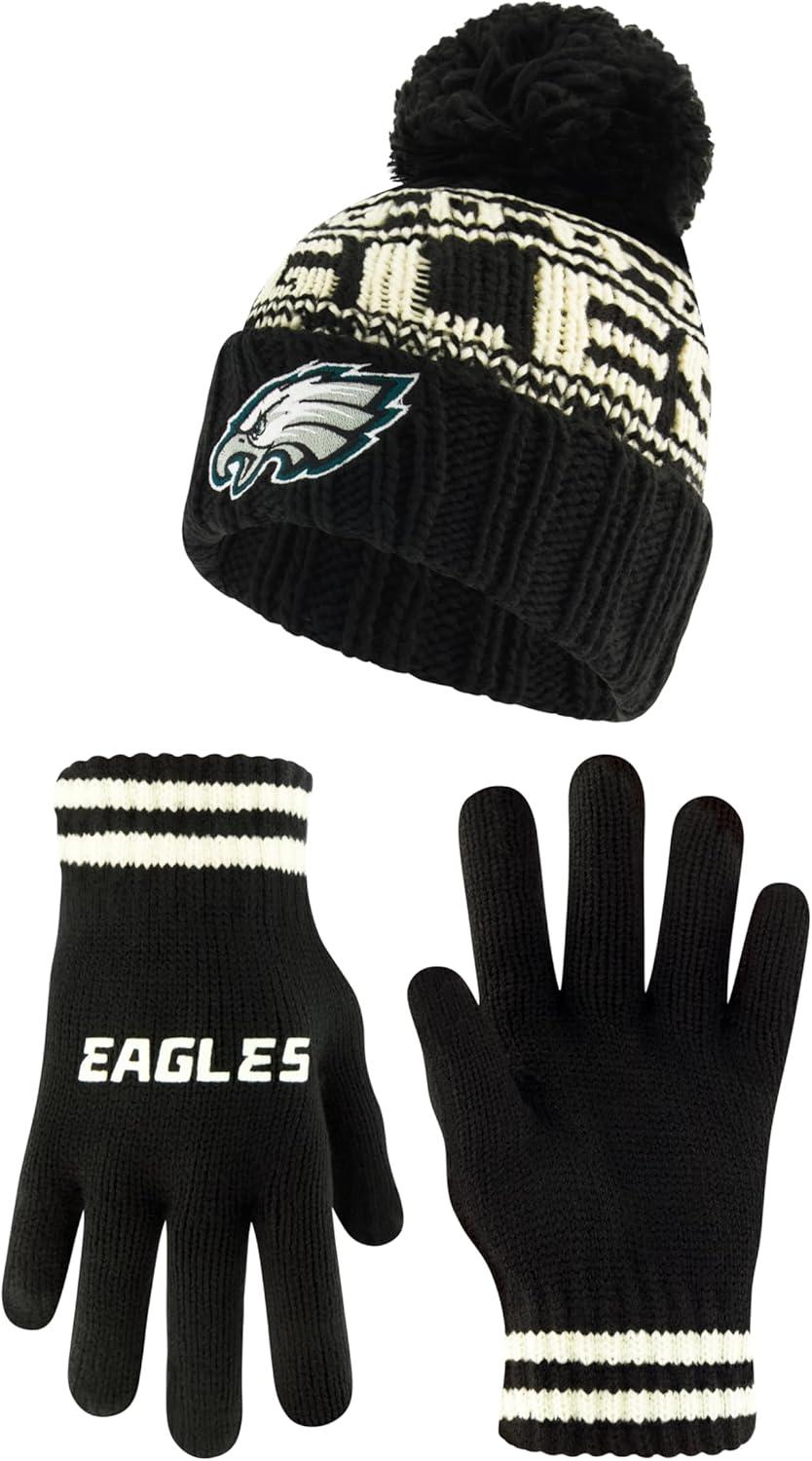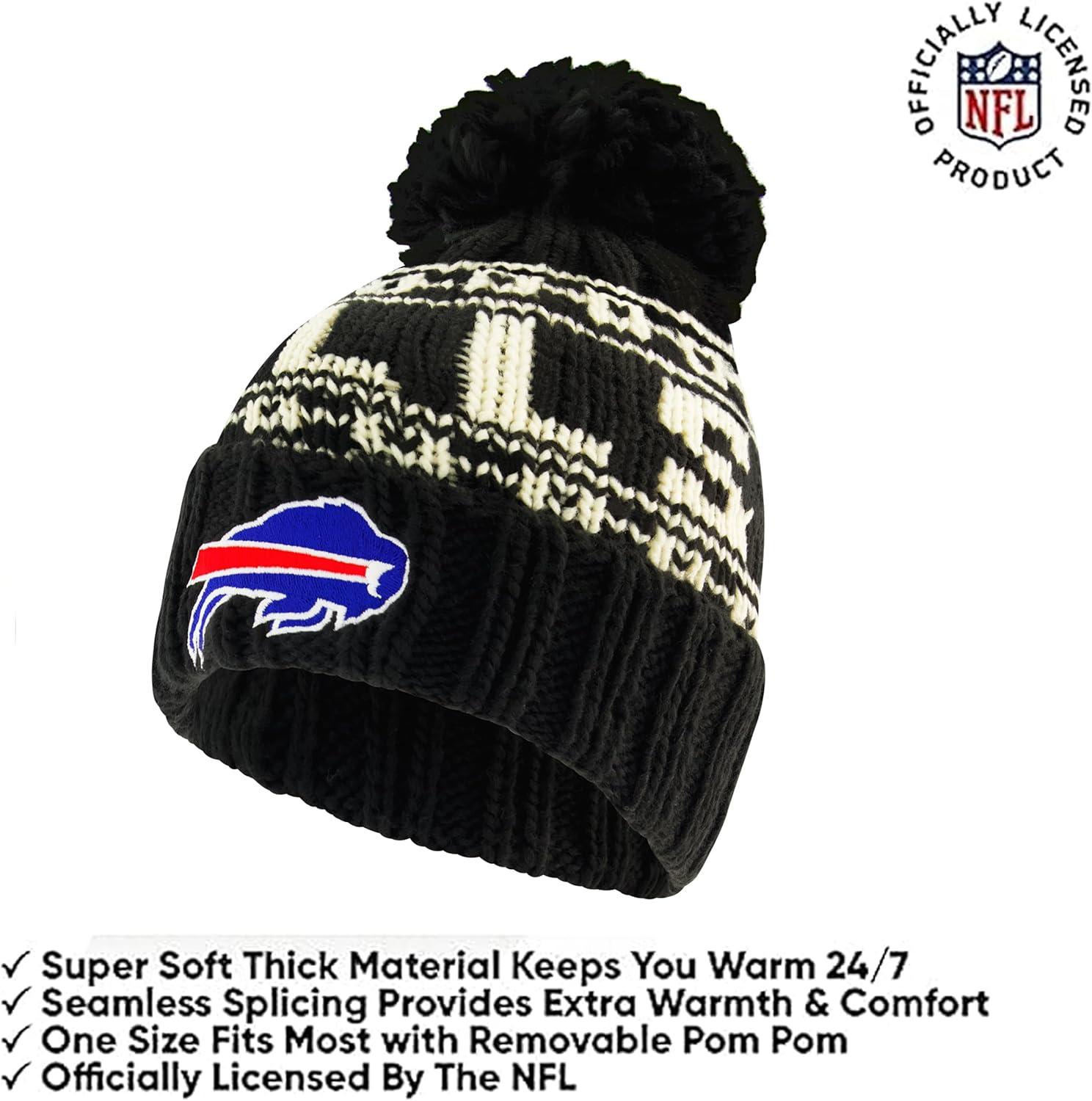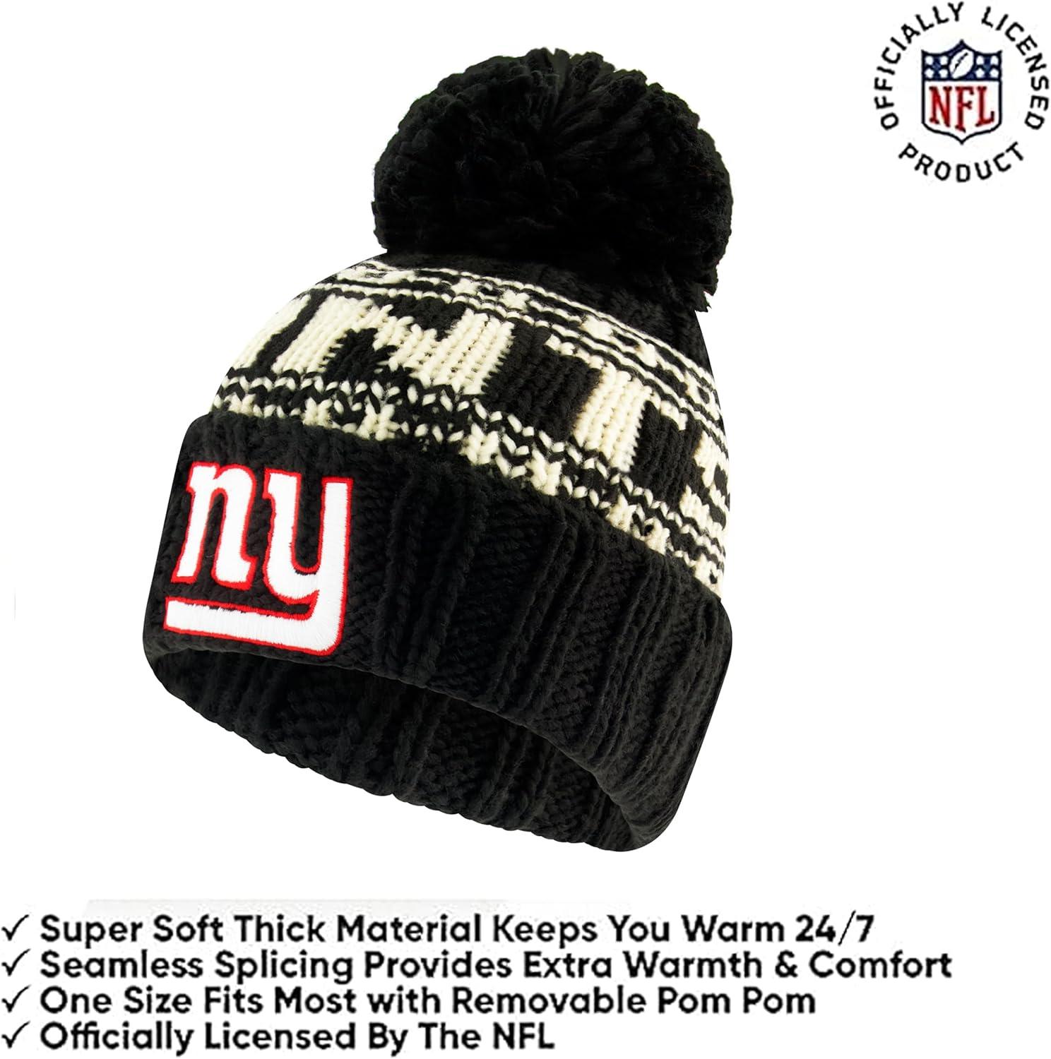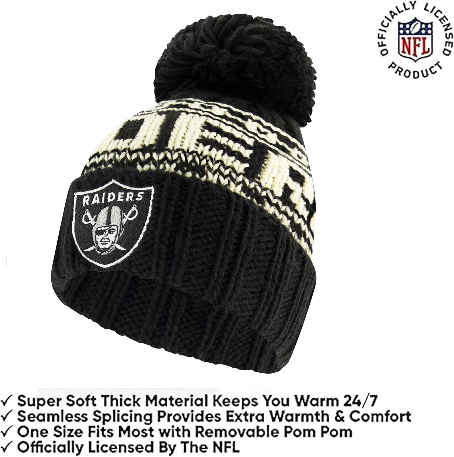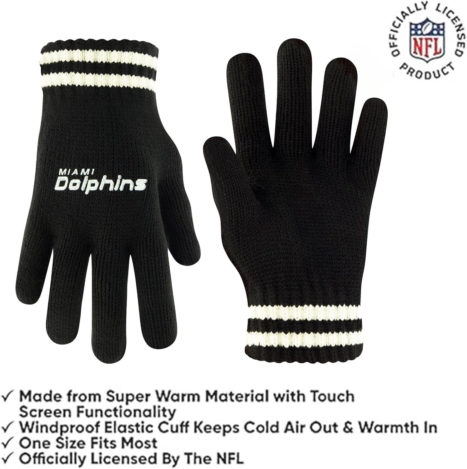 Ultra Game Youth NFL Official Super Soft Cable Knit Winter Beanie Knit Hat with Extra Warm Touch Screen Gloves(Black)