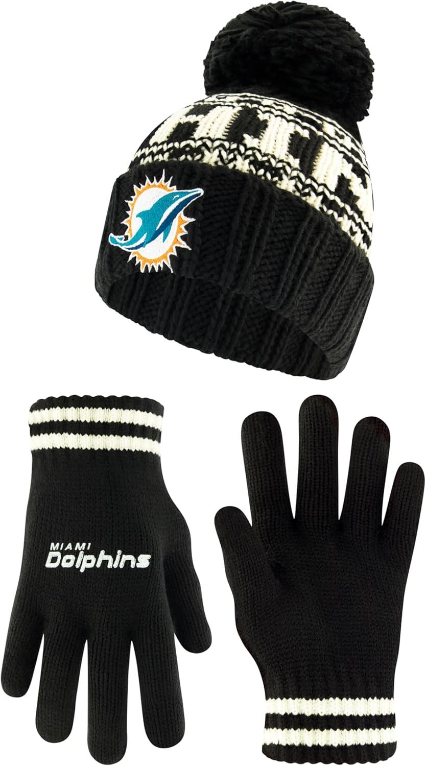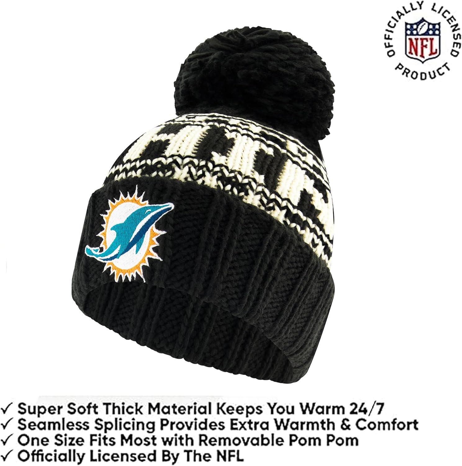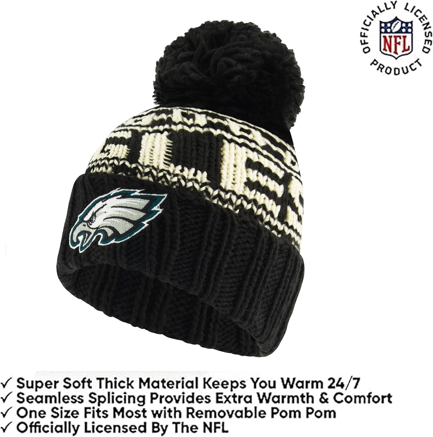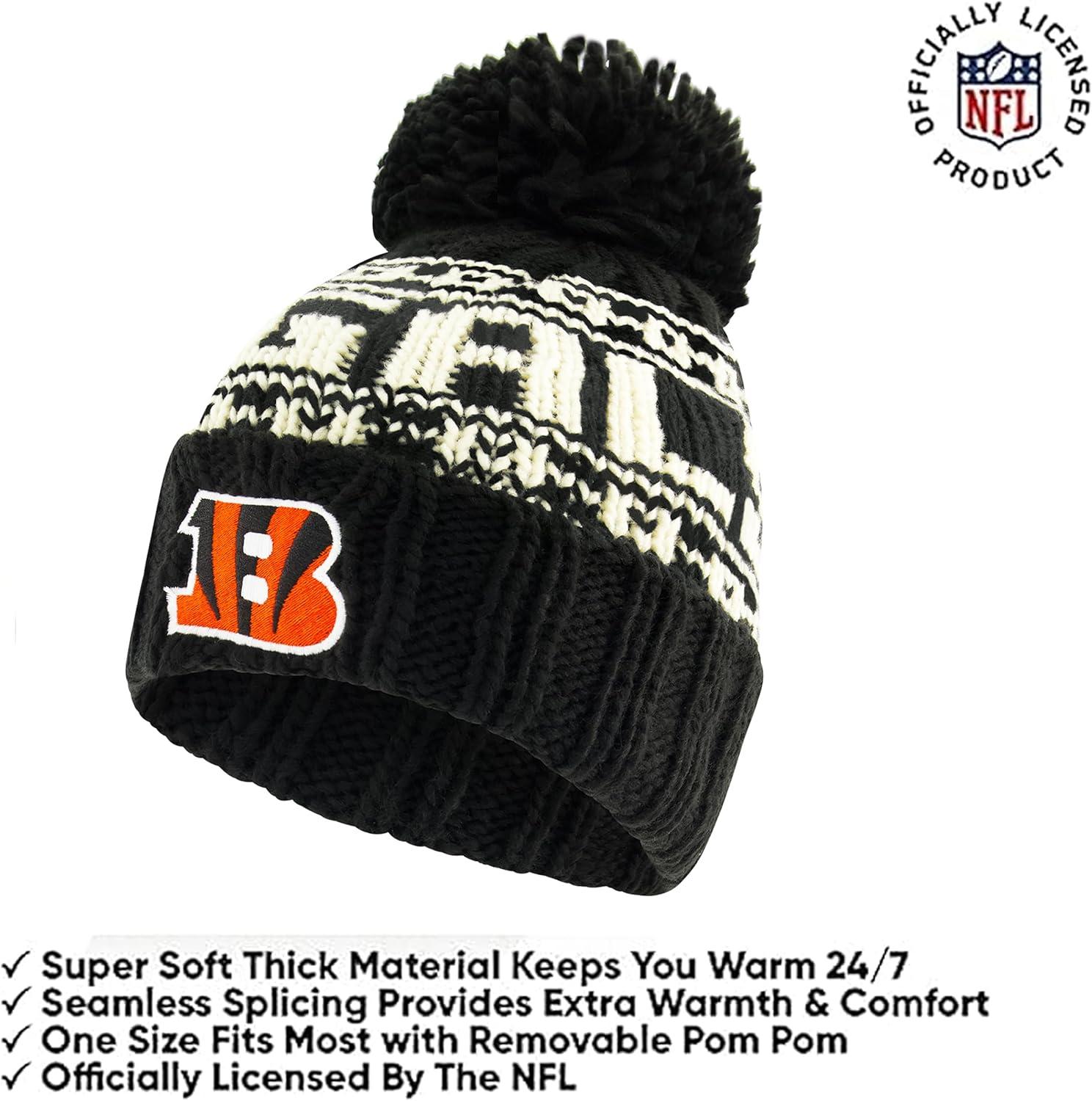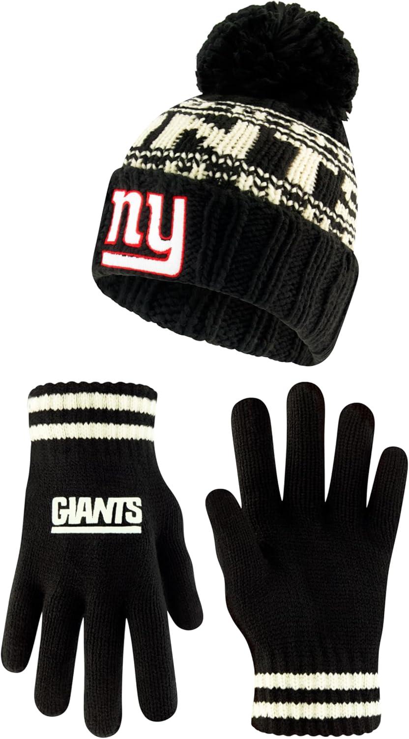 Ultra Game Youth NFL Official Super Soft Cable Knit Winter Beanie Knit Hat with Extra Warm Touch Screen Gloves(Black)