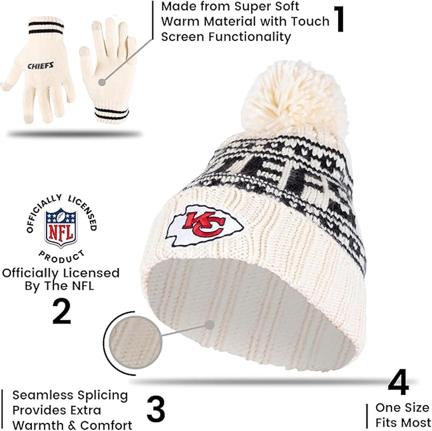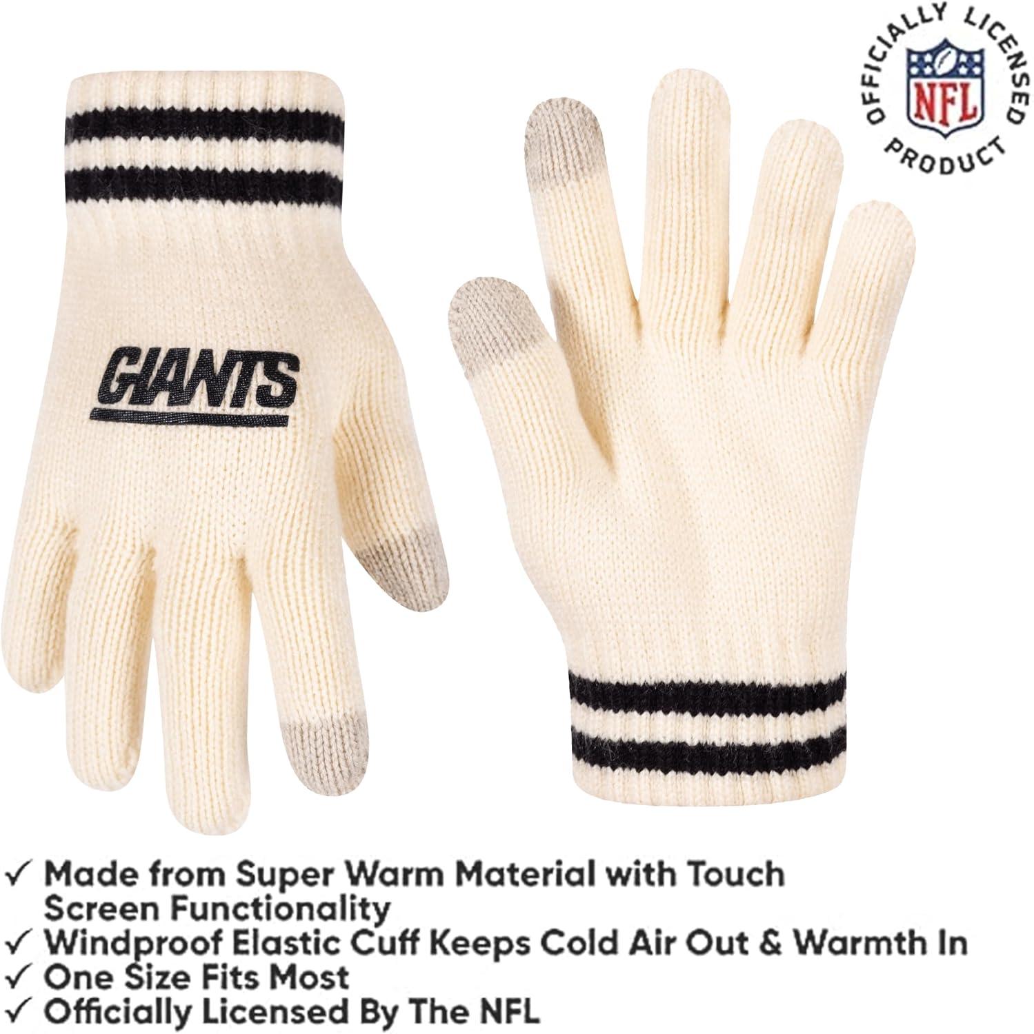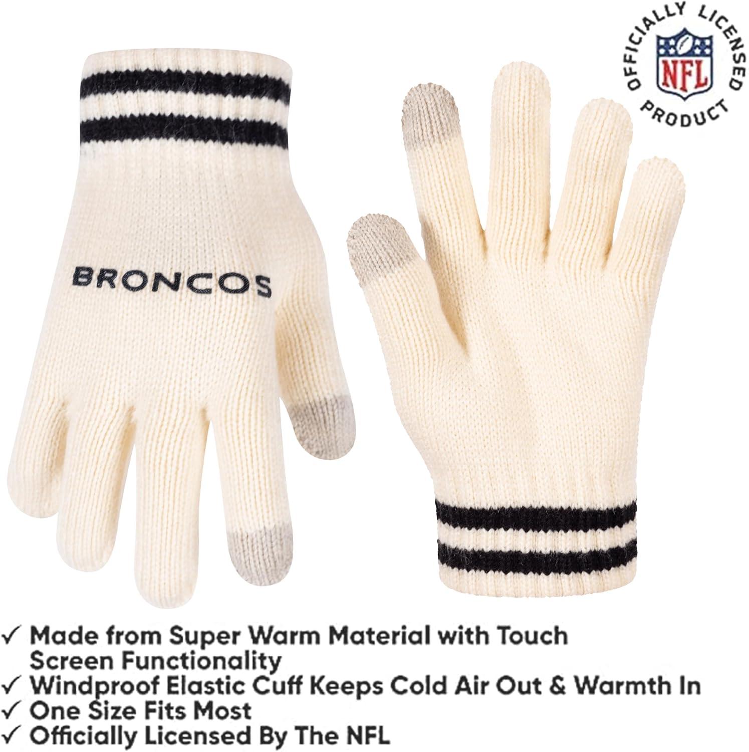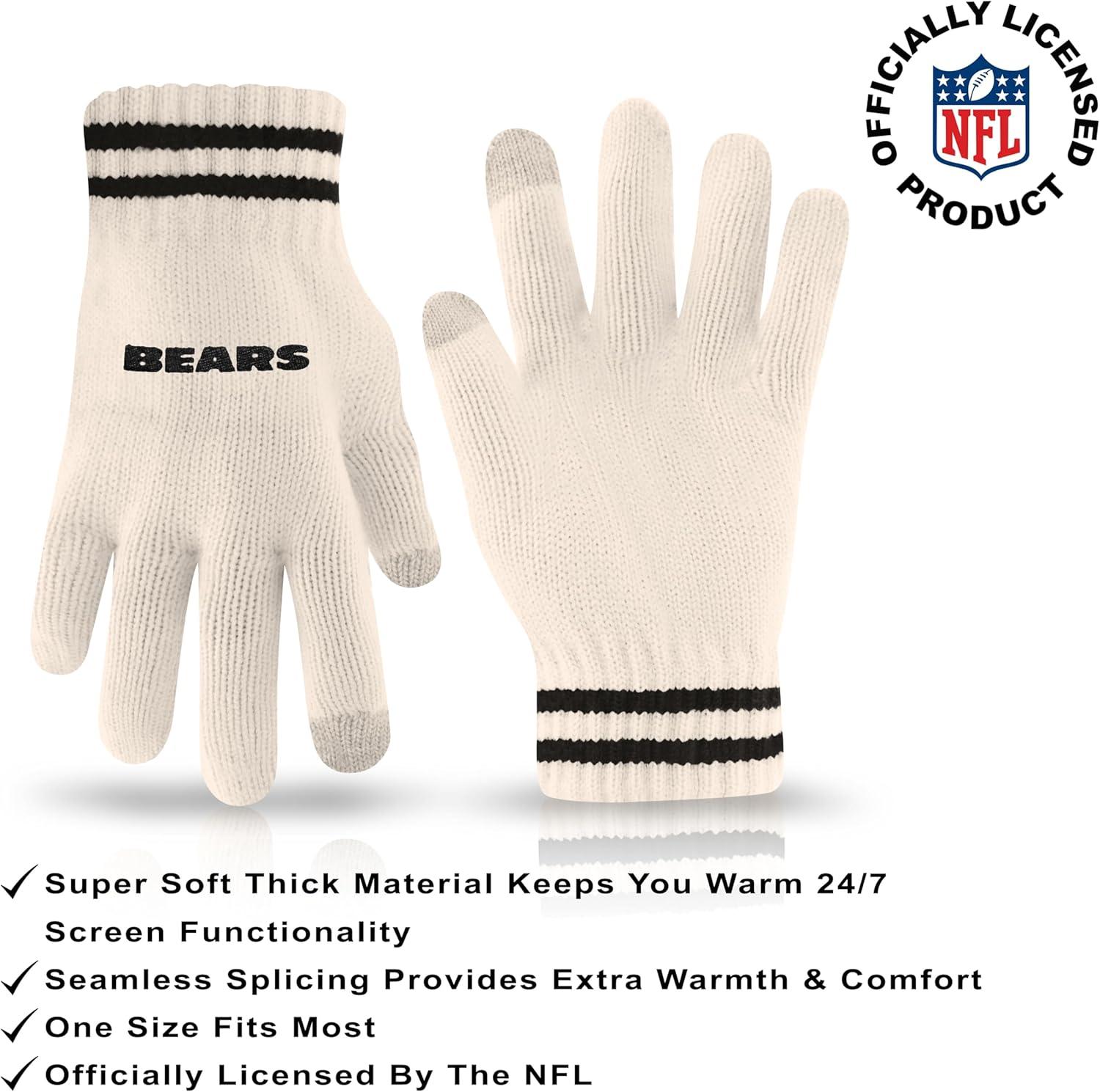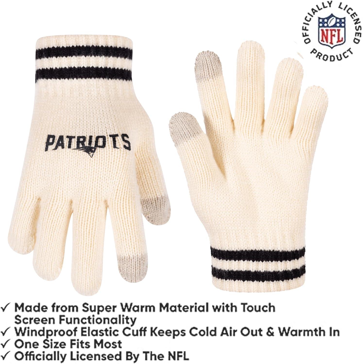 Ultra Game Youth NFL Official Super Soft Cable Knit Winter Beanie Knit Hat with Extra Warm Touch Screen Gloves(Natural)