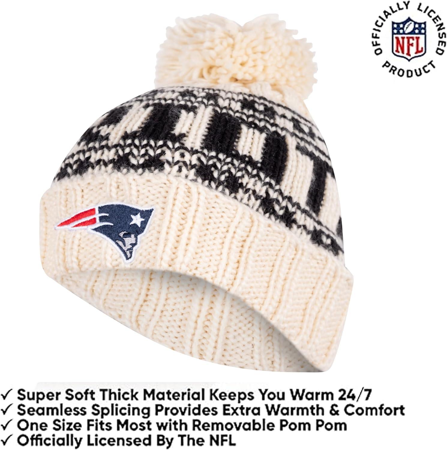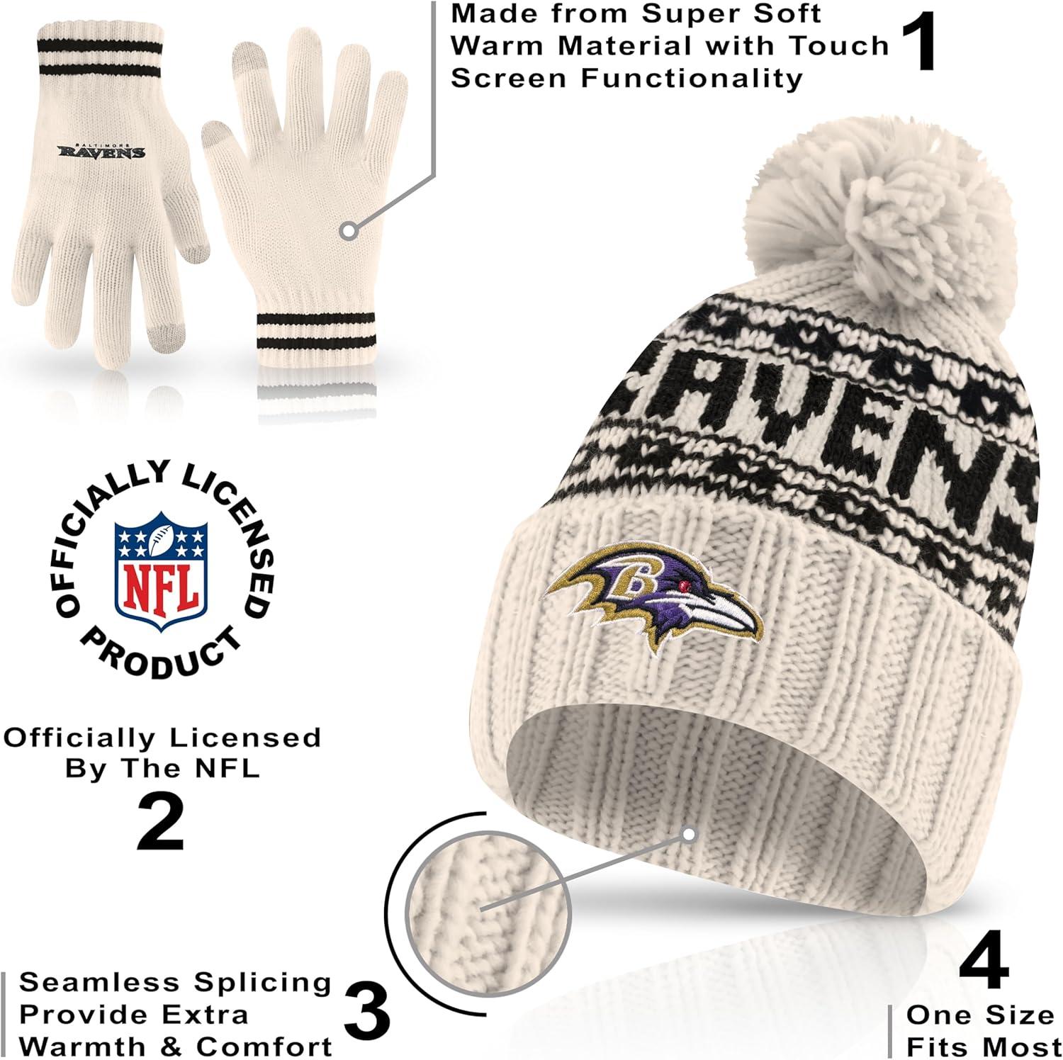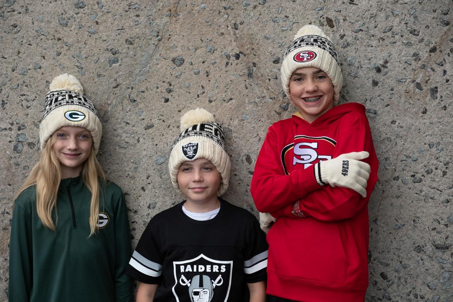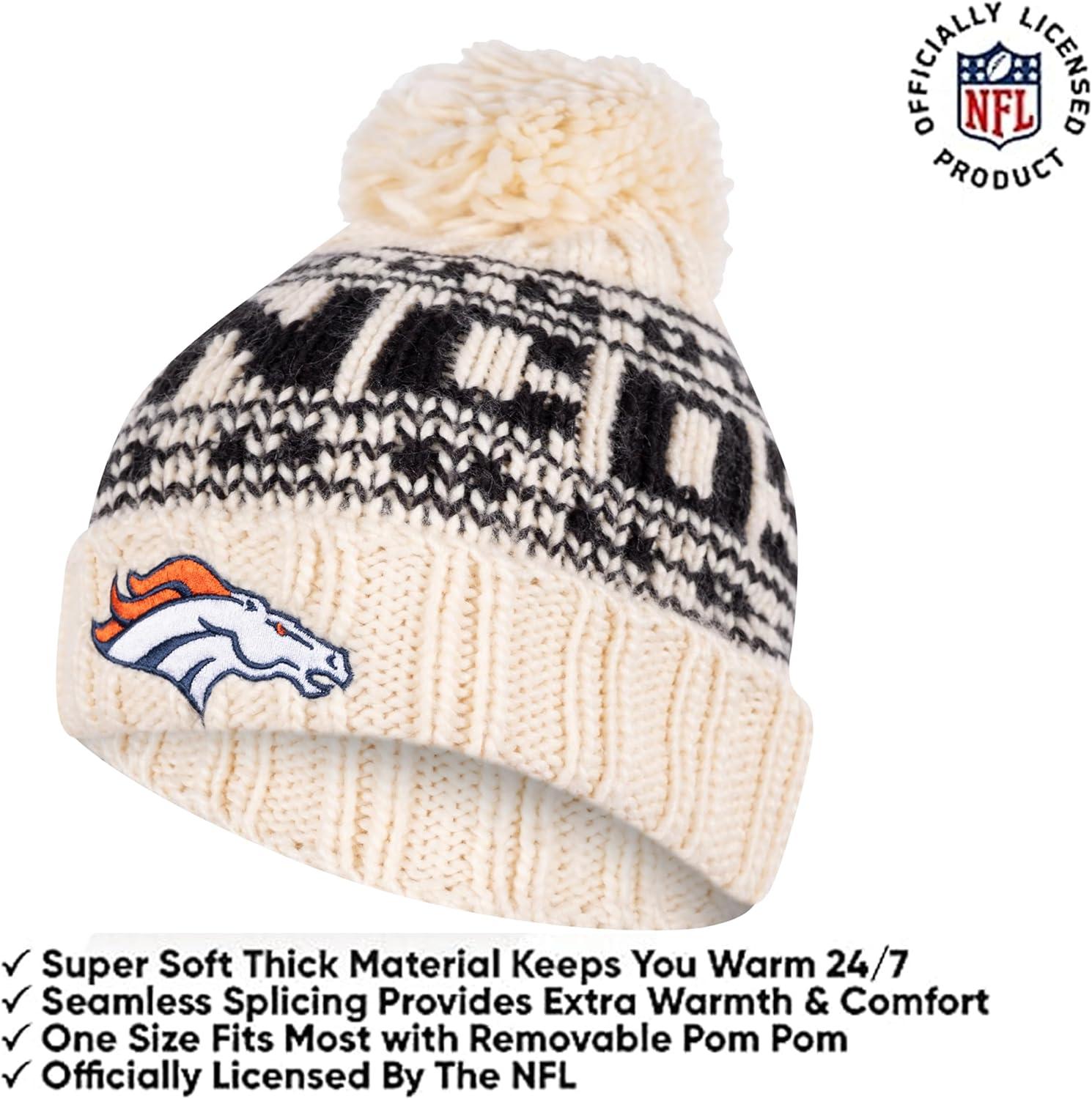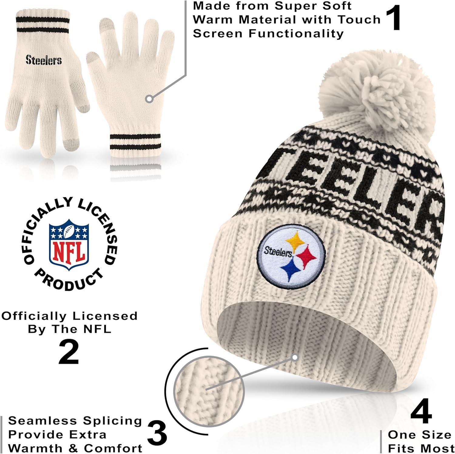 Ultra Game Youth NFL Official Super Soft Cable Knit Winter Beanie Knit Hat with Extra Warm Touch Screen Gloves(Natural)
