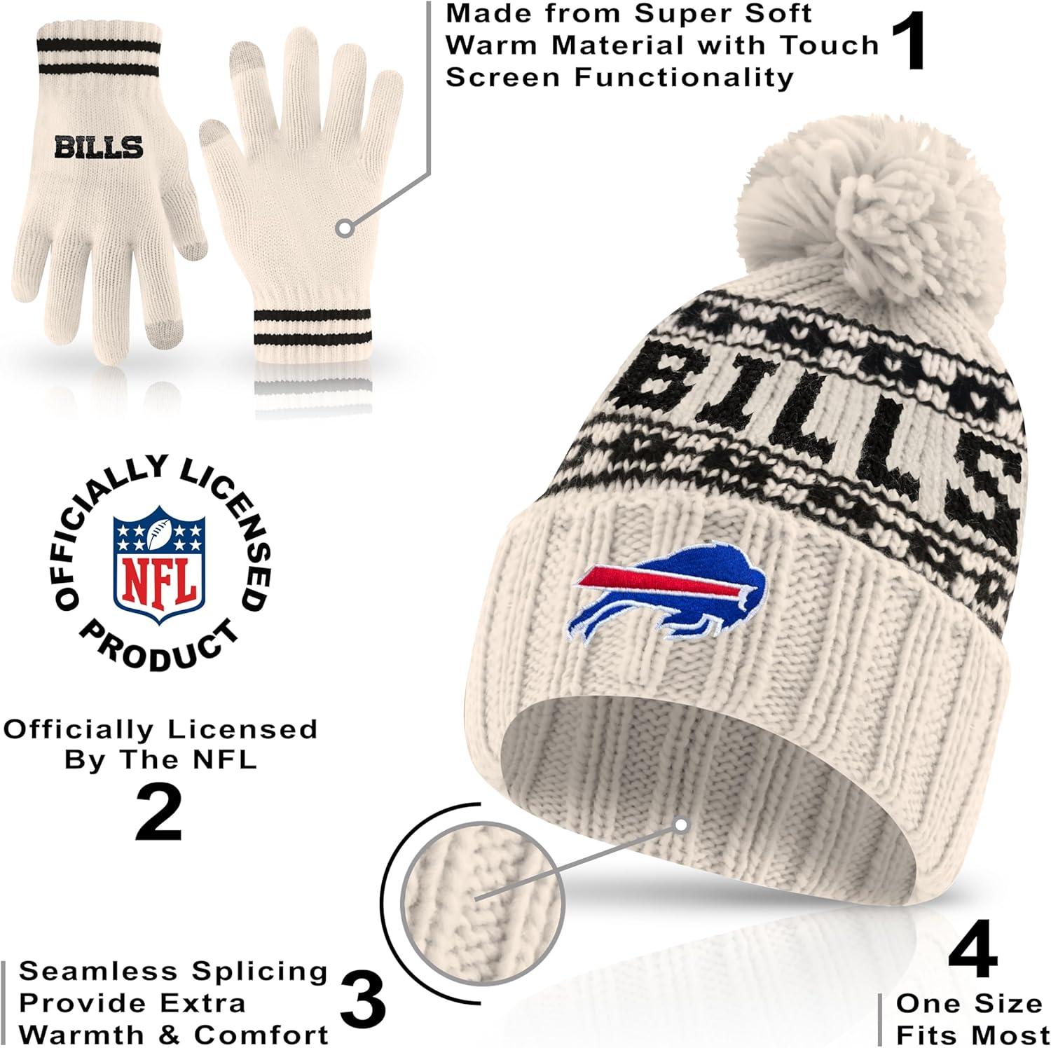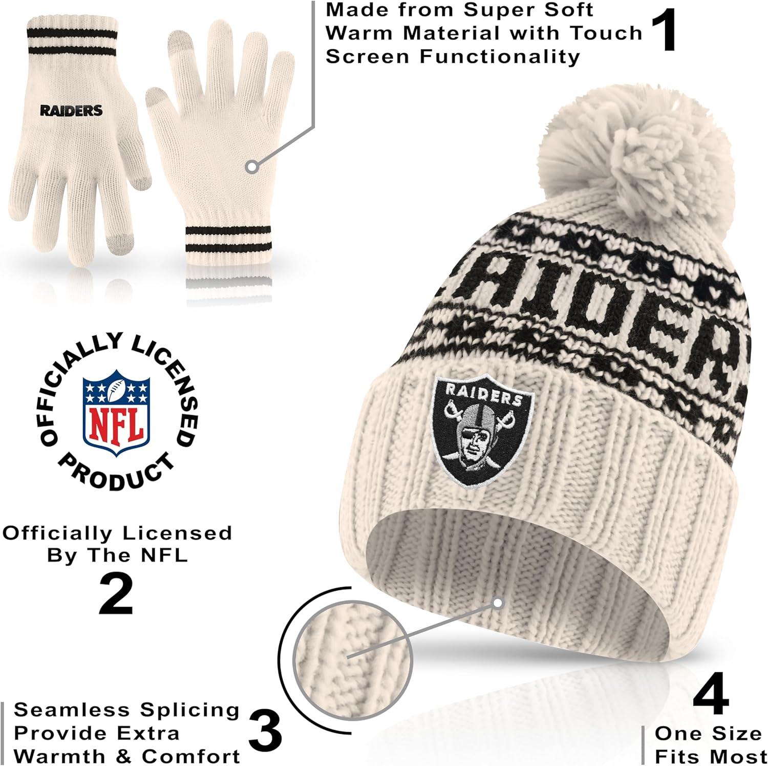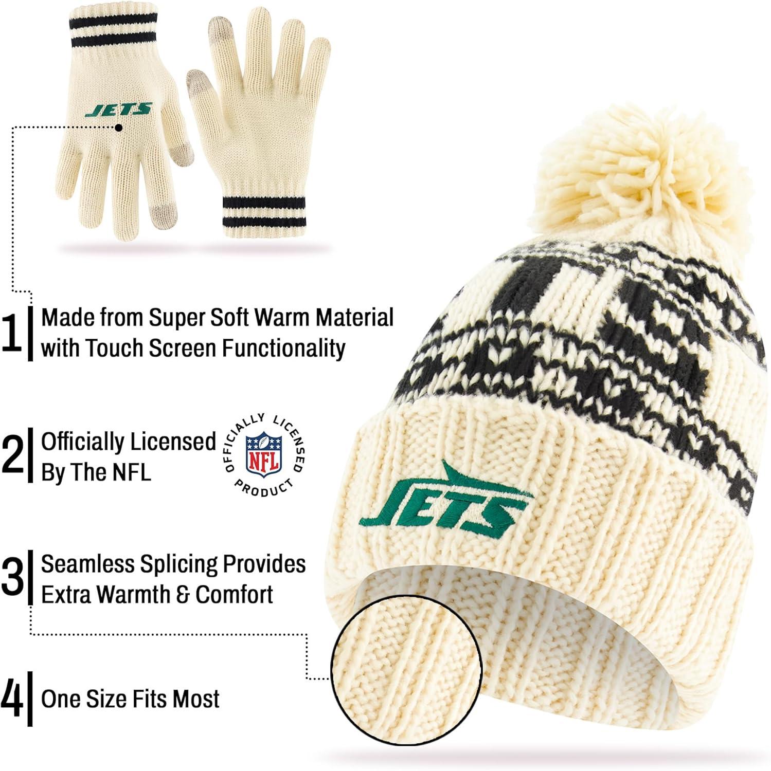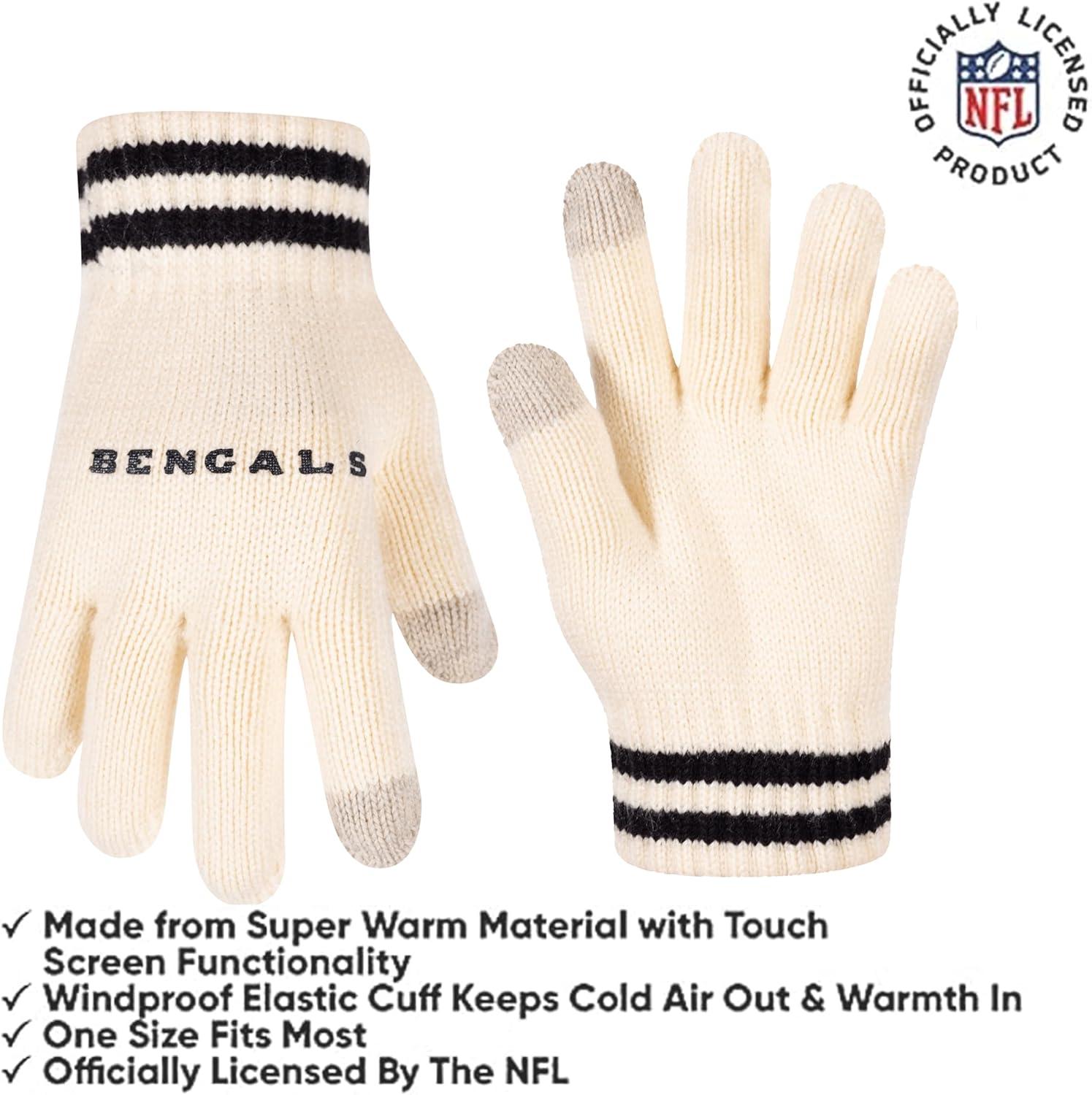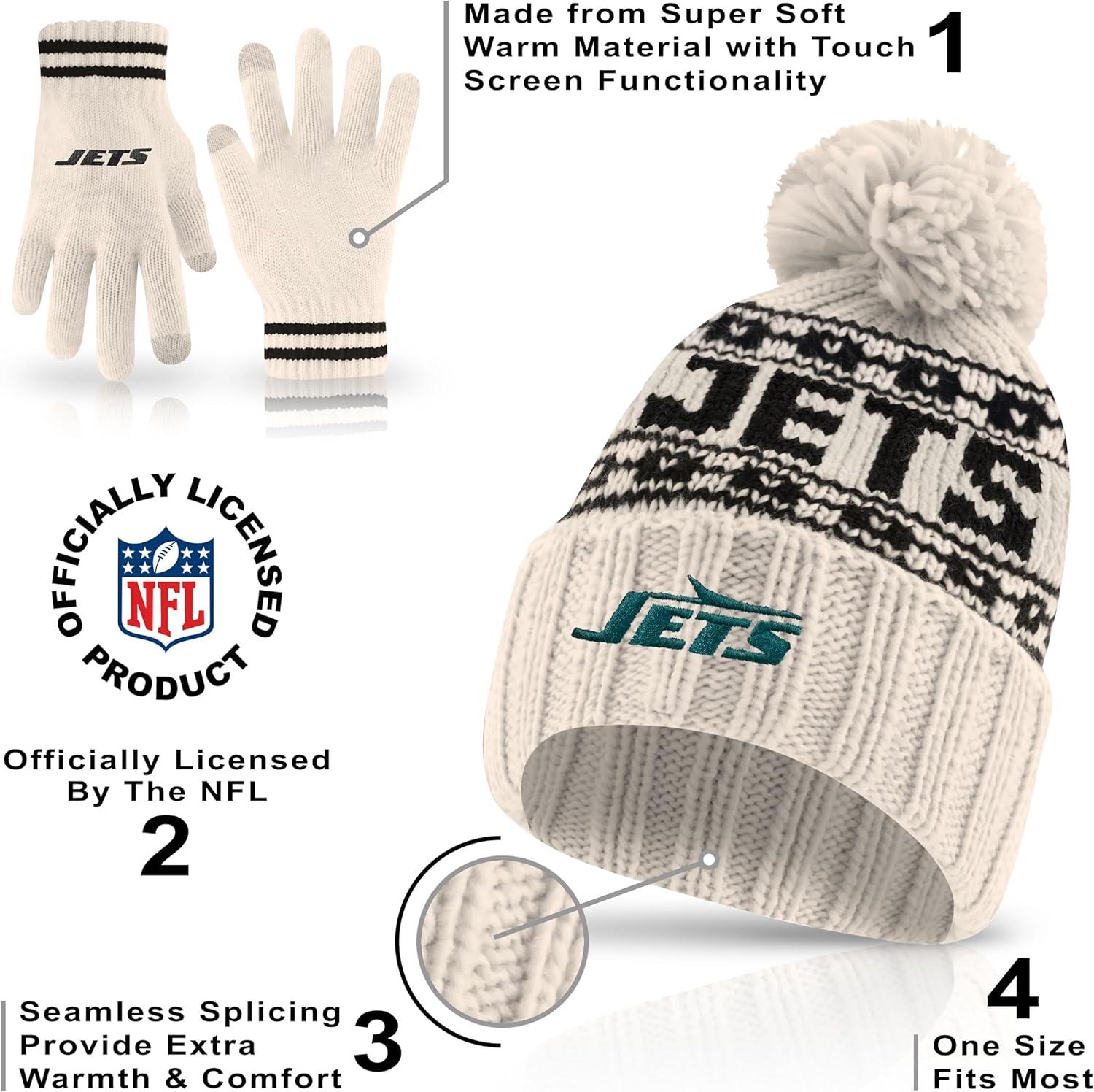 Ultra Game Youth NFL Official Super Soft Cable Knit Winter Beanie Knit Hat with Extra Warm Touch Screen Gloves(Natural)
