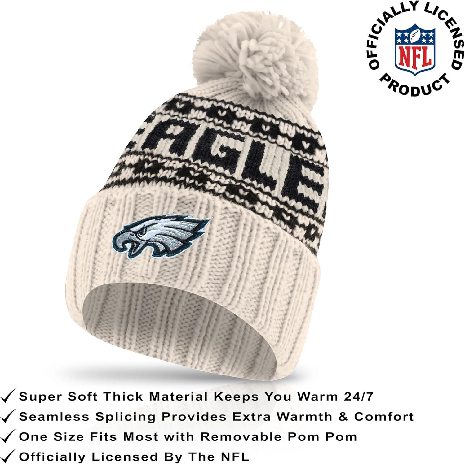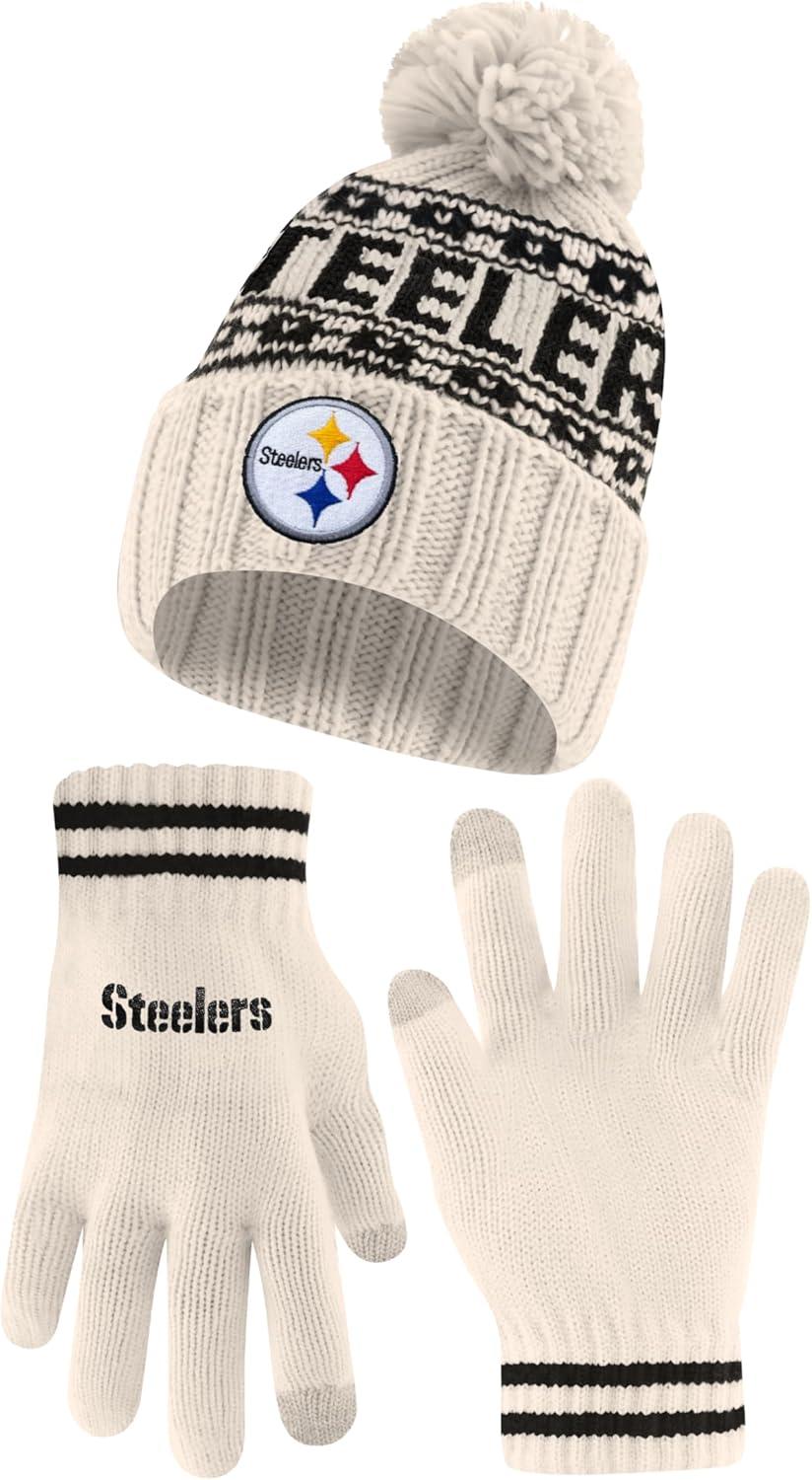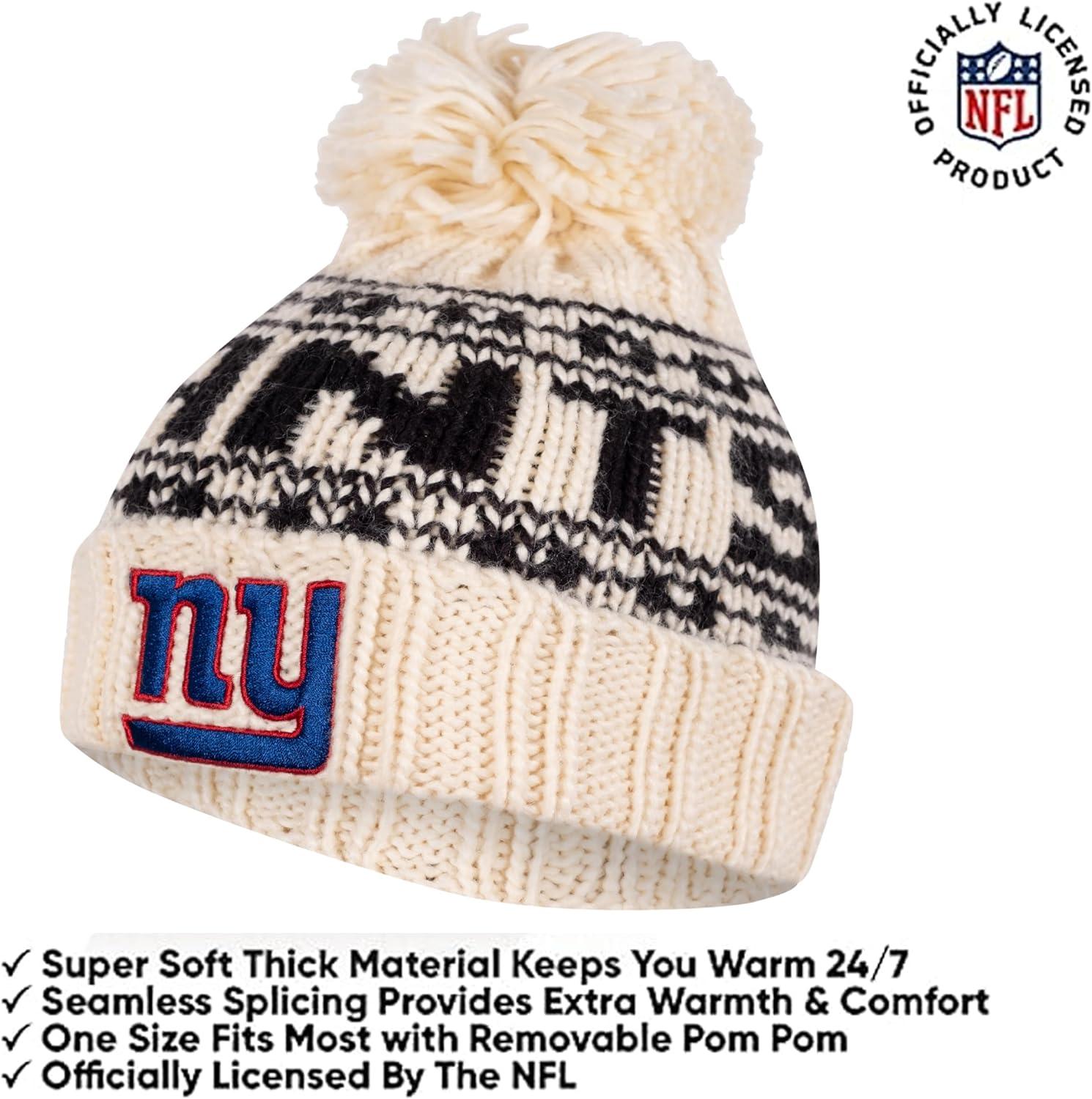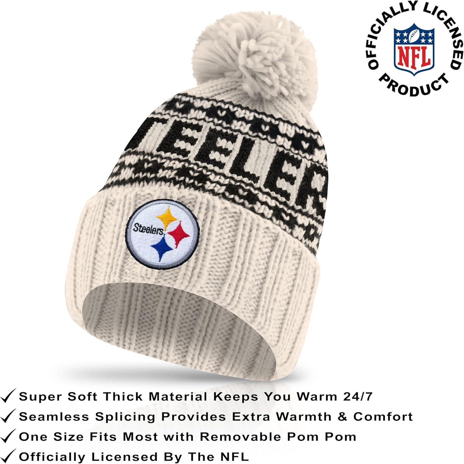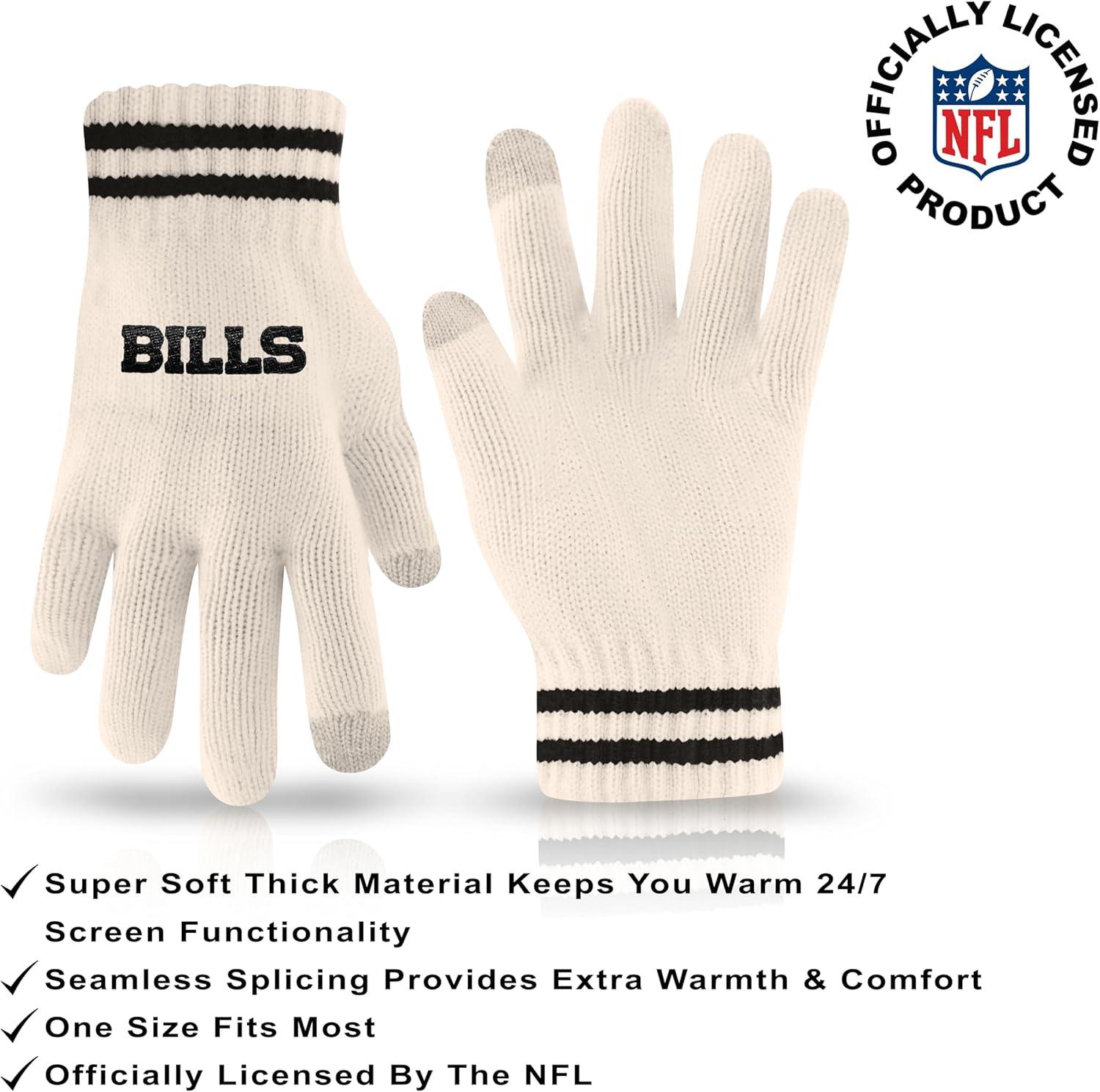 Ultra Game Youth NFL Official Super Soft Cable Knit Winter Beanie Knit Hat with Extra Warm Touch Screen Gloves(Natural)