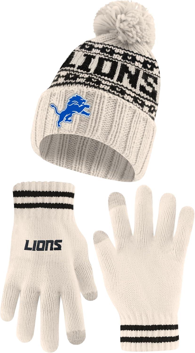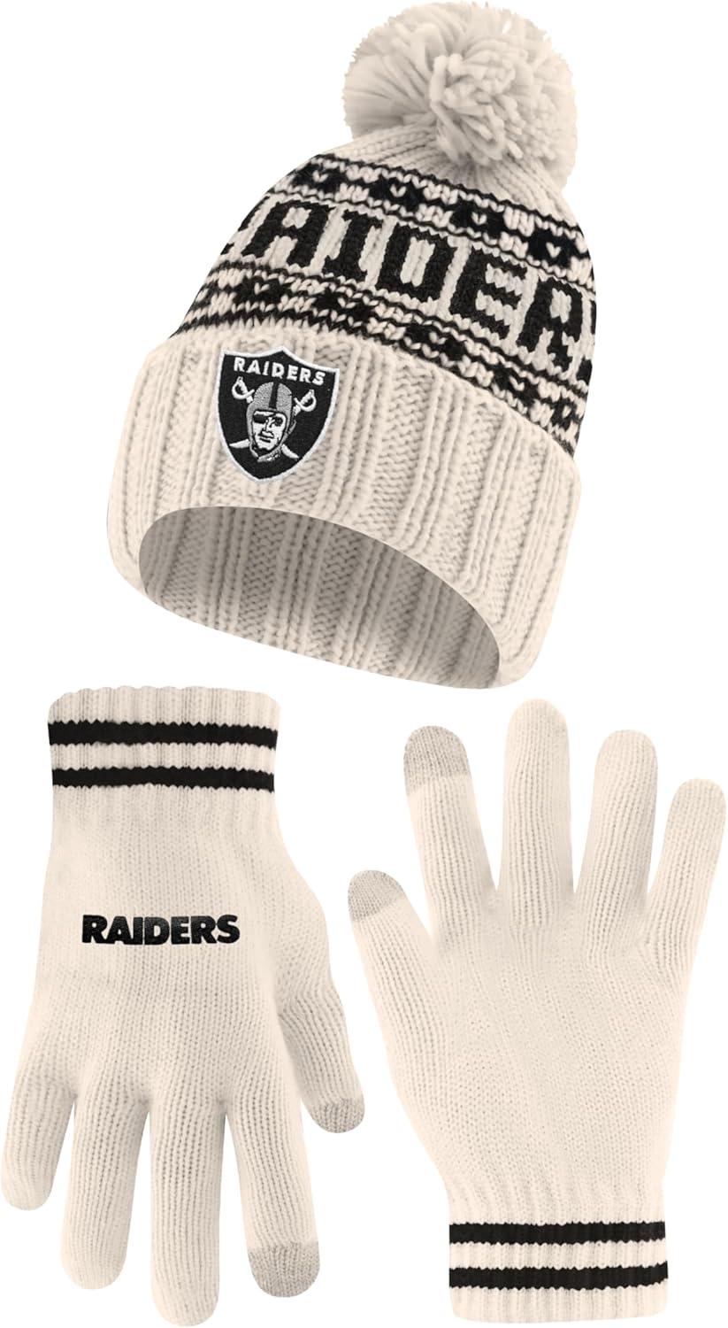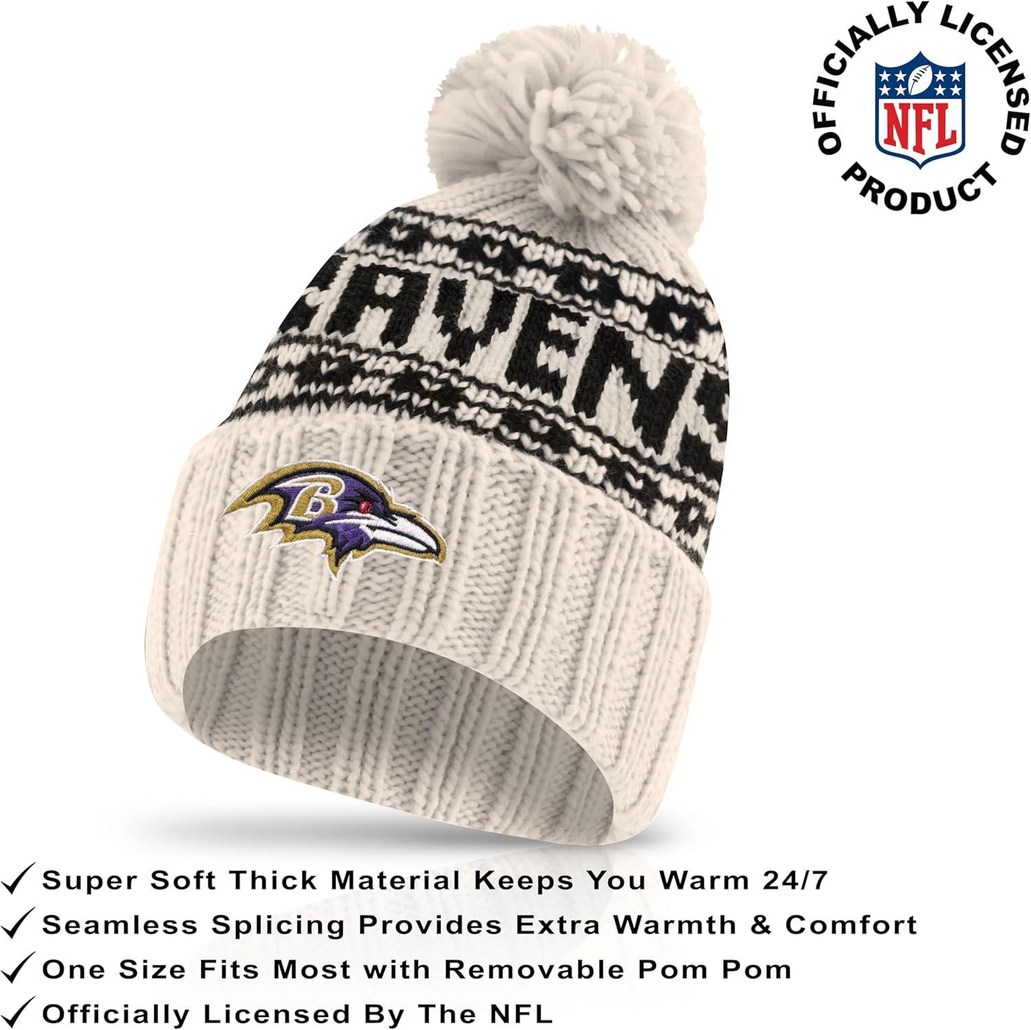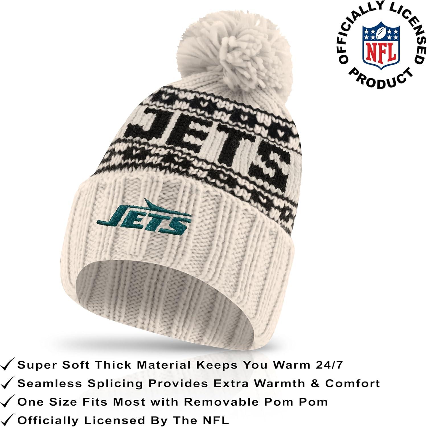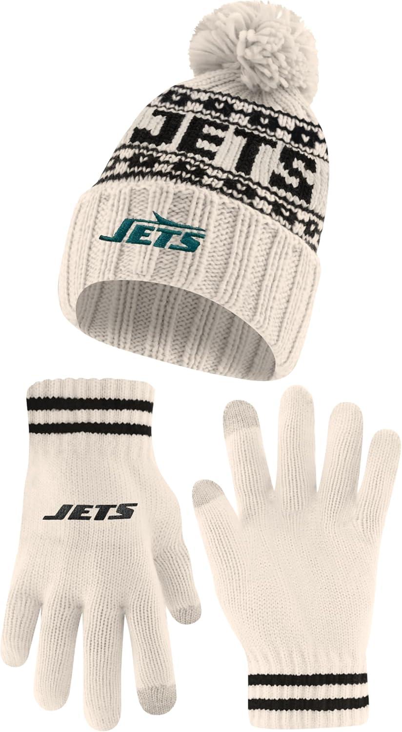 Ultra Game Youth NFL Official Super Soft Cable Knit Winter Beanie Knit Hat with Extra Warm Touch Screen Gloves(Natural)