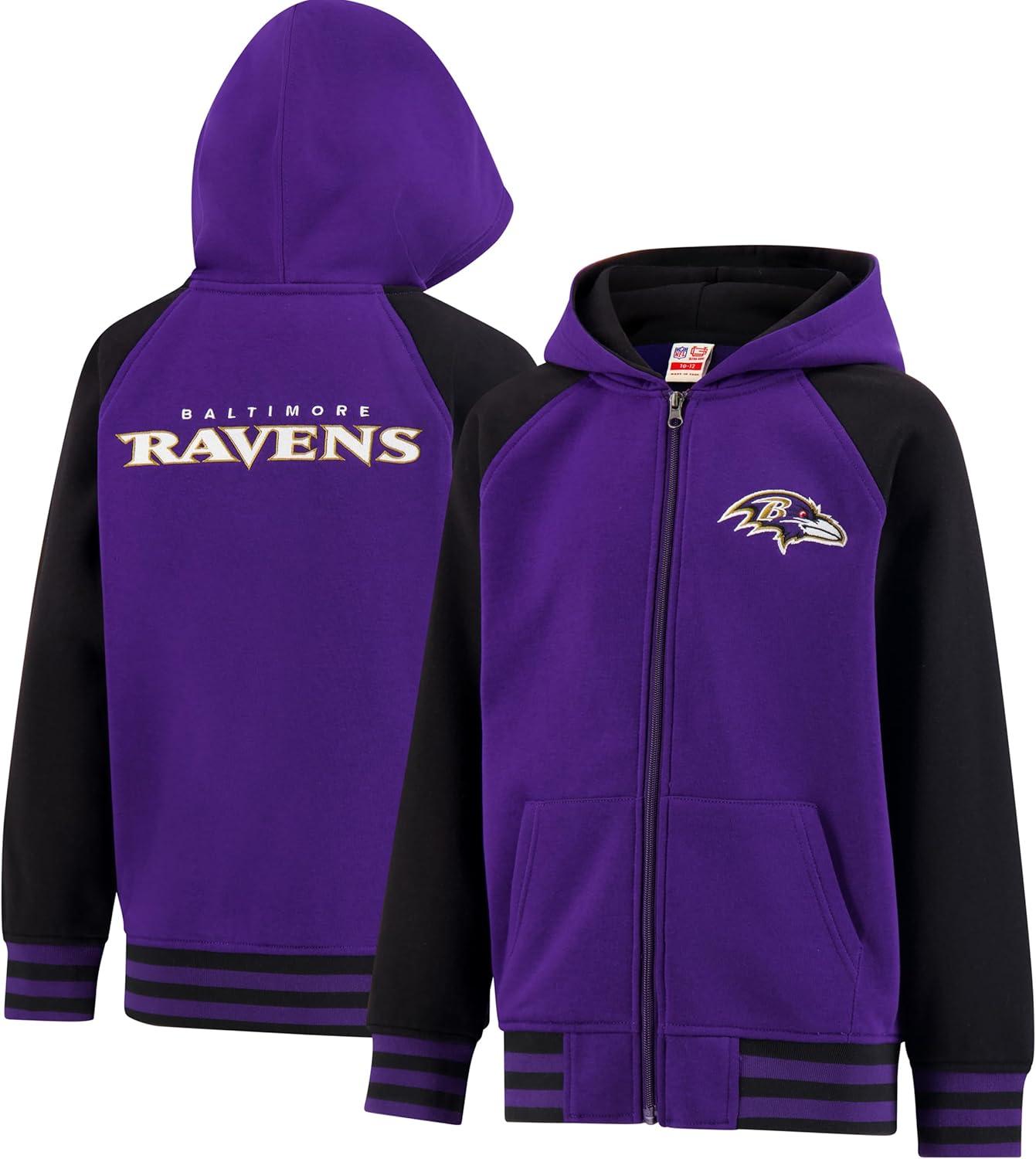 Ultra Game Youth NFL Official Super Soft Full Zip Varsity Hoodie Sweatshirt(Team Color 2024)