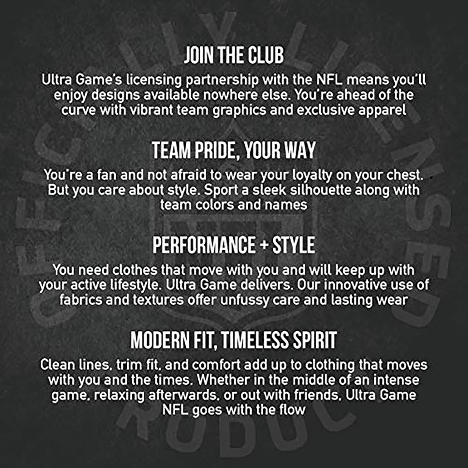 Ultra Game partners with the major sports leagues and franchises to bring you officially licensed gear at down-to-earth prices. If you like to wear your passion in public, Ultra Game's got you covered. Whether it's streetwear, loungewear, or true workout gear, Ultra Game is your number one source for highly fashionable team apparel. Why buy Ultra Game brand products? 100% Authentic – Ultra Game manufactures officially licensed apparel for the NBA and NFL. Best In Class Apparel – We focus on manufacturing the highest quality apparel at affordable prices. Highly Fashionable – We are constantly updating our styles with the latest fashion trends. Satisfaction – We will work with you to resolve all issues until you are completely satisfied.