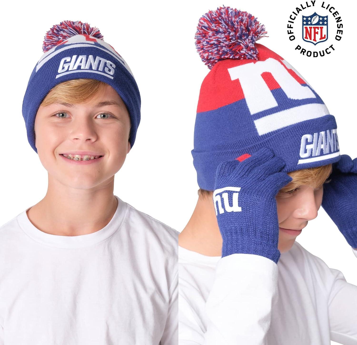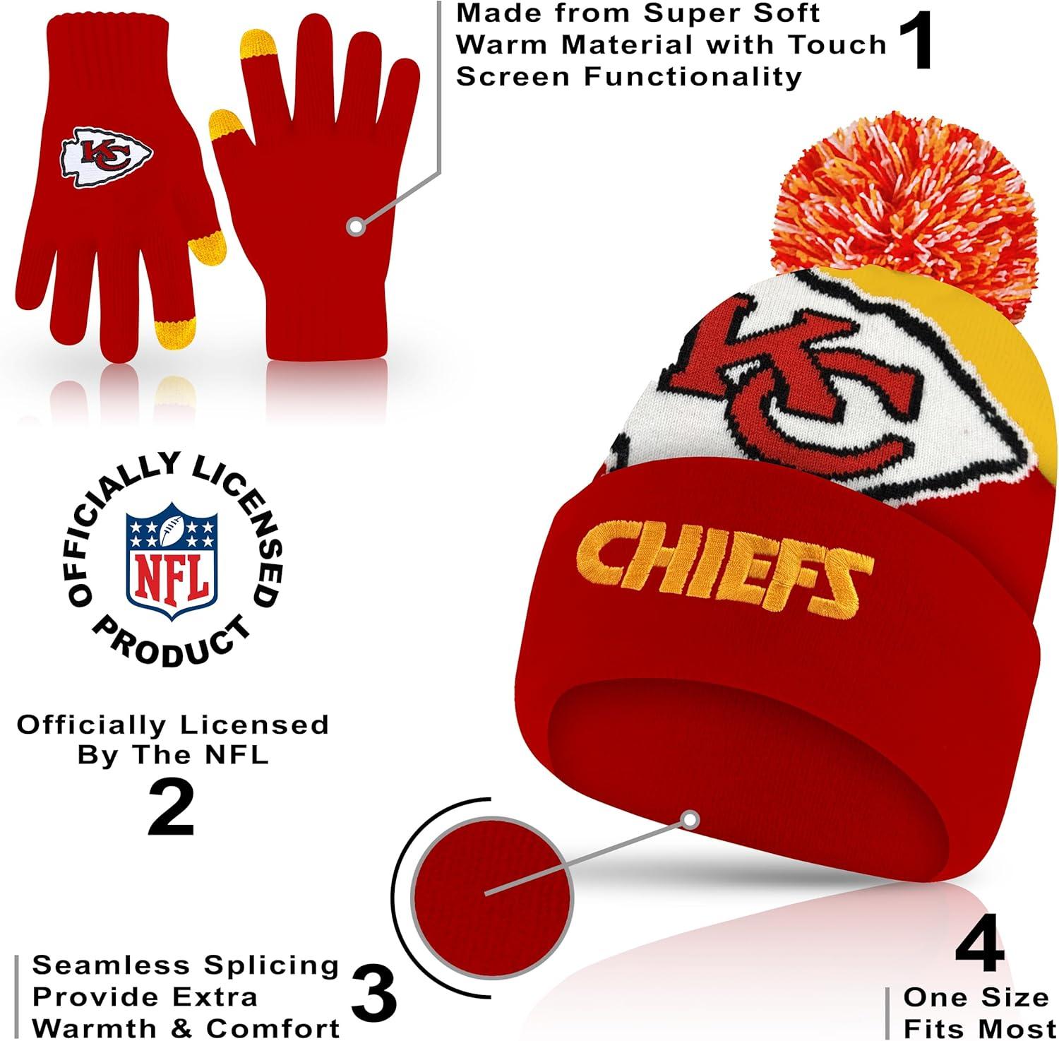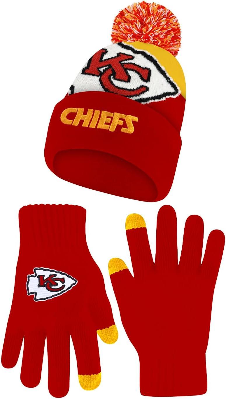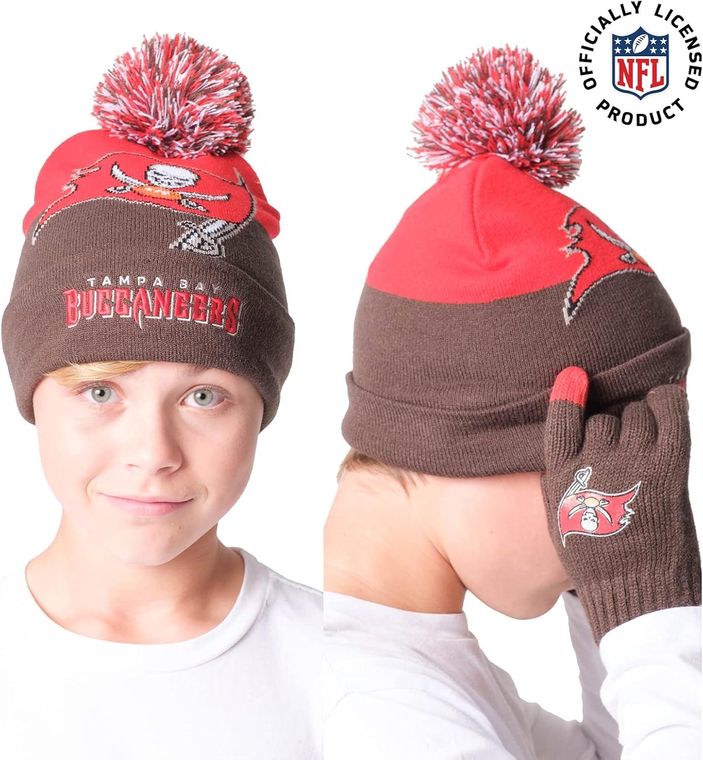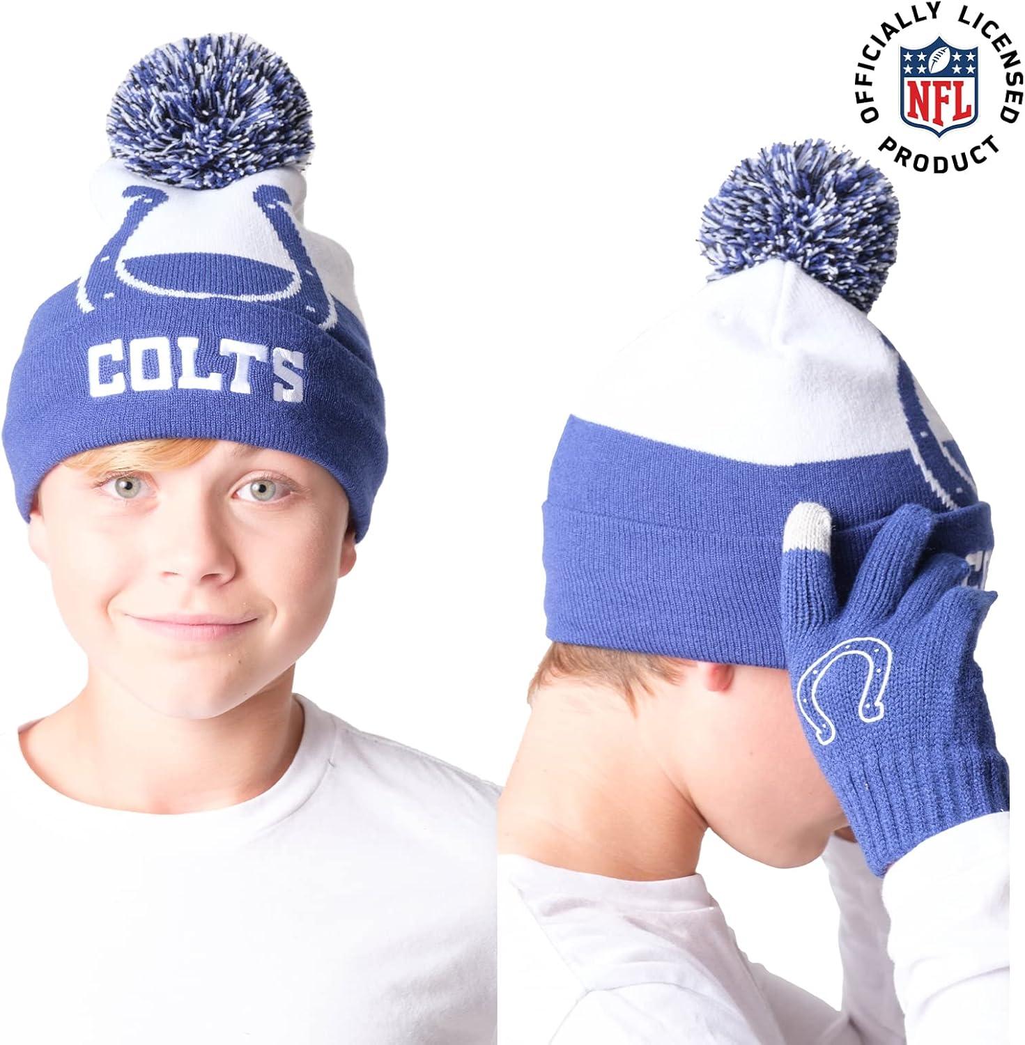 Ultra Game Youth NFL Official Super Soft Winter Beanie Knit Hat With Extra Warm Touch Screen Gloves(Team Color 2)
