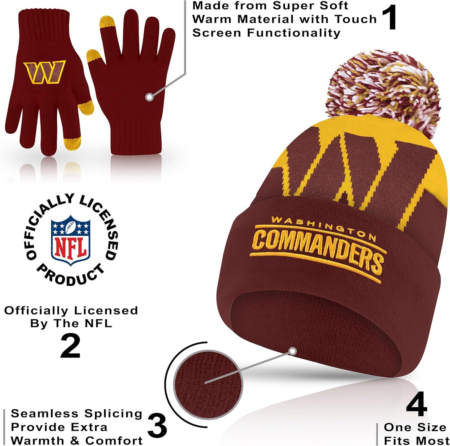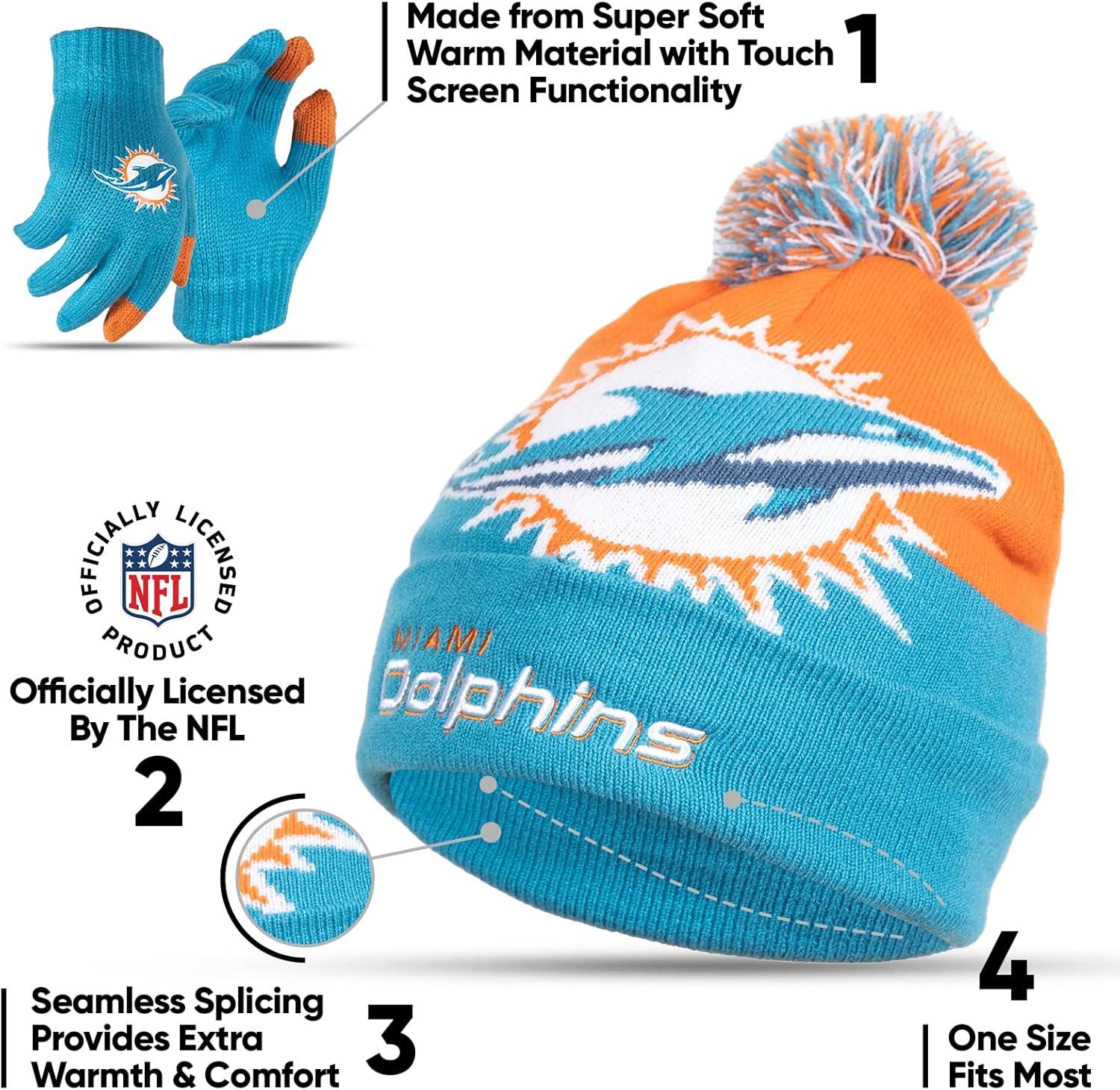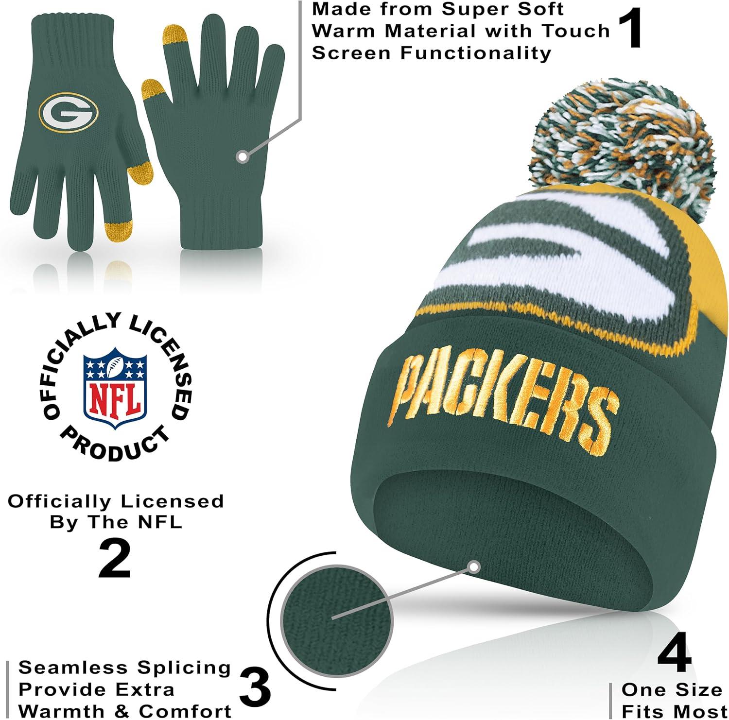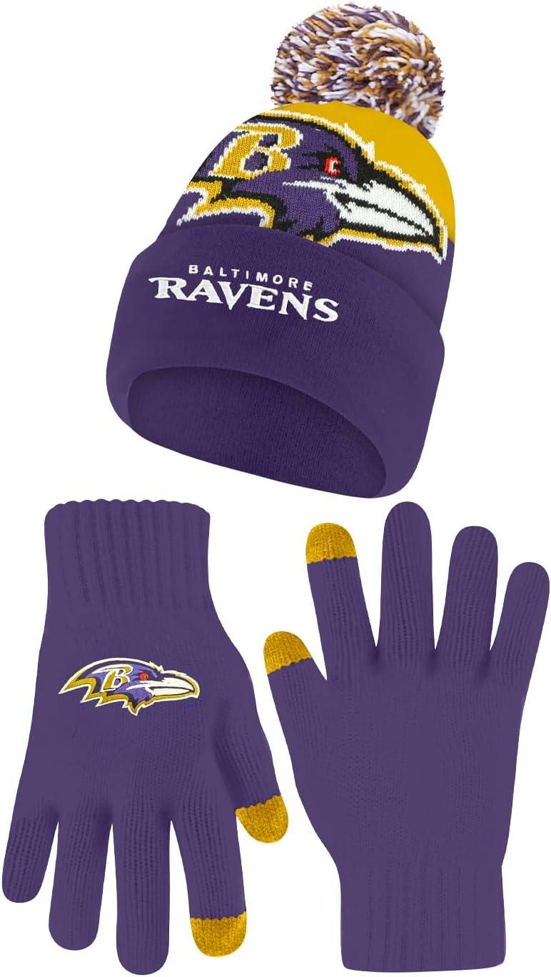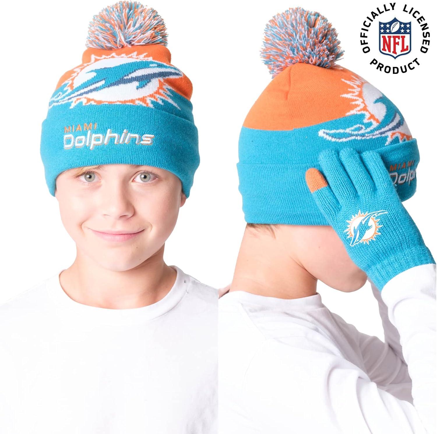 Ultra Game Youth NFL Official Super Soft Winter Beanie Knit Hat With Extra Warm Touch Screen Gloves(Team Color 2)