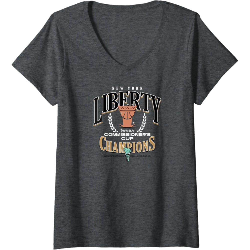 Womens WNBA New York Liberty Commissioner’s Cup 2023 Crown Affair V-Neck T-Shirt(Dark Heather Grey)
